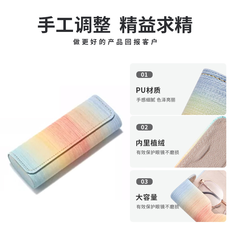 厂家定制PU小清新眼镜盒高级感便携收纳盒彩虹新款太阳镜墨镜盒子