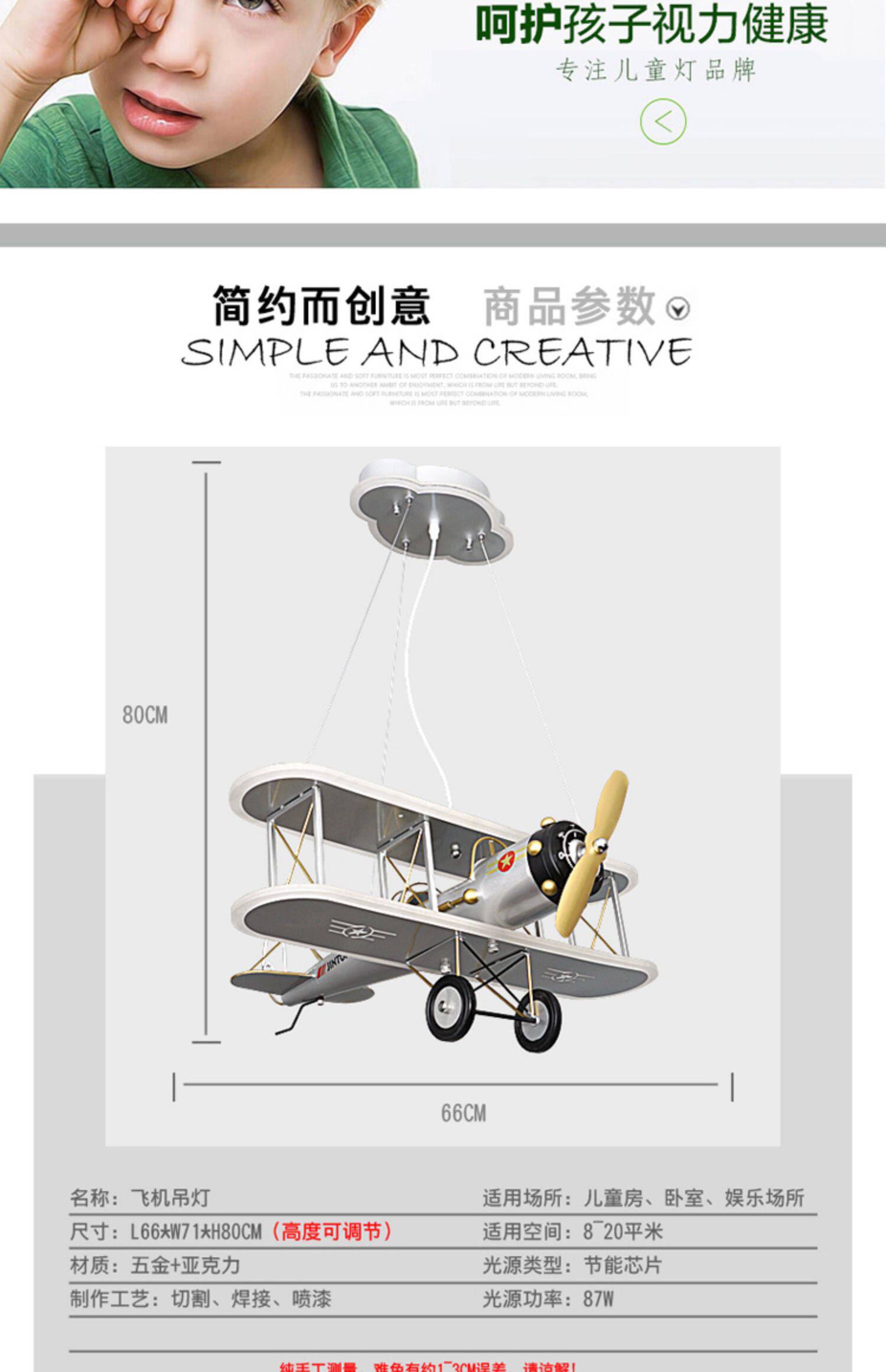 外贸专供铁艺飞机灯男孩儿童灯房间灯个性简约卡通造型吊灯灯具
