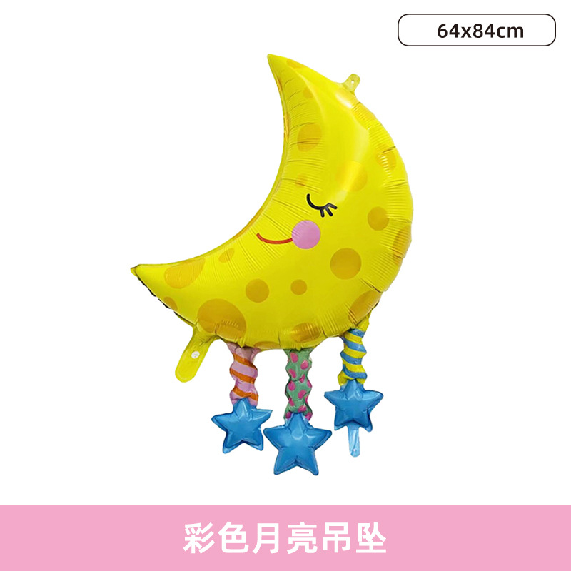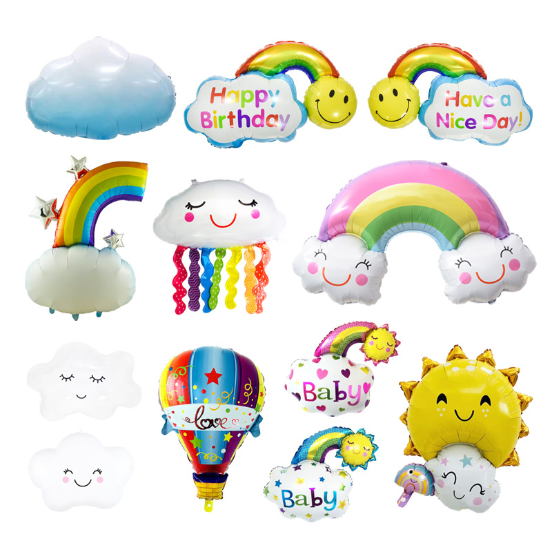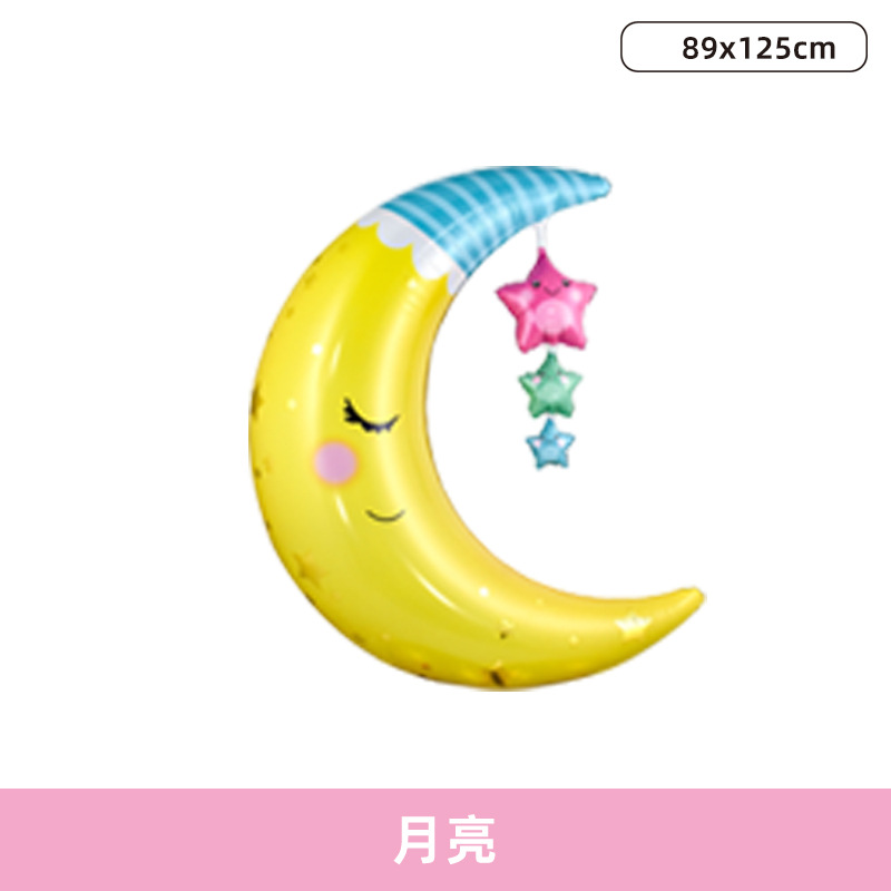 笑脸彩虹云朵月亮流星铝膜气球宝宝周岁儿童生日卡通造型气球批发