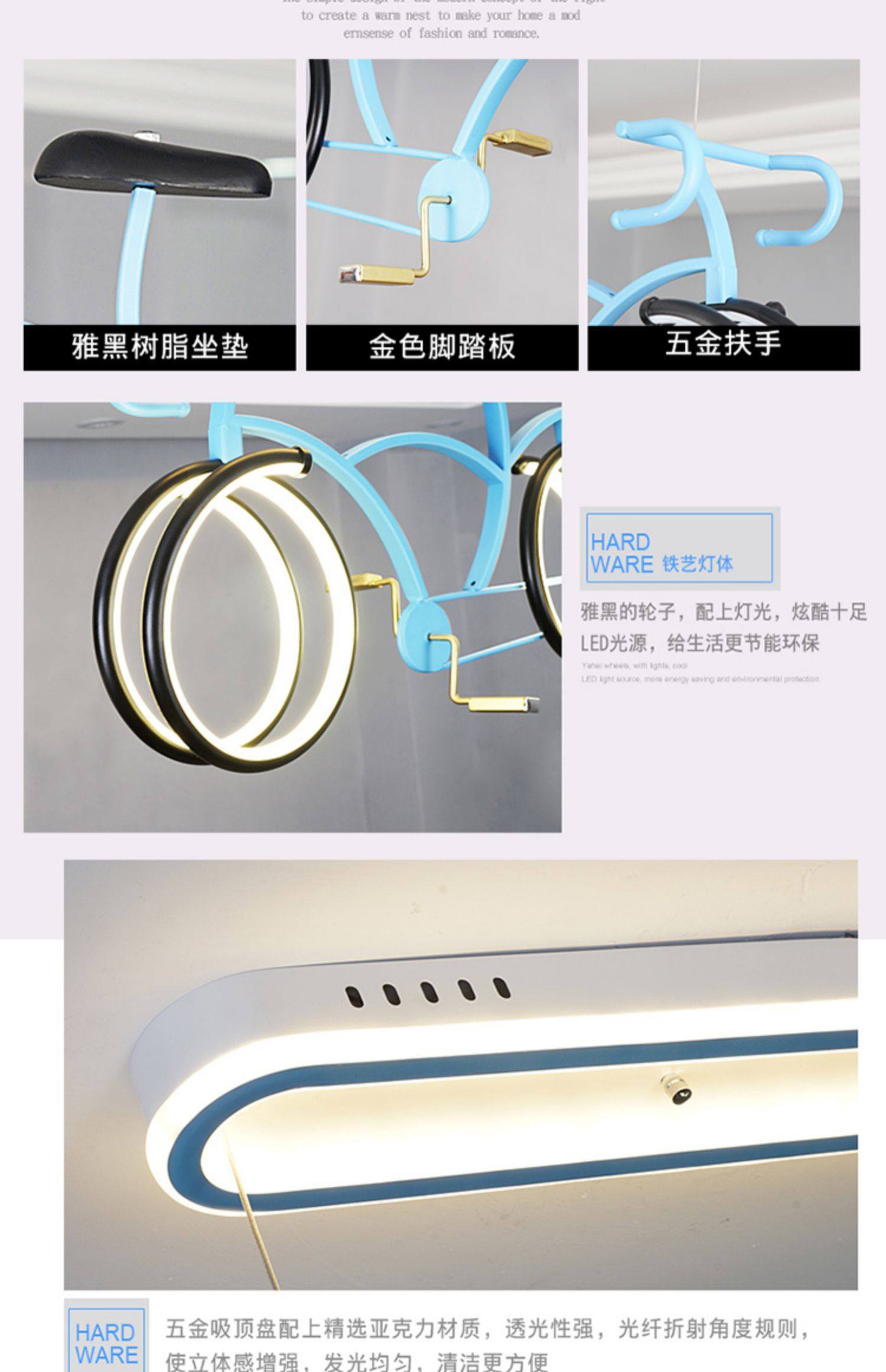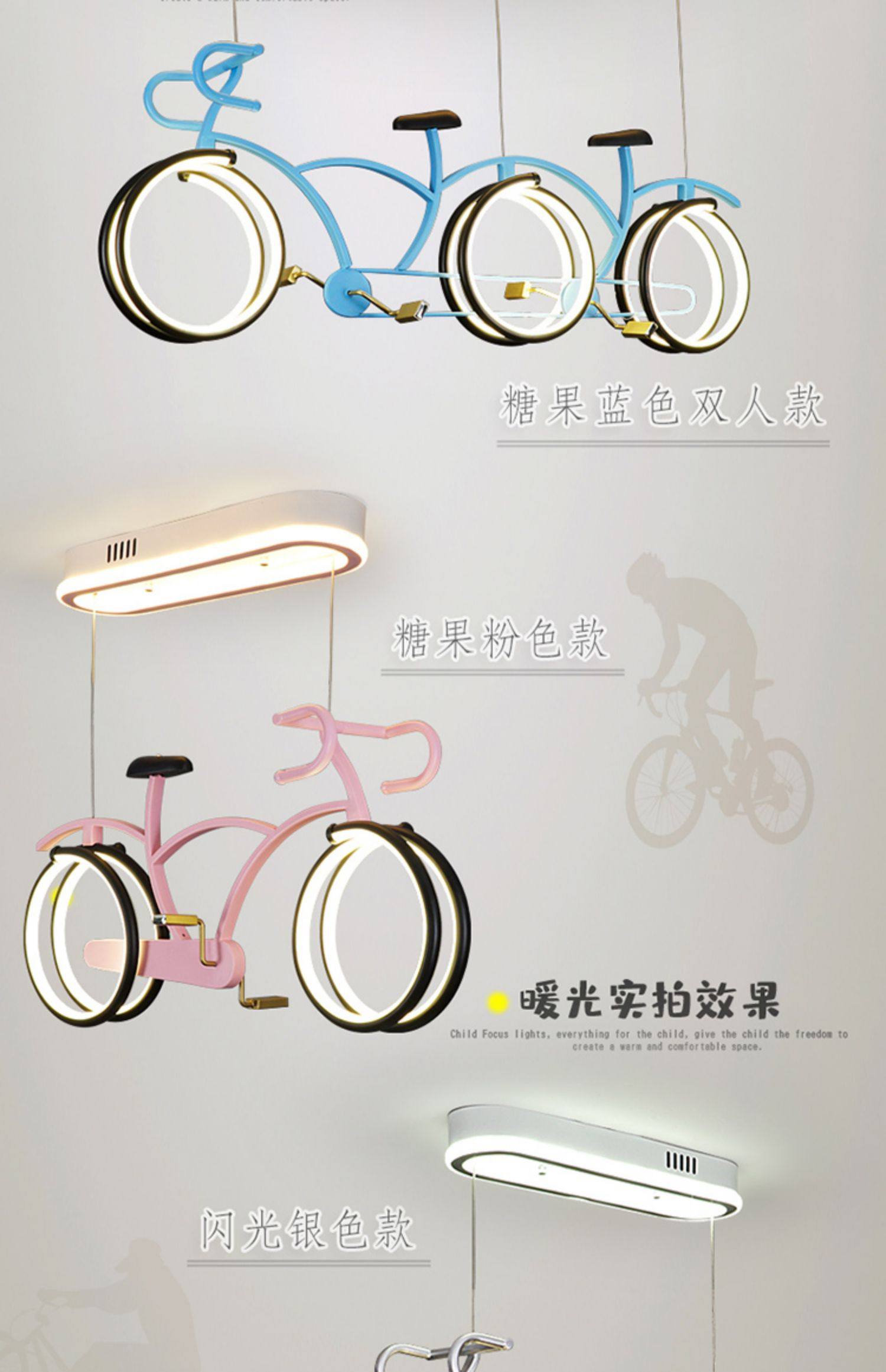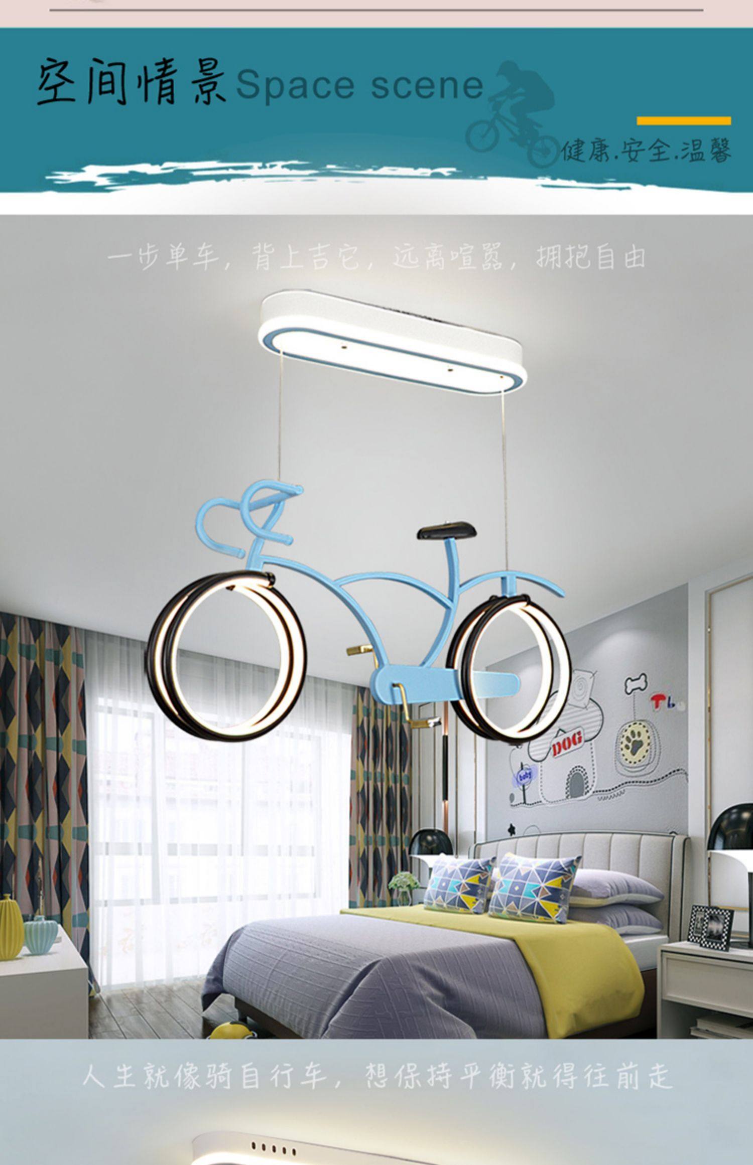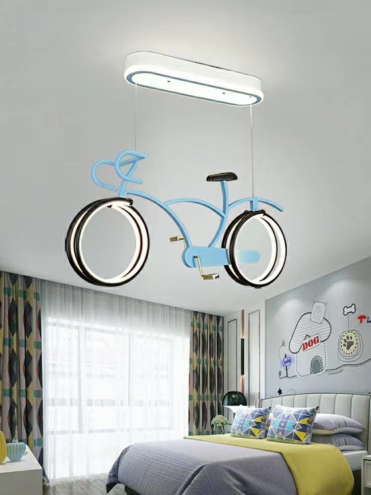 外贸专供儿童房自行车吊灯 护眼简约男女孩LED个性卡通单车灯