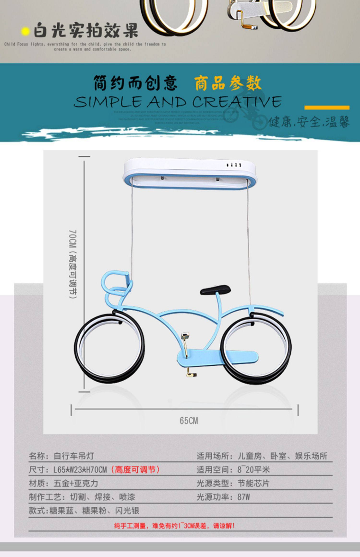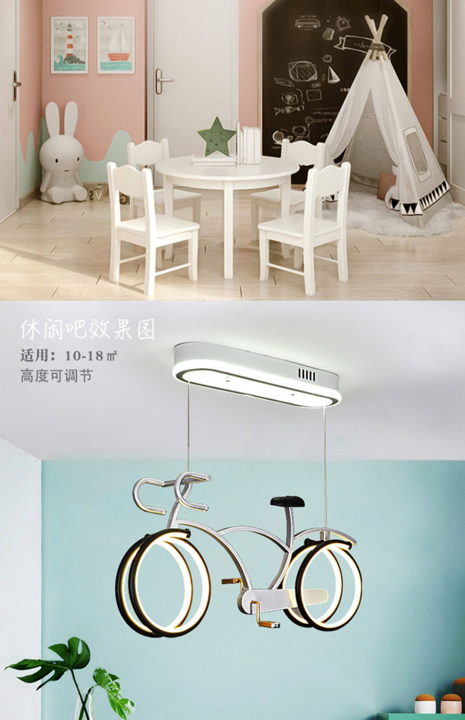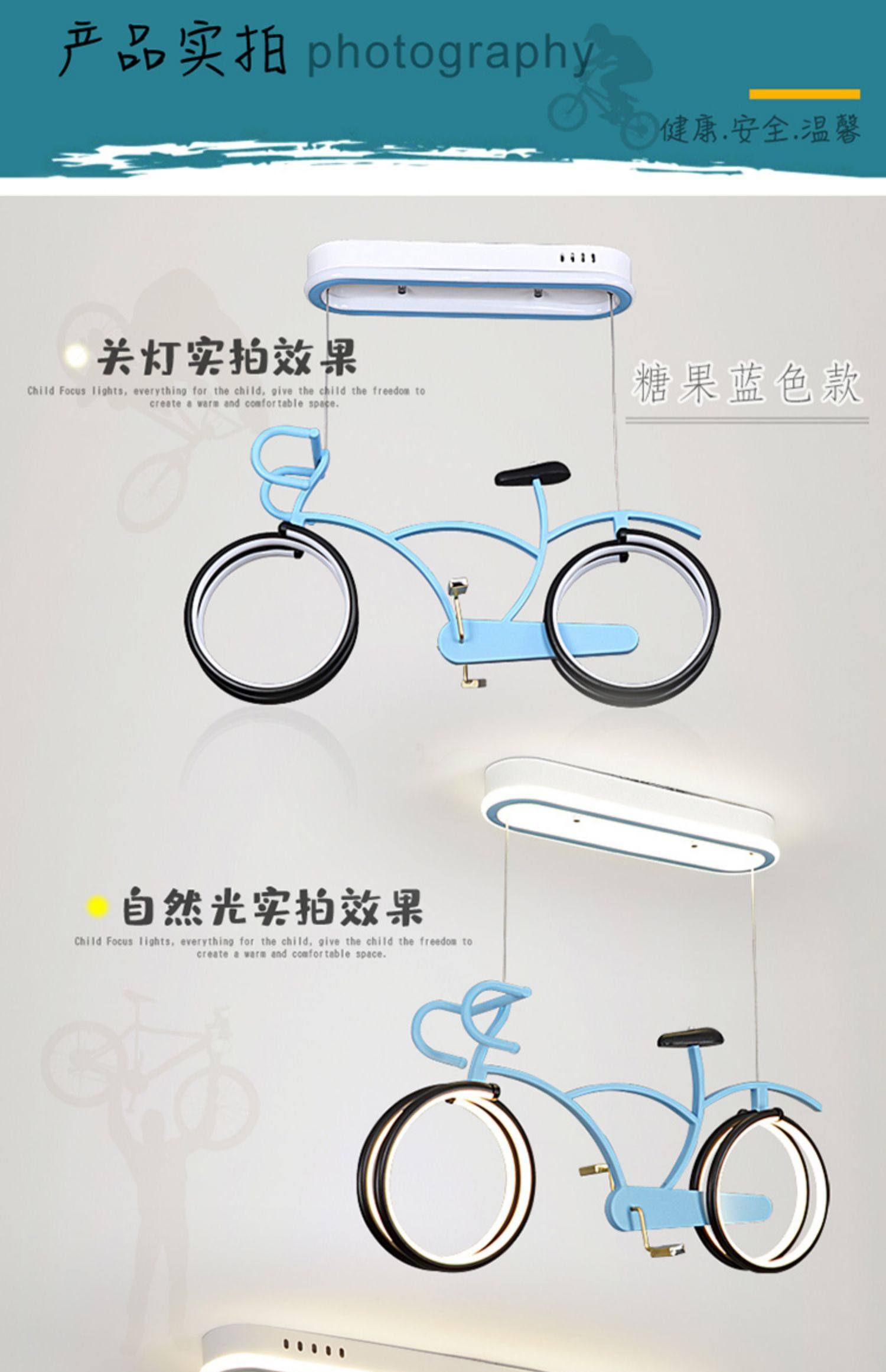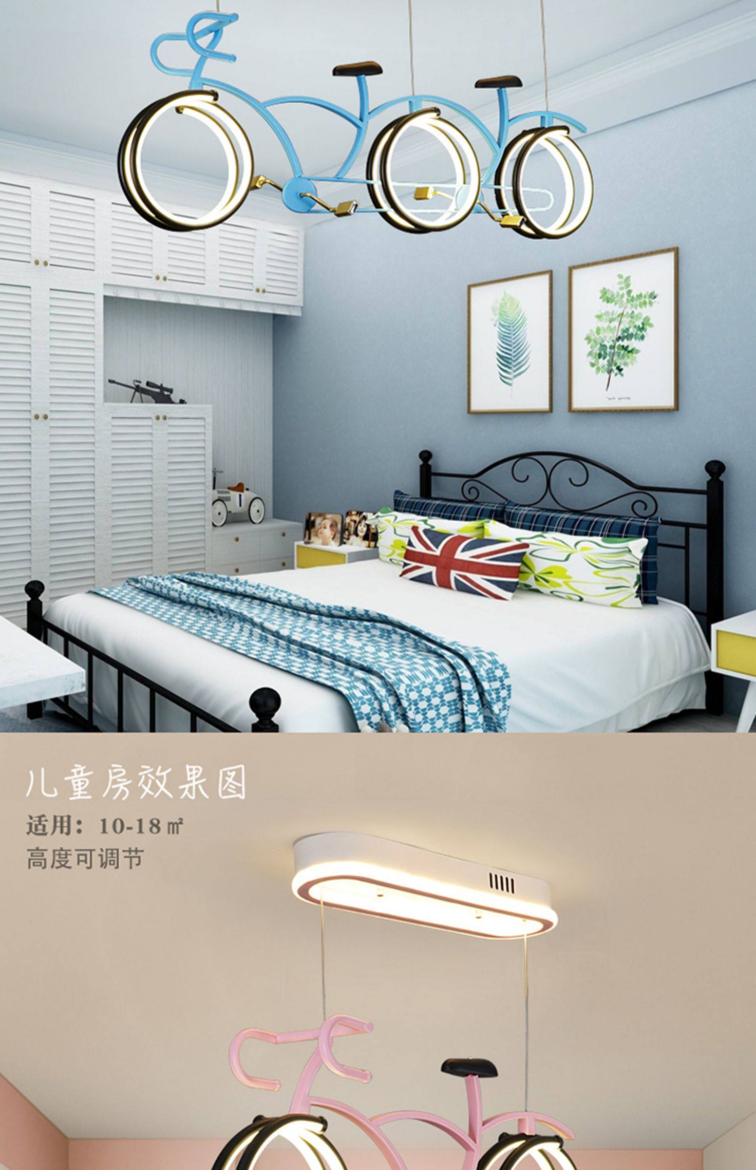 外贸专供儿童房自行车吊灯 护眼简约男女孩LED个性卡通单车灯