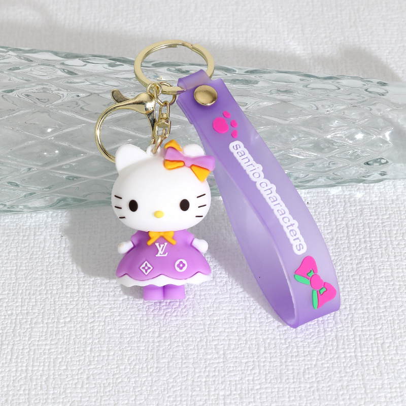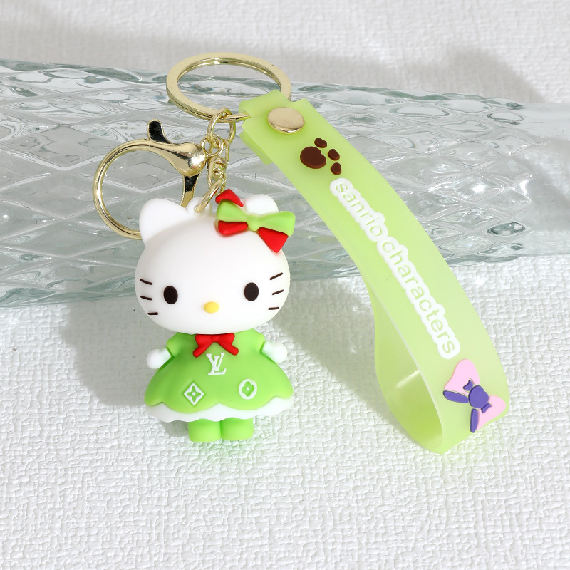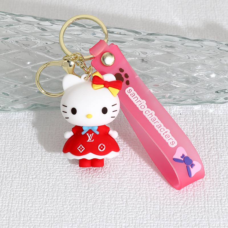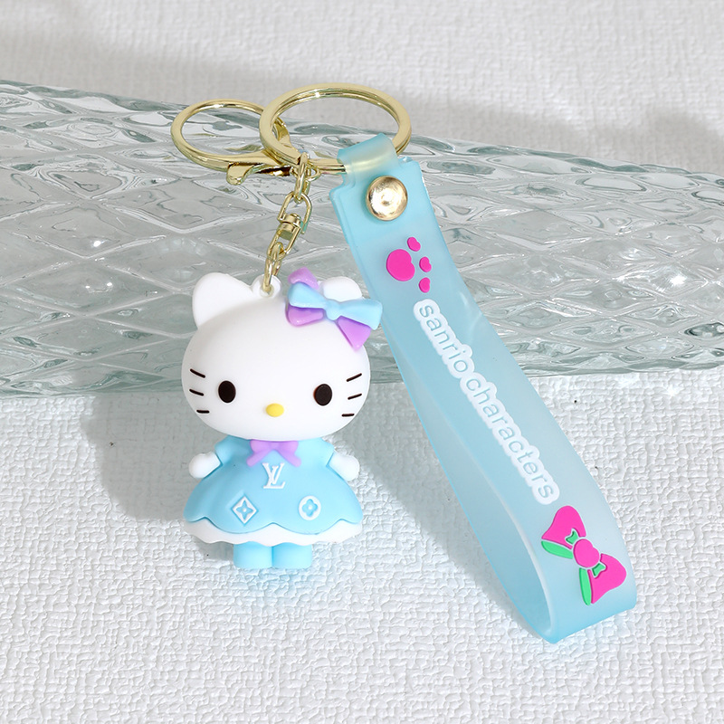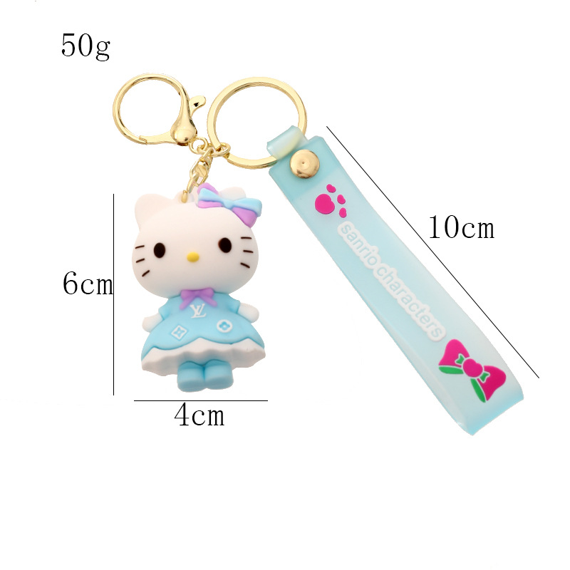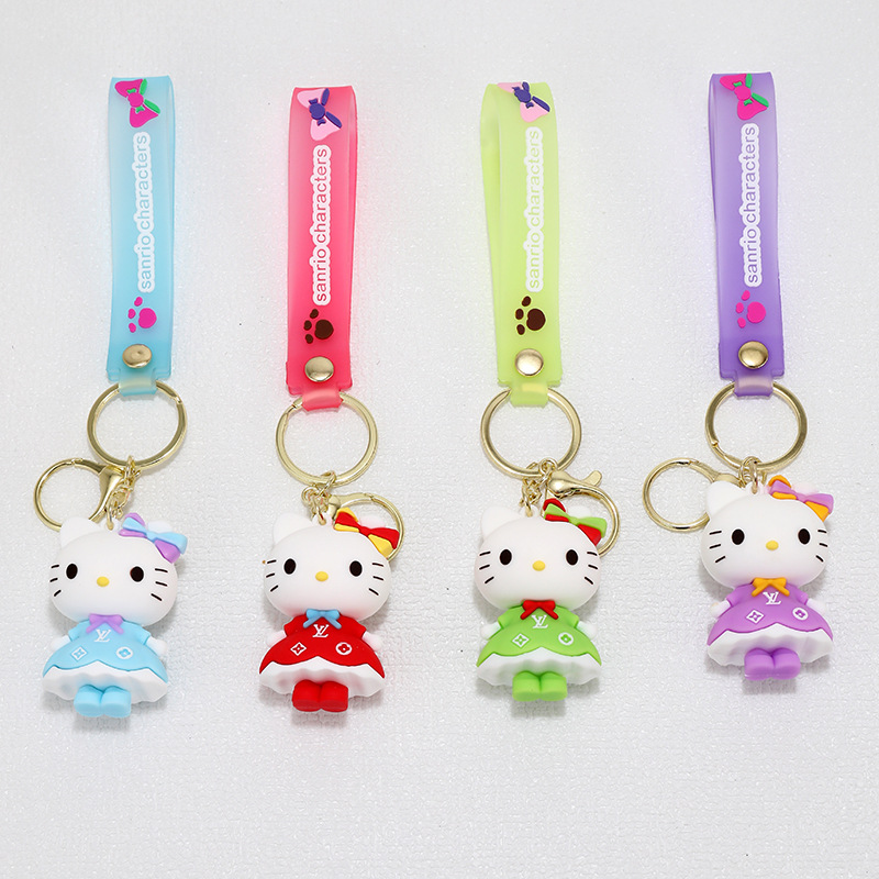 新款长裙KT猫硅胶公仔钥匙扣挂件情侣包包汽车hellokitty挂饰礼物