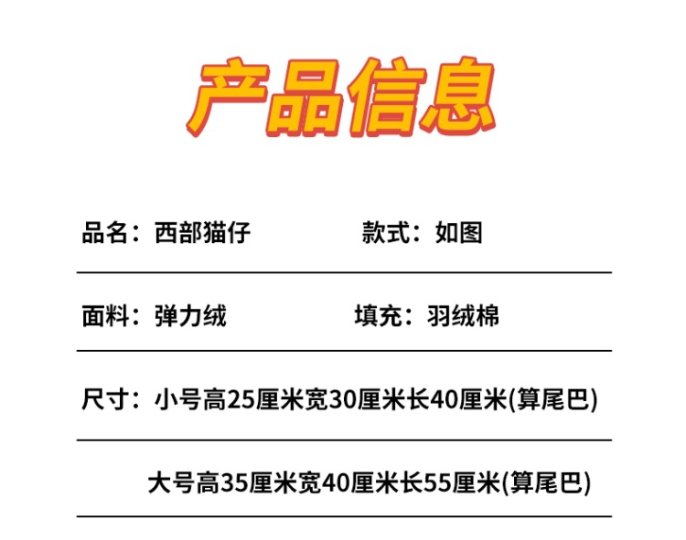 跨境新品批发西部猫仔毛绒玩具送女生礼物大号猫咪抱枕卡通玩偶