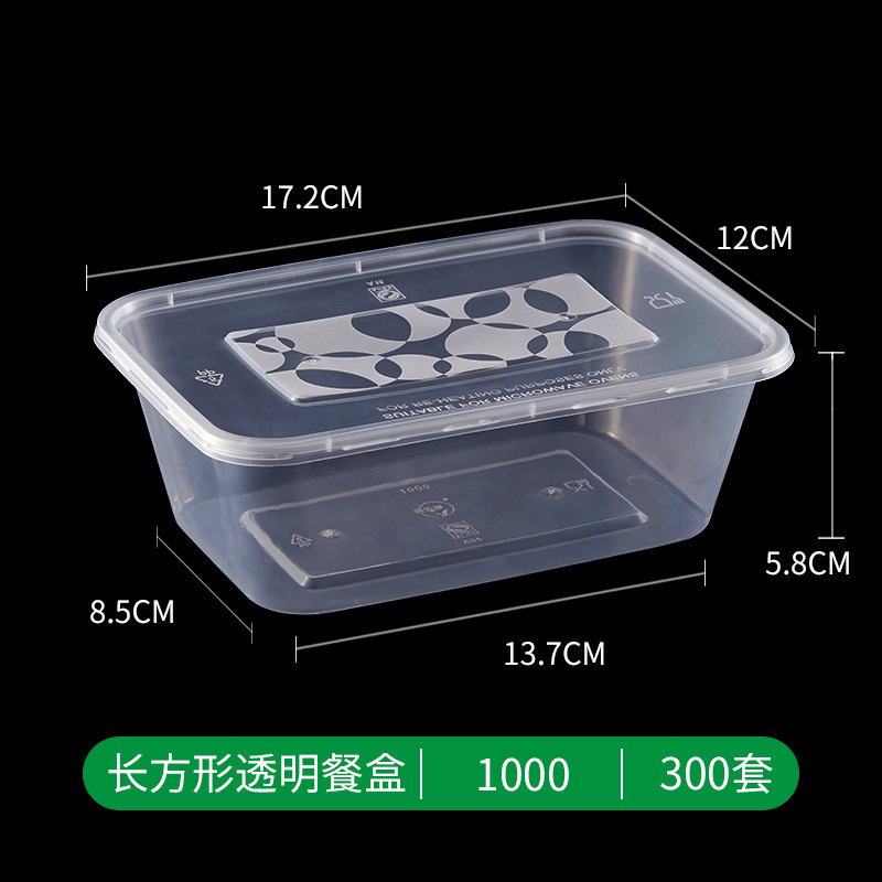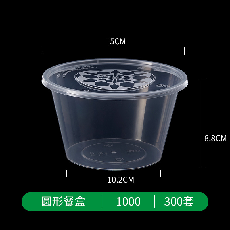 一次性碗打包盒塑料快餐盒1000ml圆形方形透明外卖盒带盖加厚批发