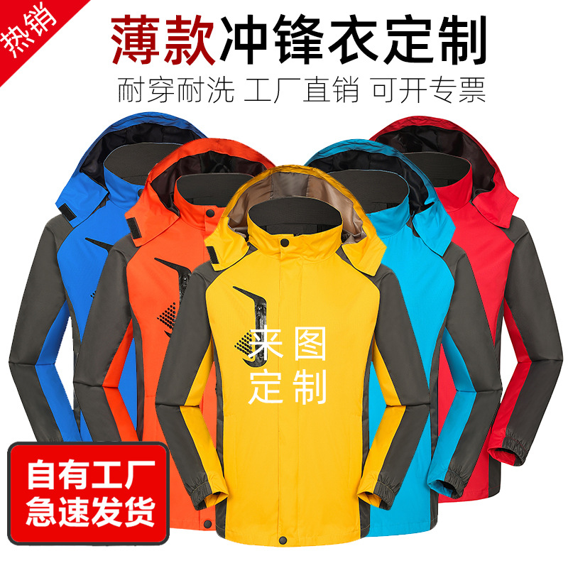 单层冲锋衣定制印logo户外防风登山服薄款外卖工装冲锋衣外套定做