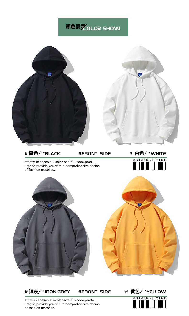 2023秋季新款连帽卫衣男士宽松连帽衫纯色运动休闲上衣外套落肩款