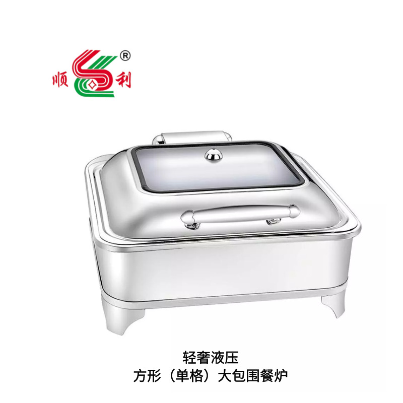 不锈钢液压自助保温炉商用可视翻盖布菲炉电加热餐具酒精自助餐炉