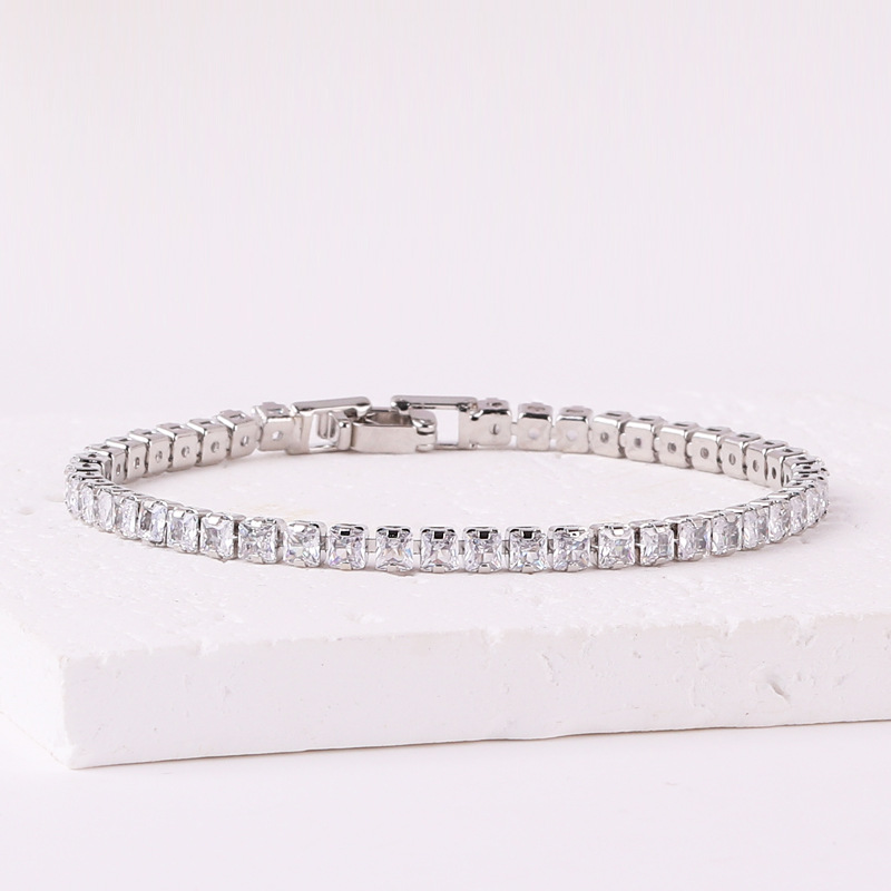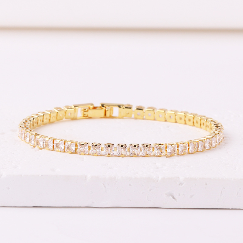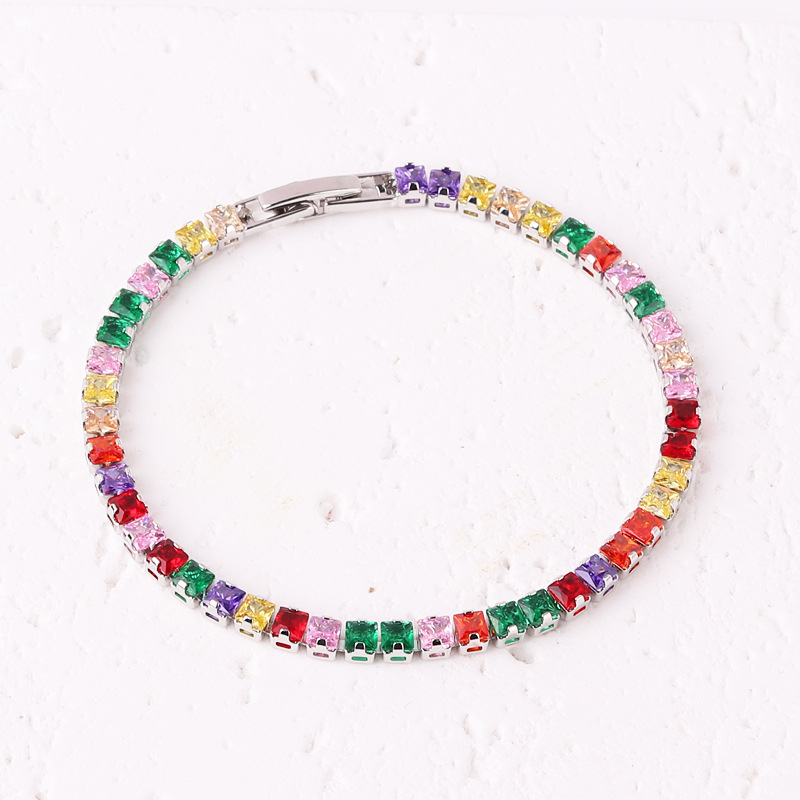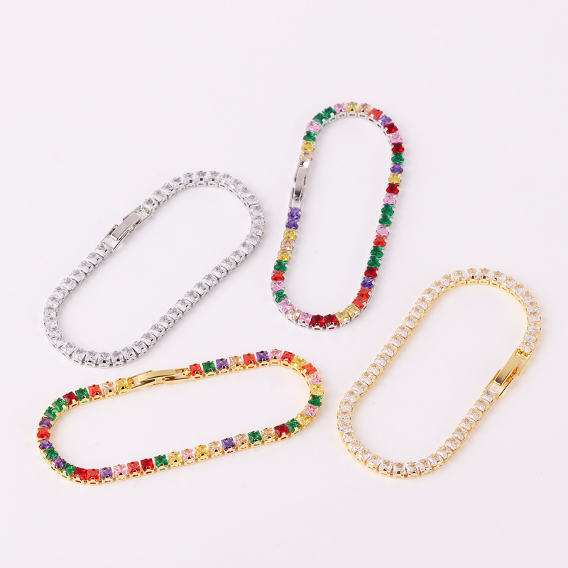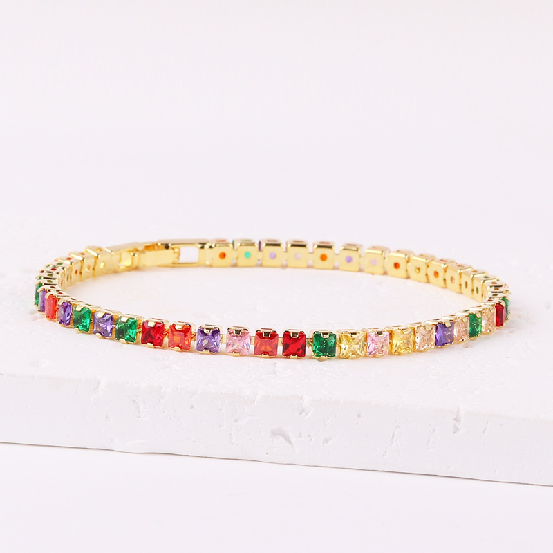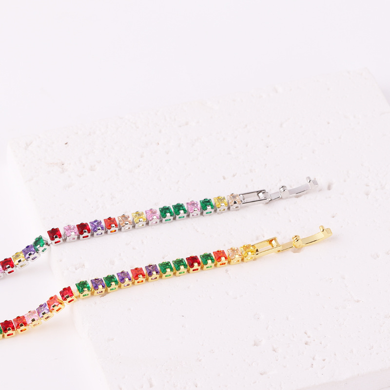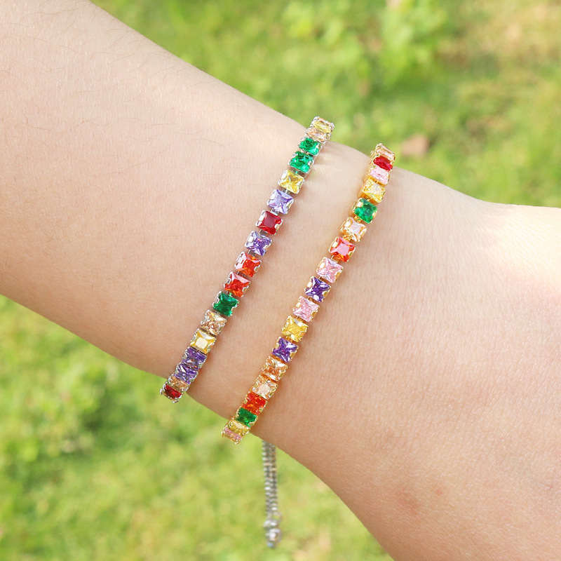 正方形亚马逊热销手饰女 时尚个性方形彩色锆石满钻手链镀18K金