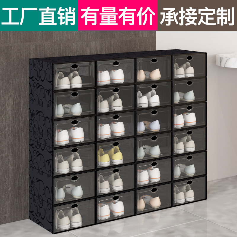 马卡龙透明鞋盒 抽屉式防尘收纳 自由组装家用宿舍球鞋收纳盒批发