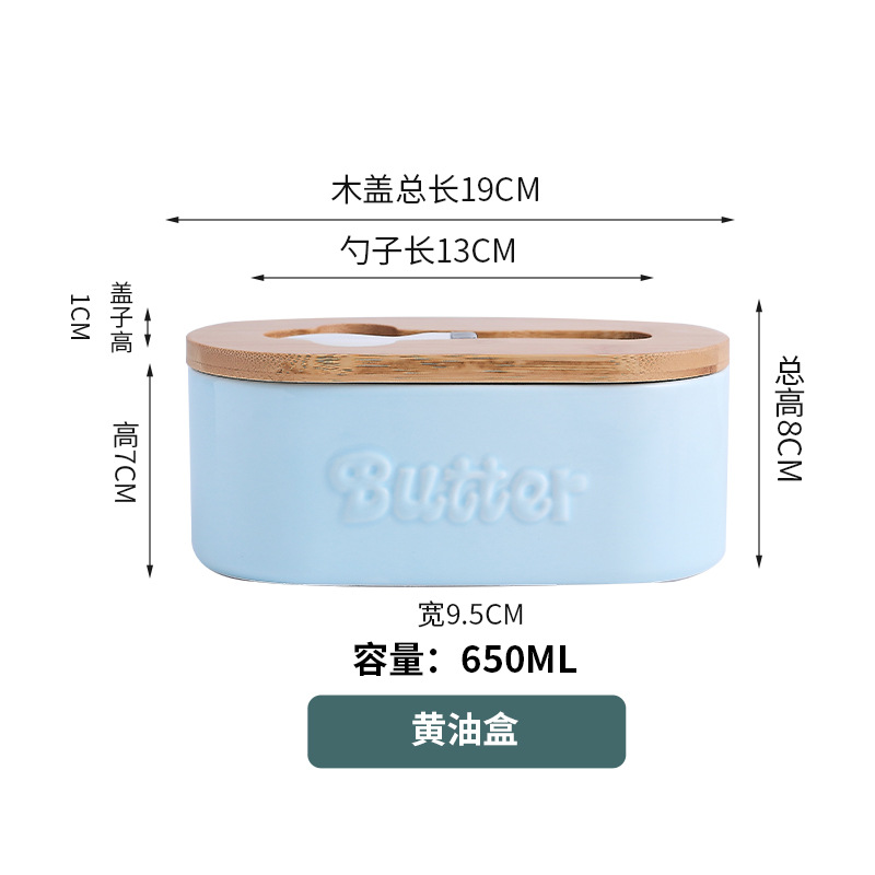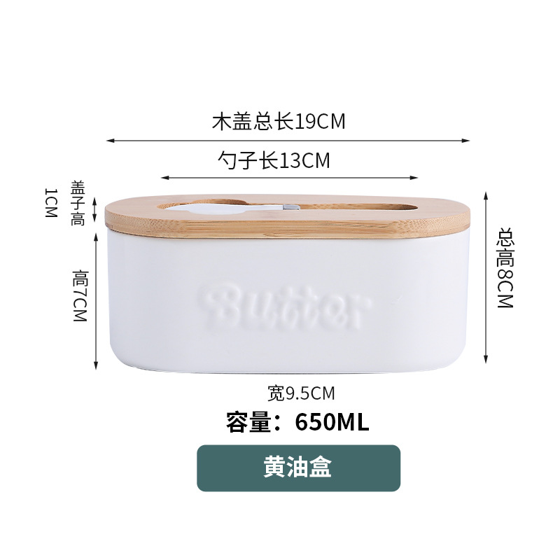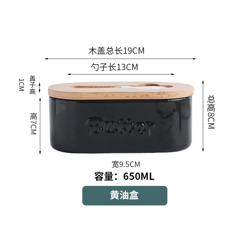现代陶瓷牛油盒保鲜盒带木盖配刀套装牛油碟家用奶酪盒陶瓷黄油盒