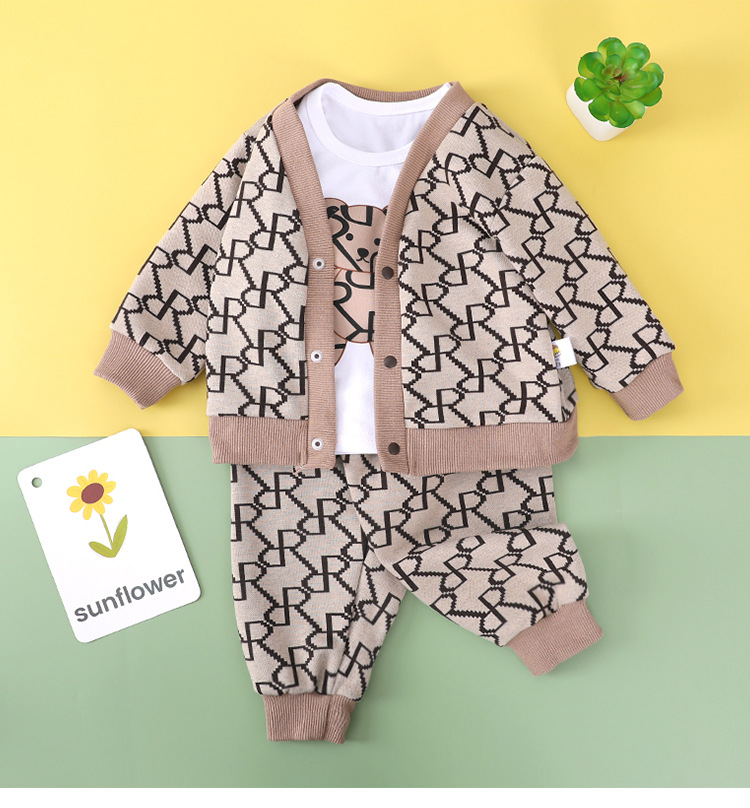 婴儿春秋装衣服男童女宝宝套装棉连体衣新生儿洋气开衫裤子三件套