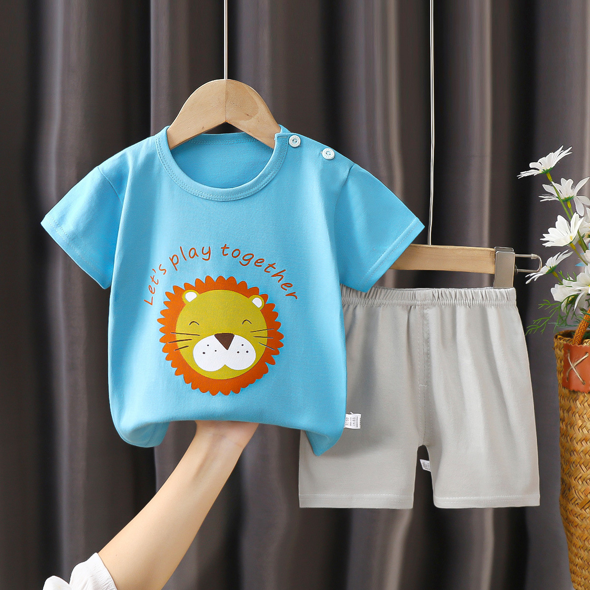 儿童短袖套装夏季纯棉男童衣服薄款女童t恤夏装服装宝宝童装批发
