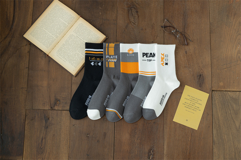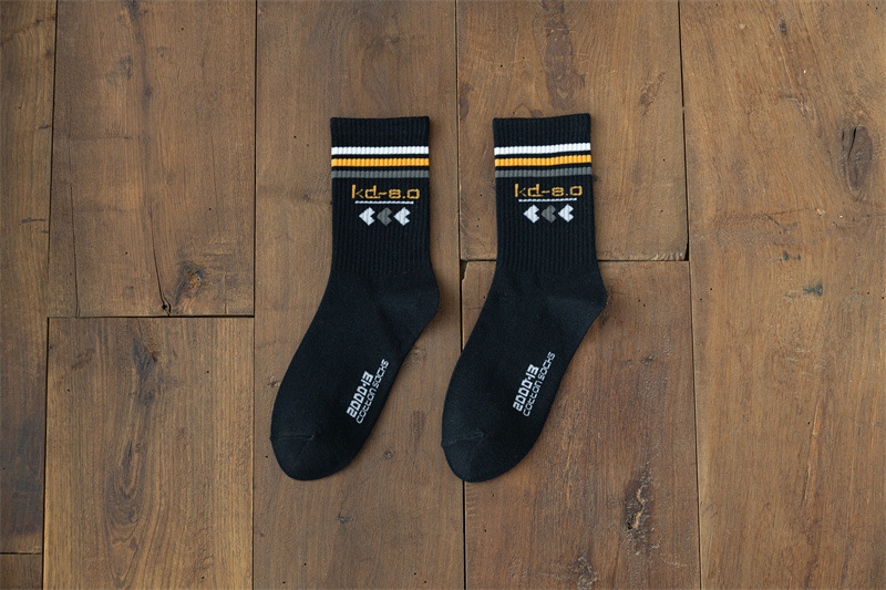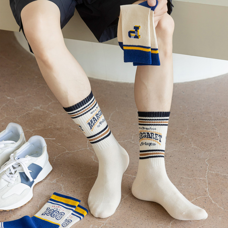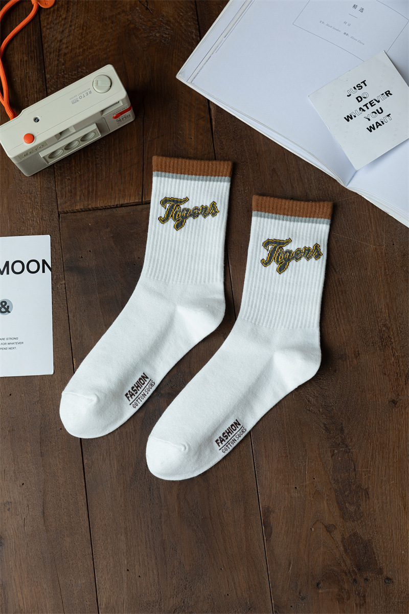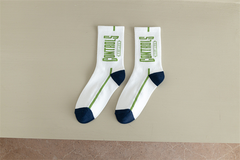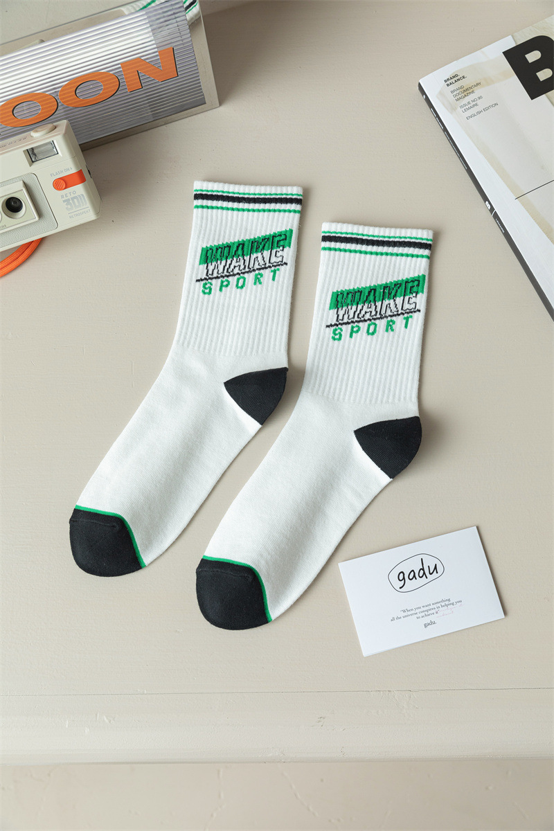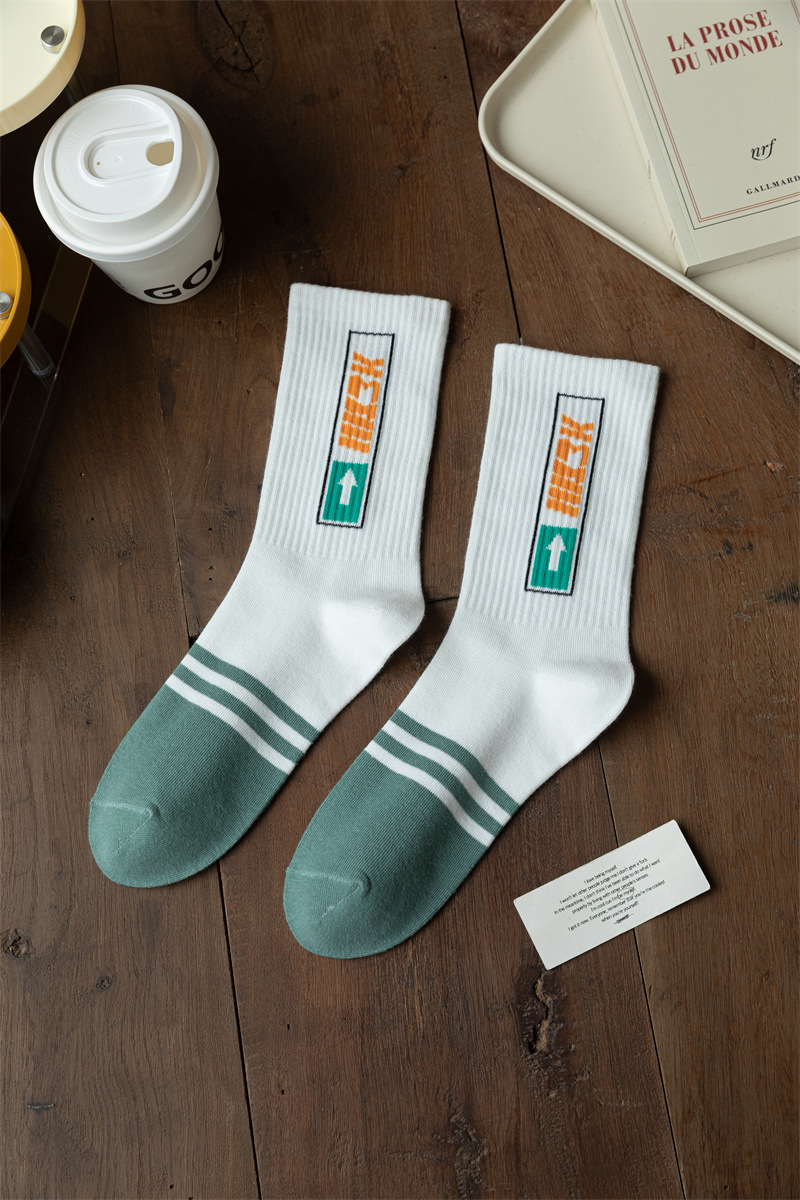 袜子男中筒秋冬运动袜子街头潮流学生篮球袜字母条纹吸汗白色棉袜