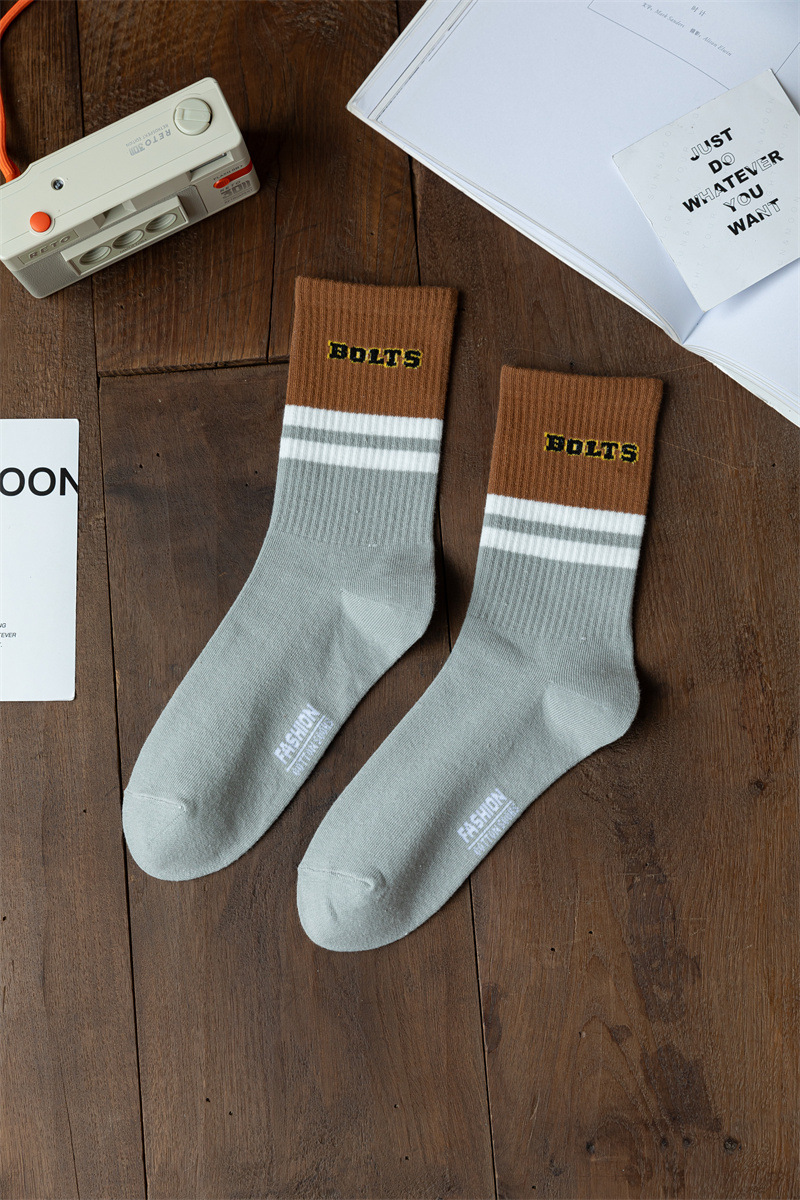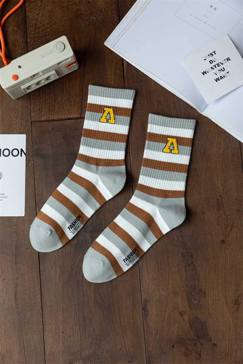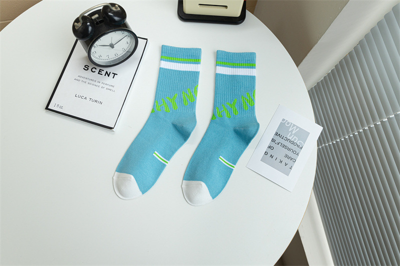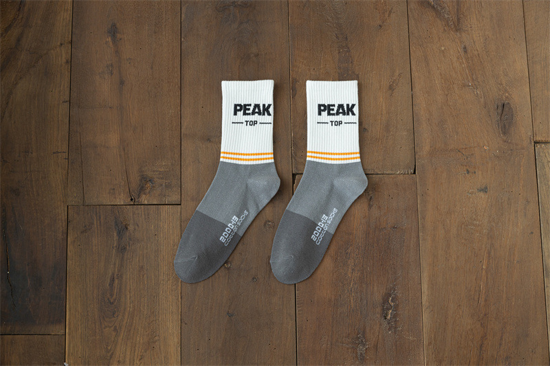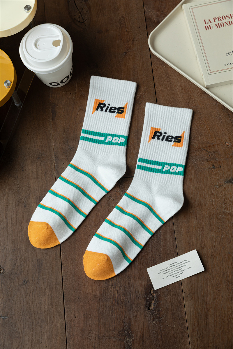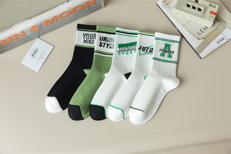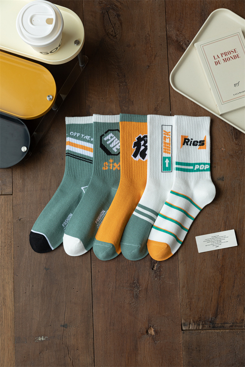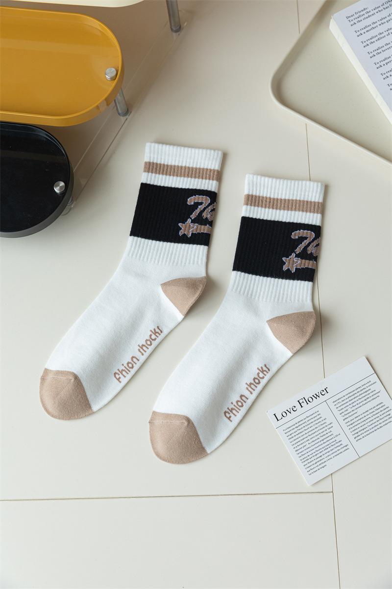 袜子男中筒秋冬运动袜子街头潮流学生篮球袜字母条纹吸汗白色棉袜