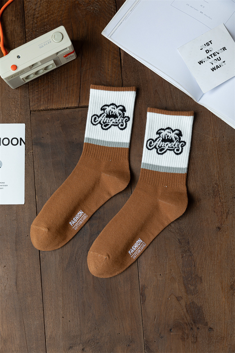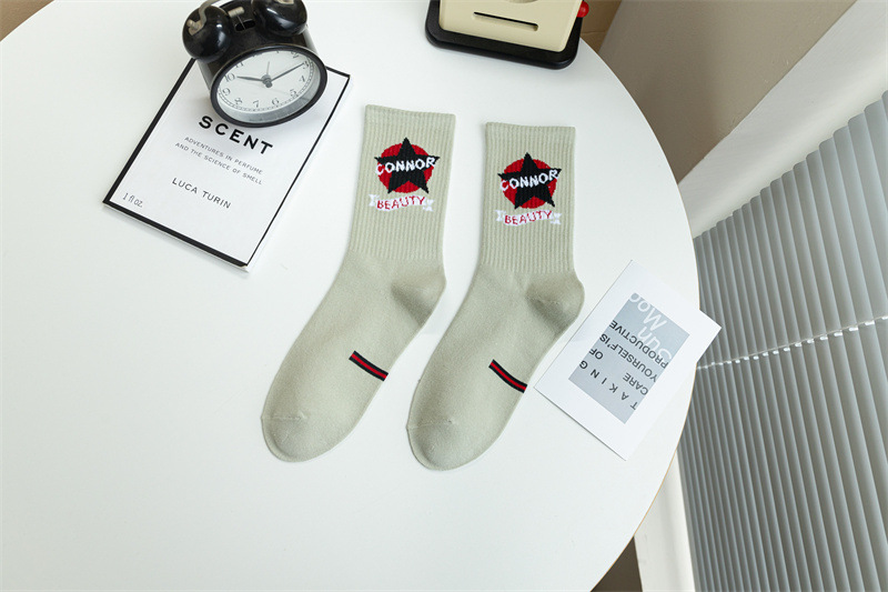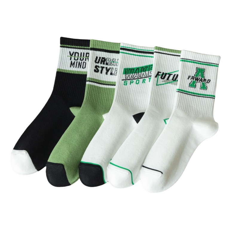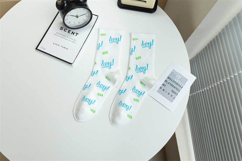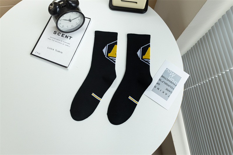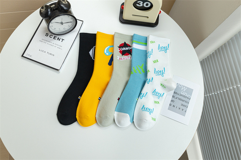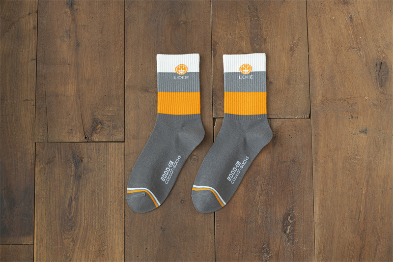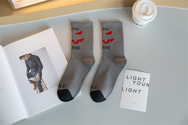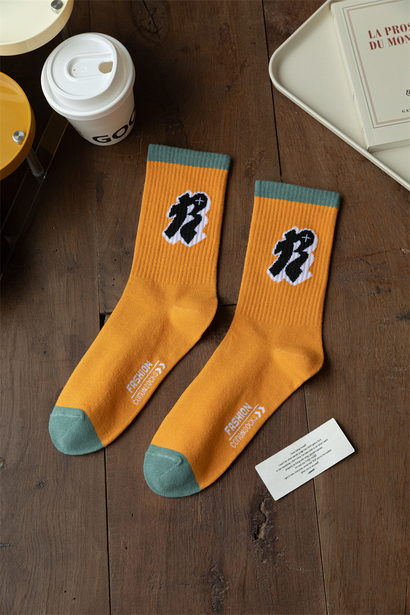 袜子男中筒秋冬运动袜子街头潮流学生篮球袜字母条纹吸汗白色棉袜