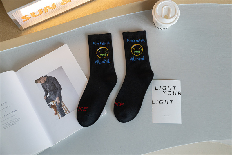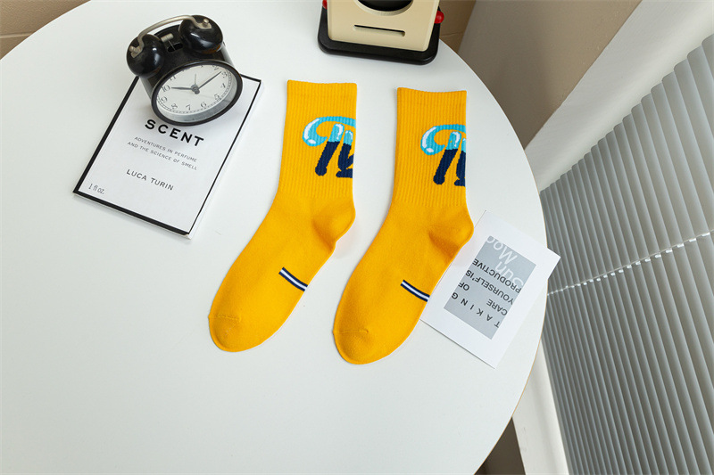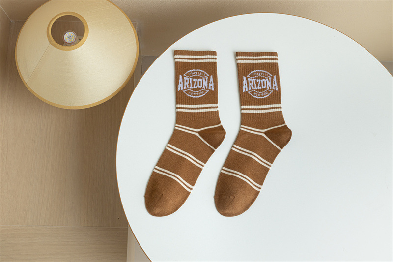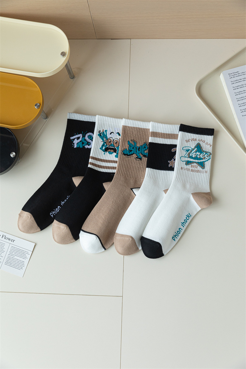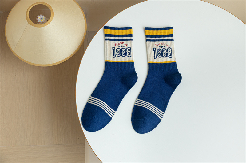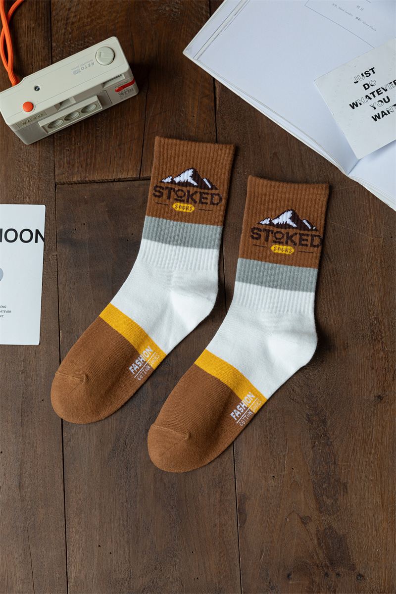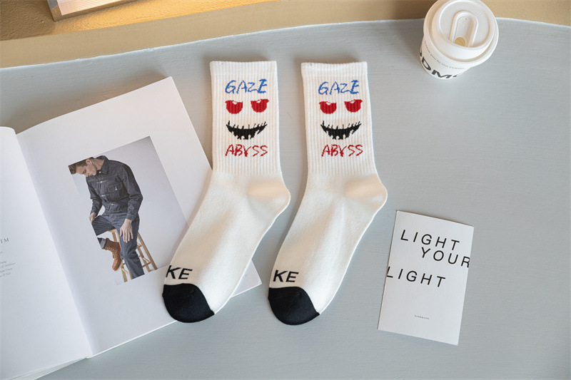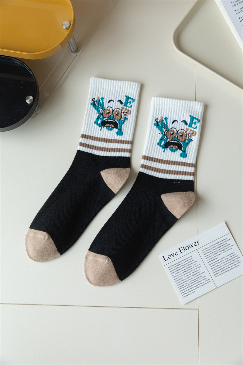 袜子男中筒秋冬运动袜子街头潮流学生篮球袜字母条纹吸汗白色棉袜