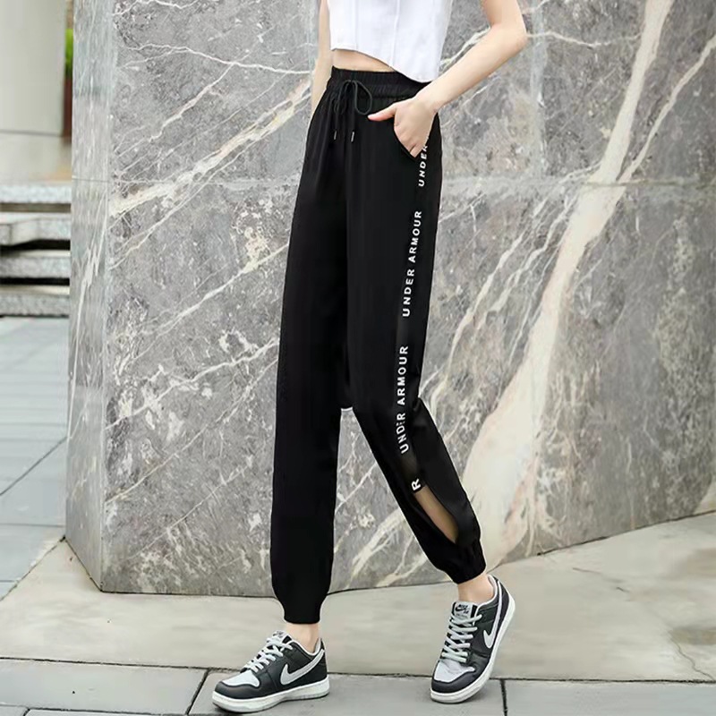 大码冰丝运动裤女夏季薄款束脚镂空休闲裤宽松九分灯笼哈伦速干裤
