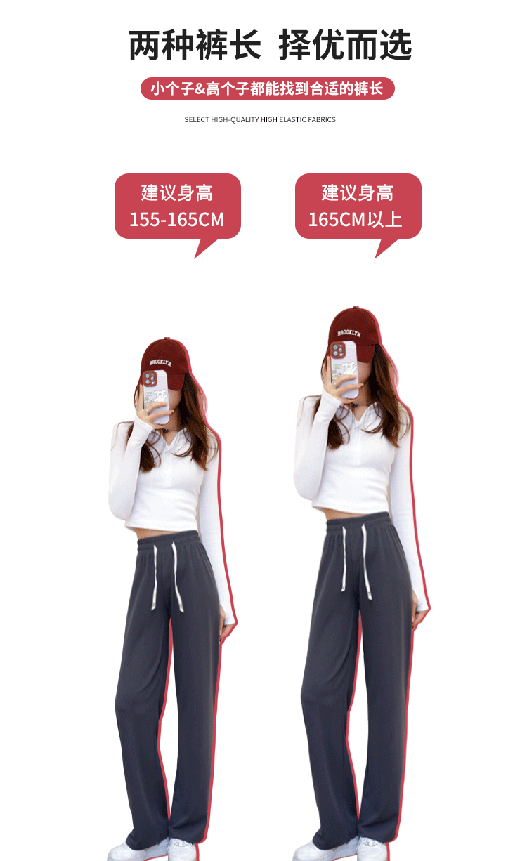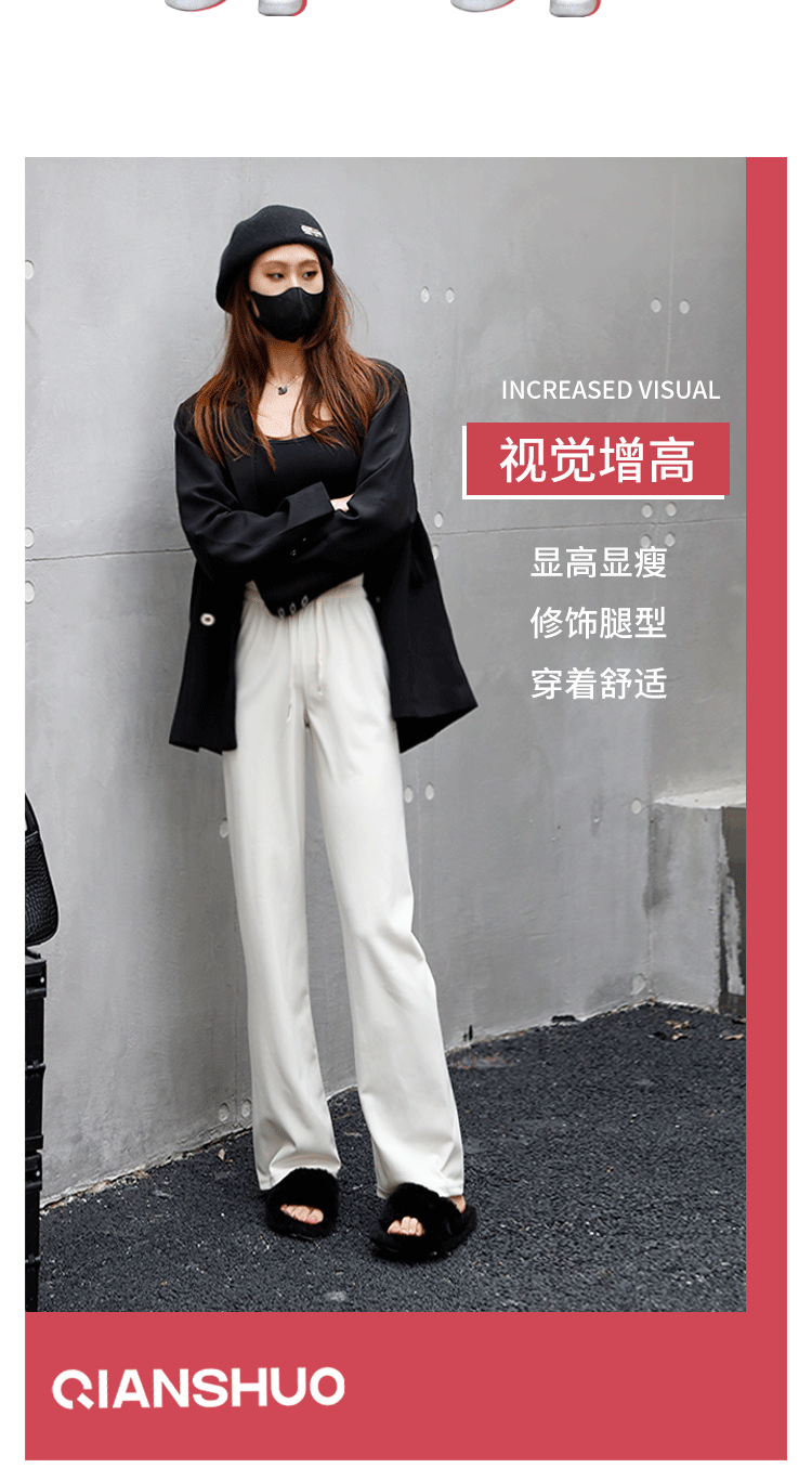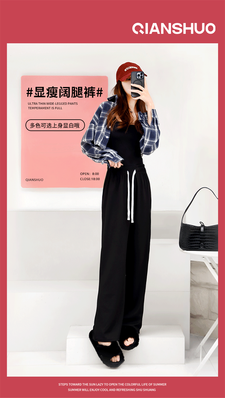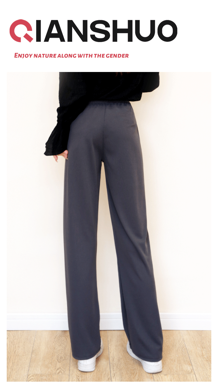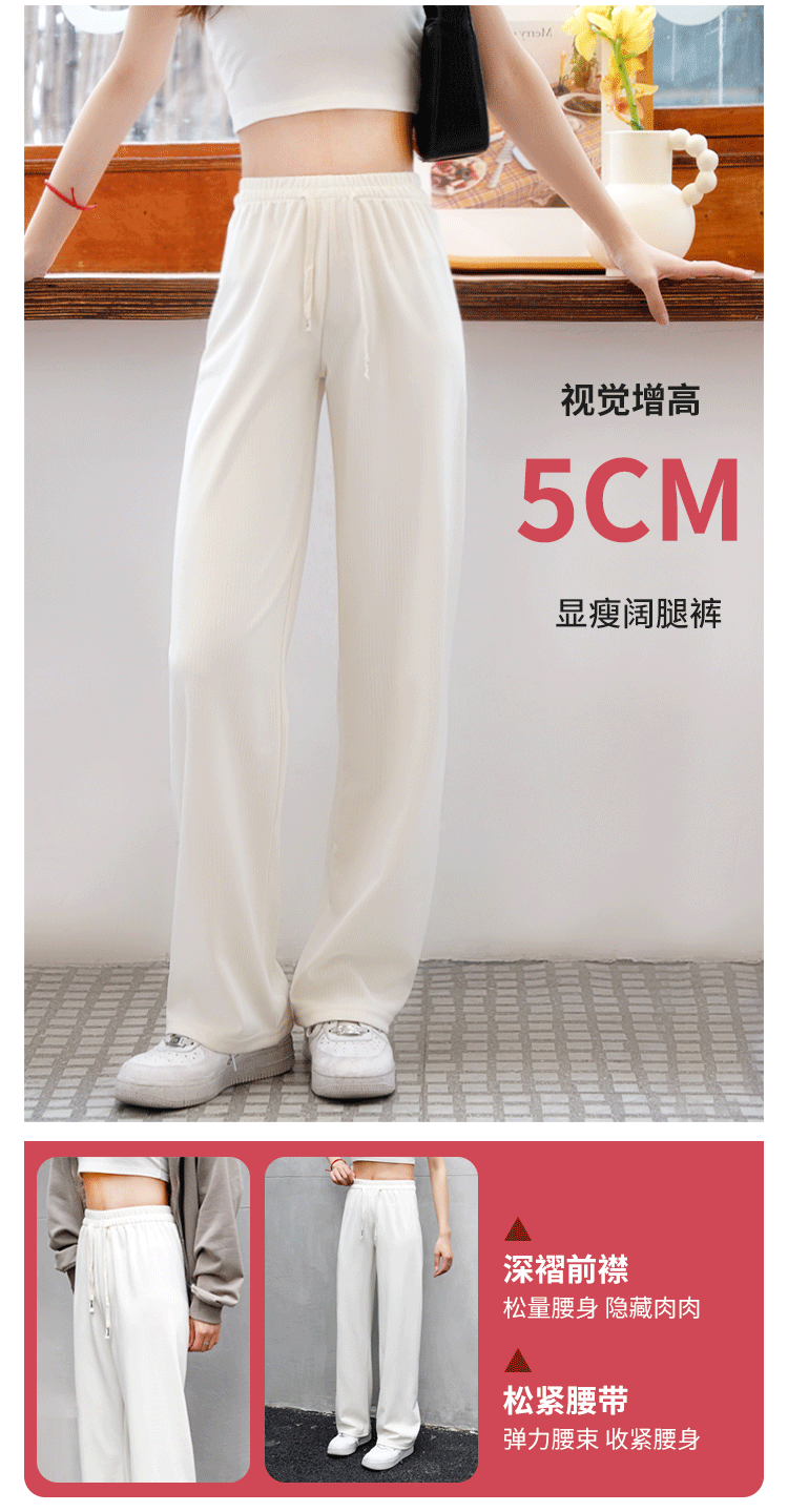 韩系春秋休闲裤宽松女裤子高腰显瘦遮肉条纹裤压皱加长款阔腿裤