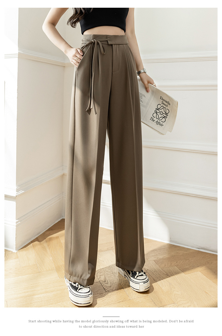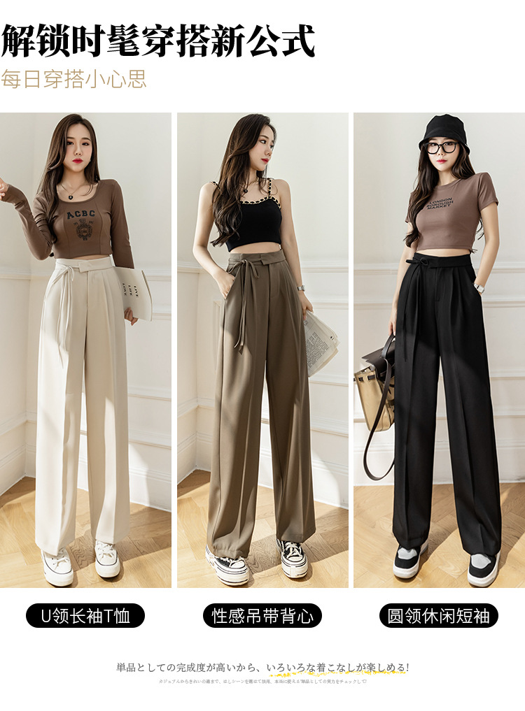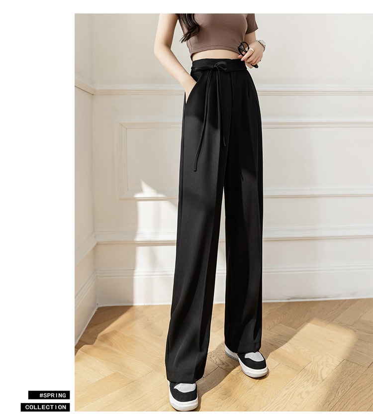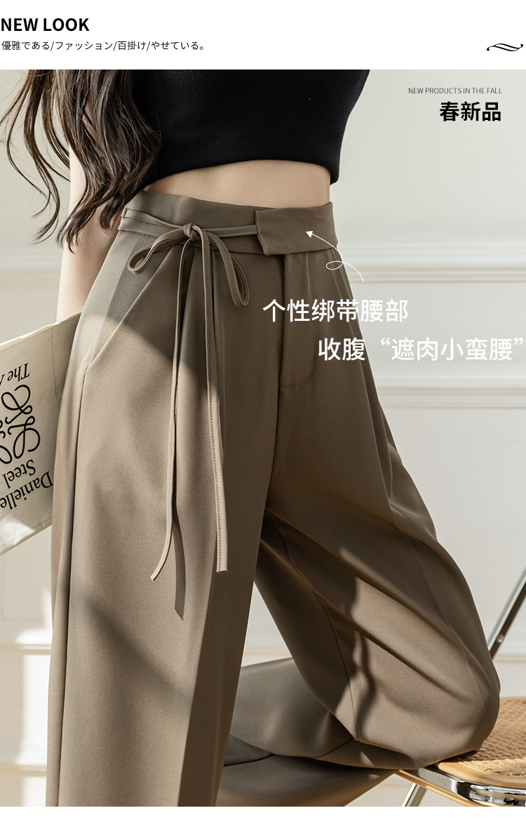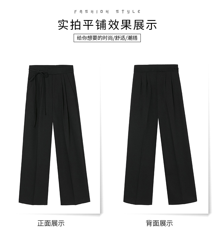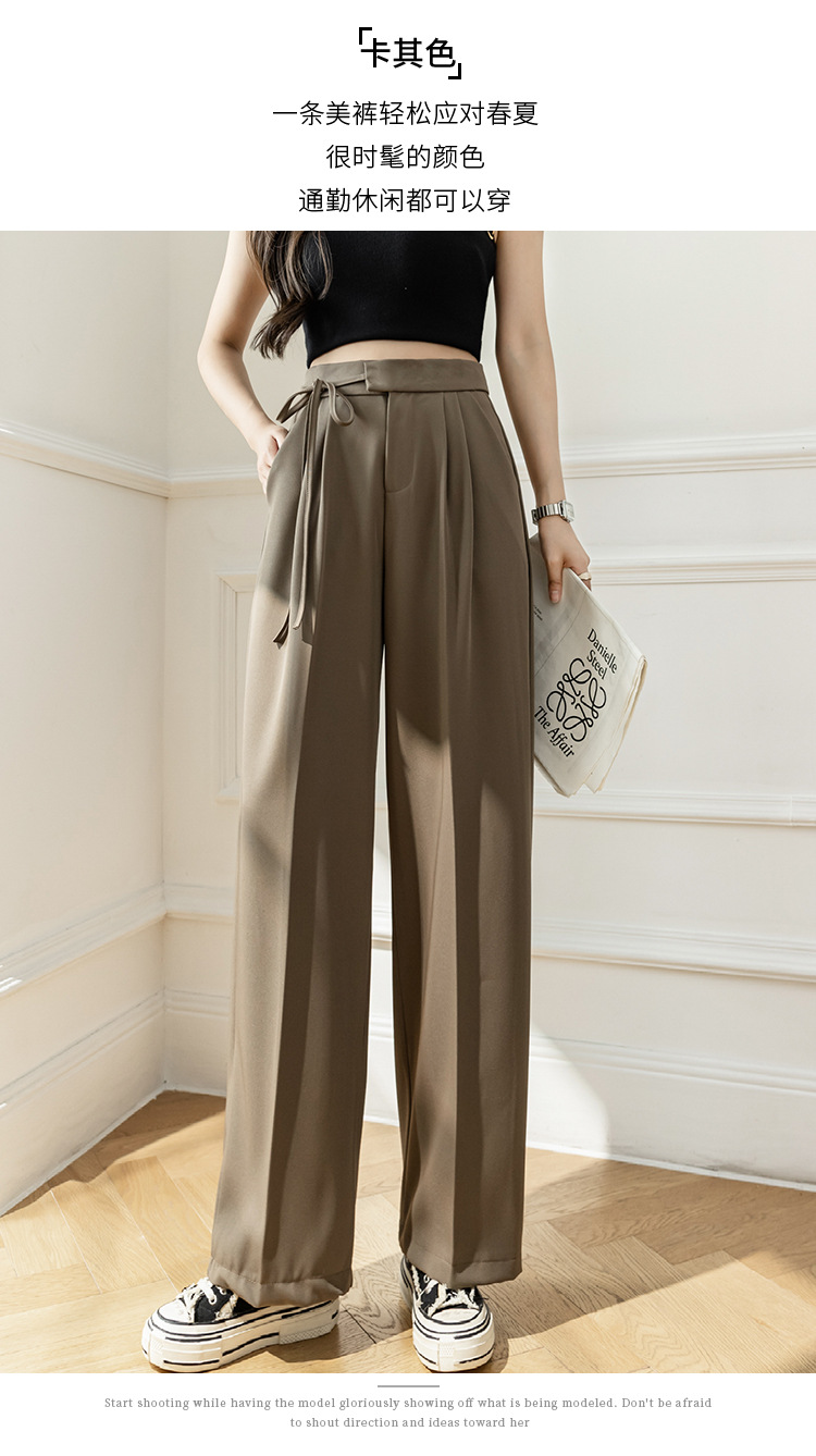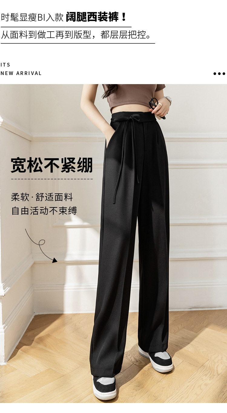 实拍高腰系带西装阔腿裤女2023春夏新款垂感宽松直筒休闲拖地长裤