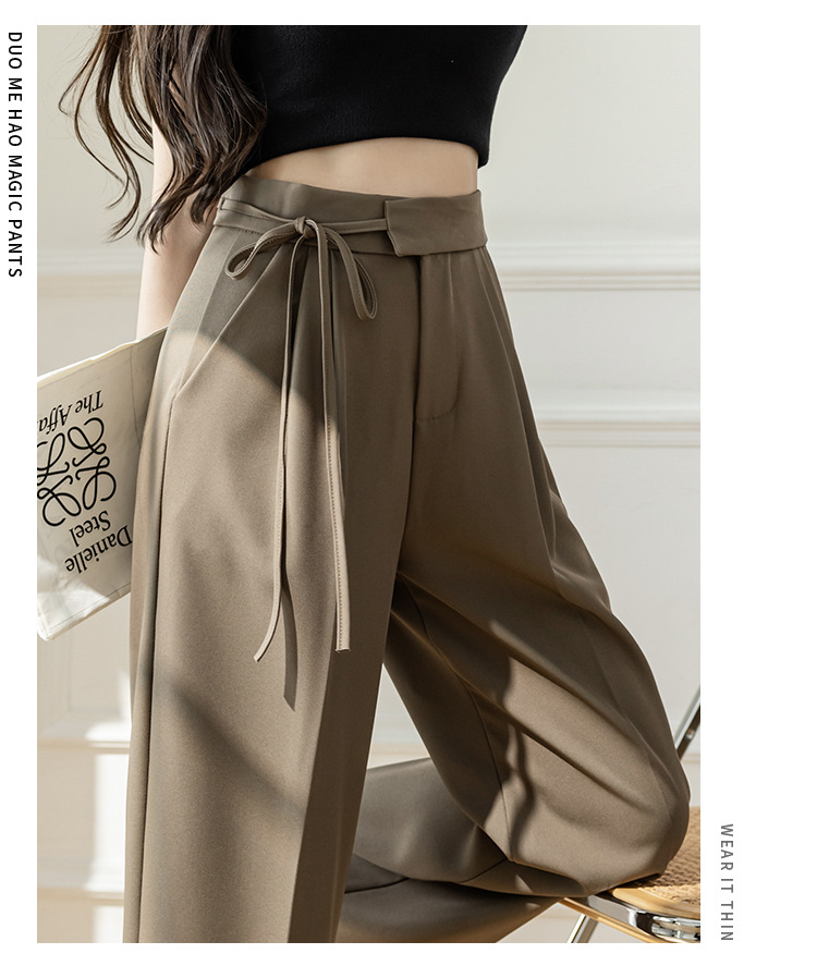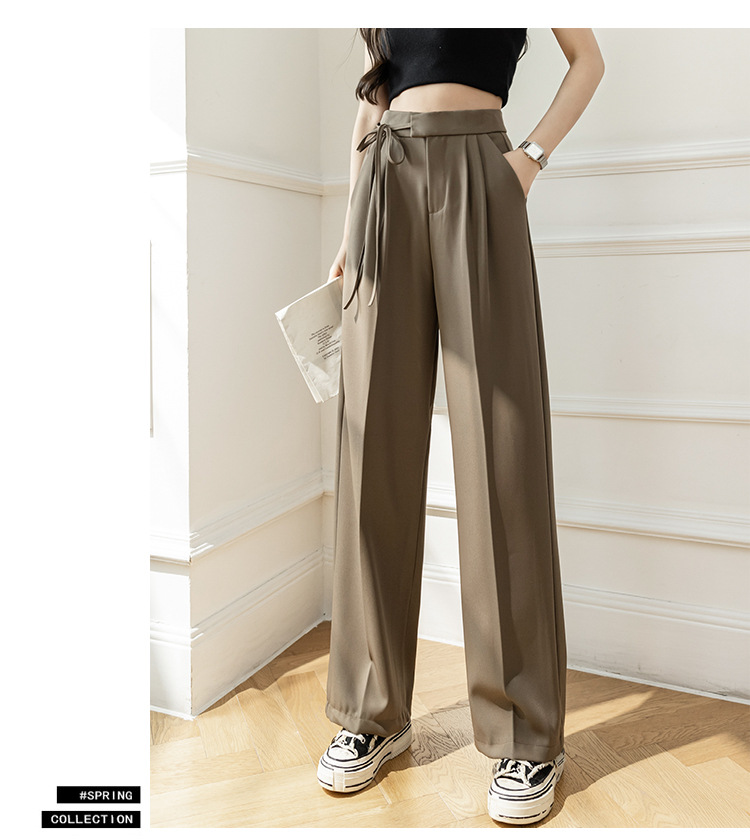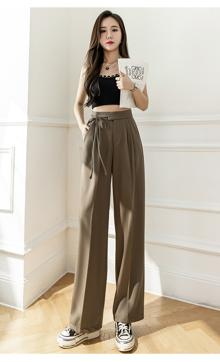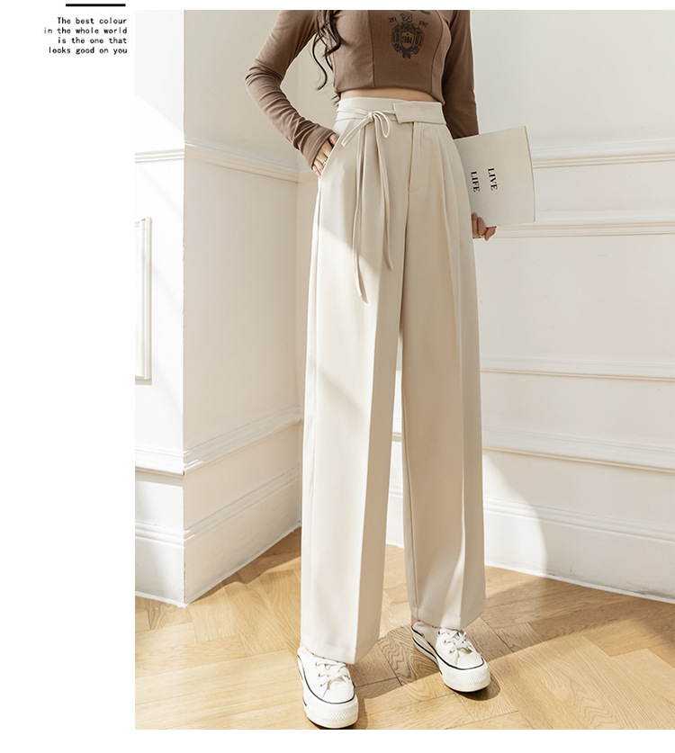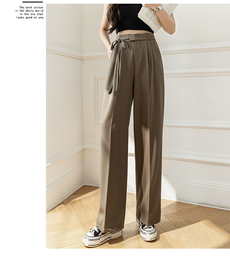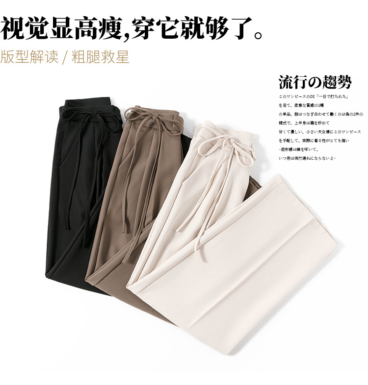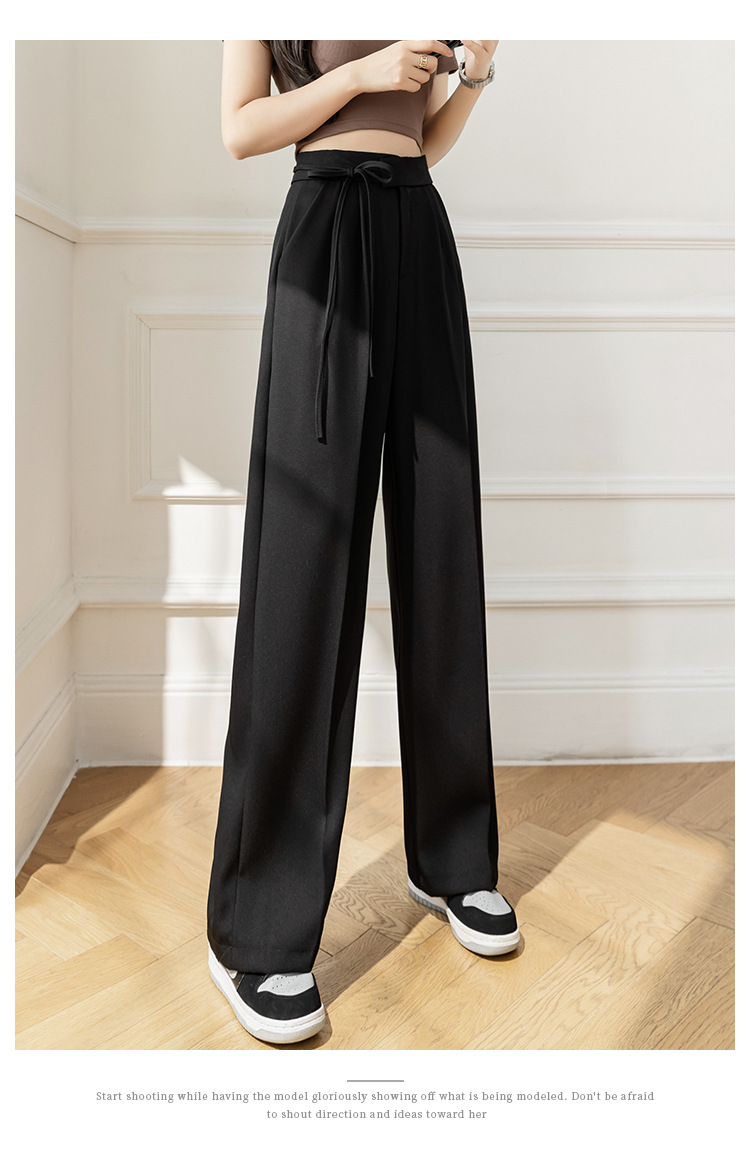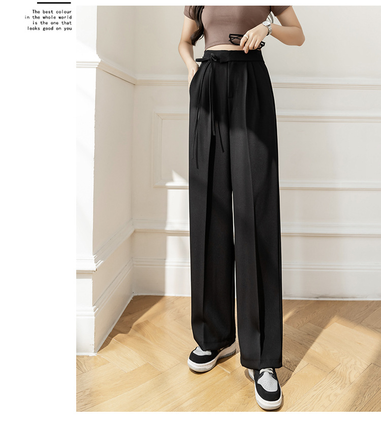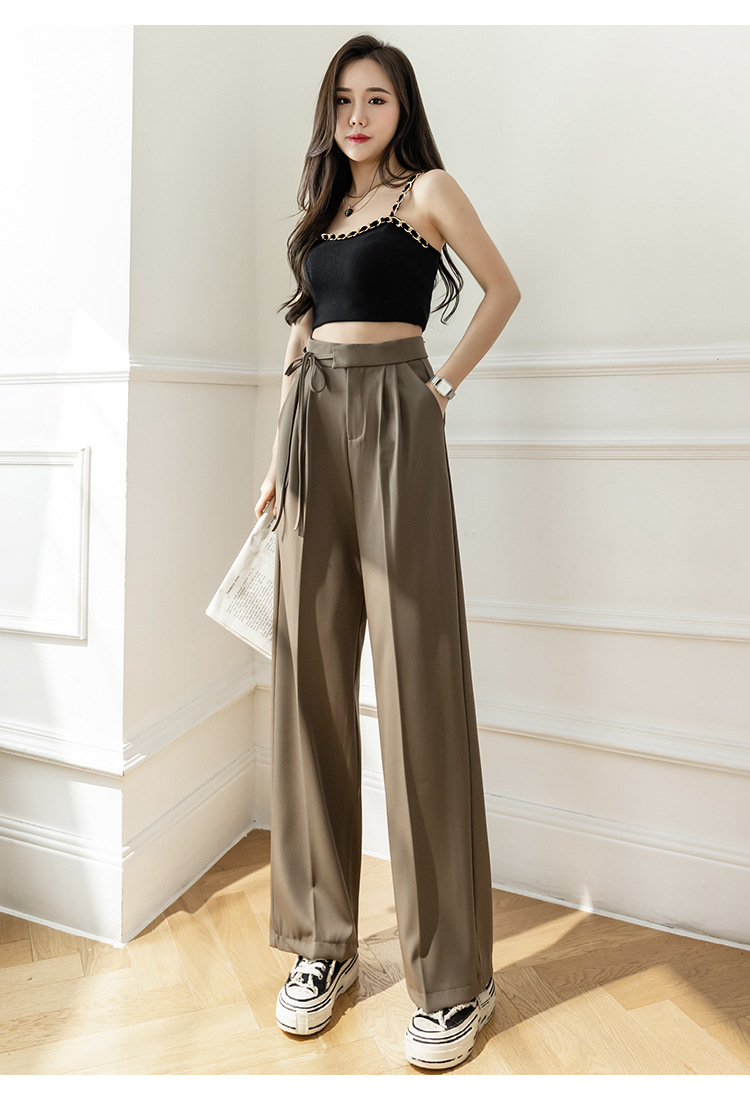 实拍高腰系带西装阔腿裤女2023春夏新款垂感宽松直筒休闲拖地长裤