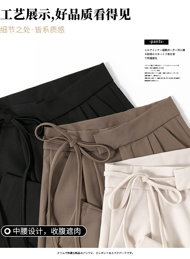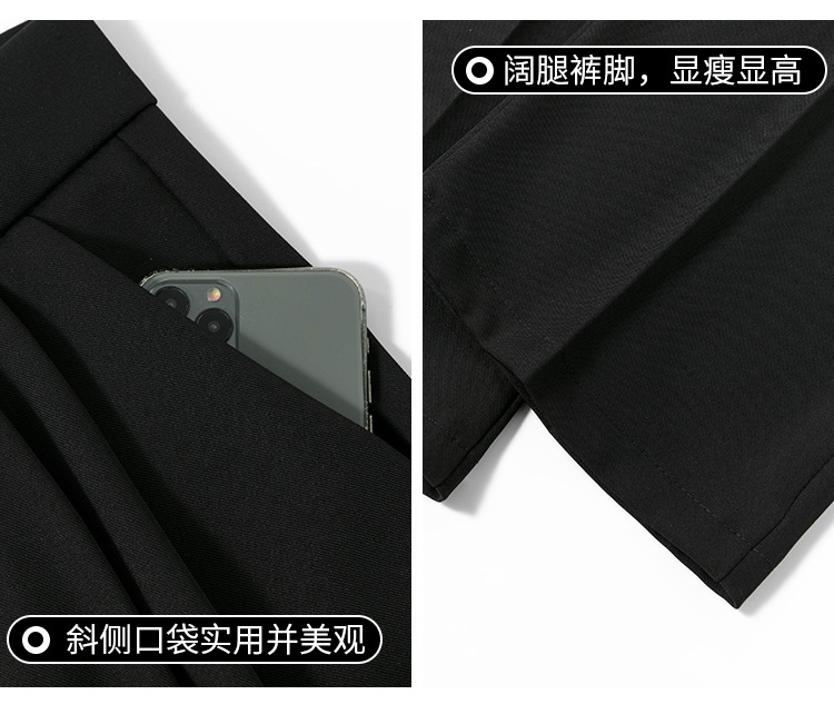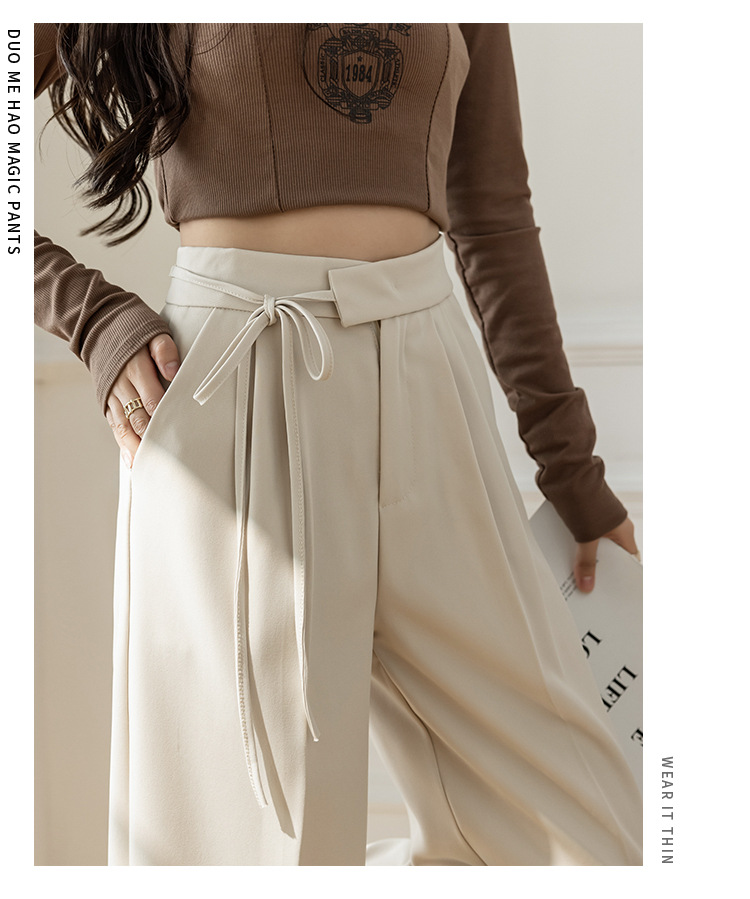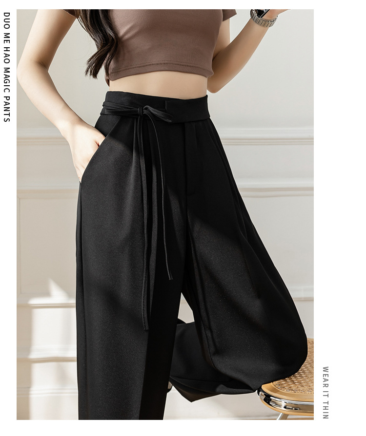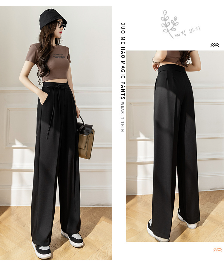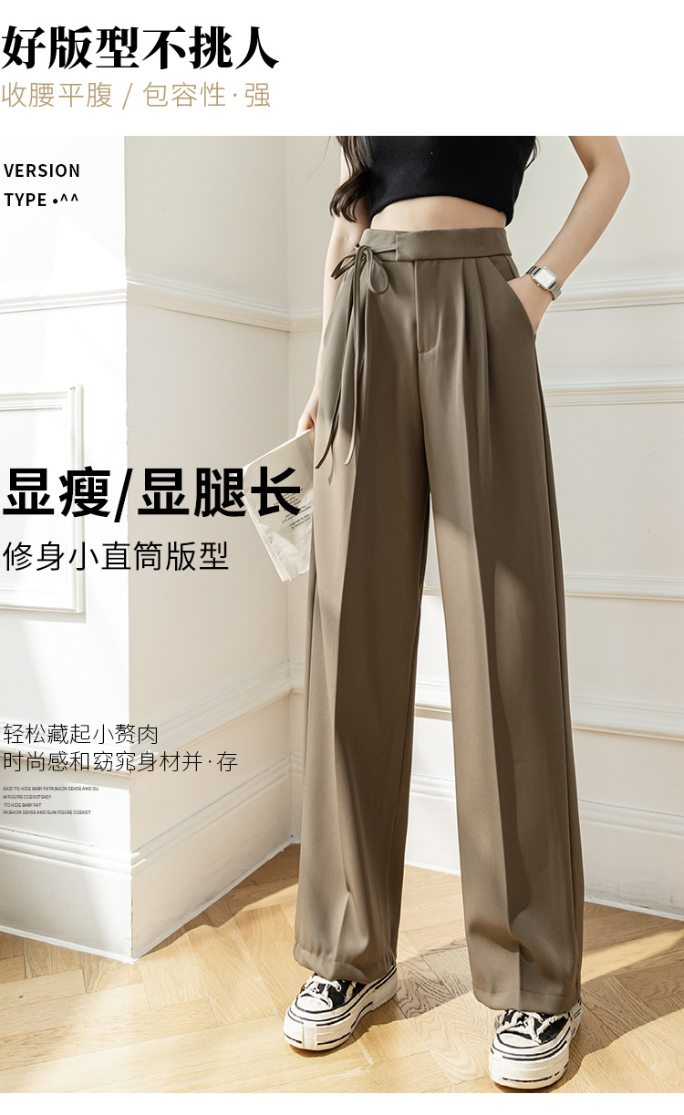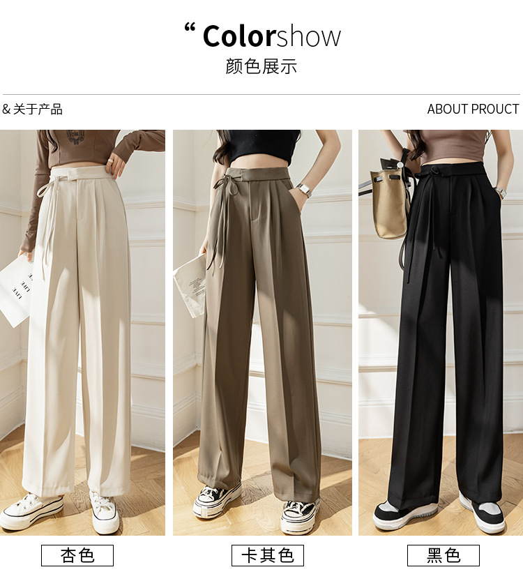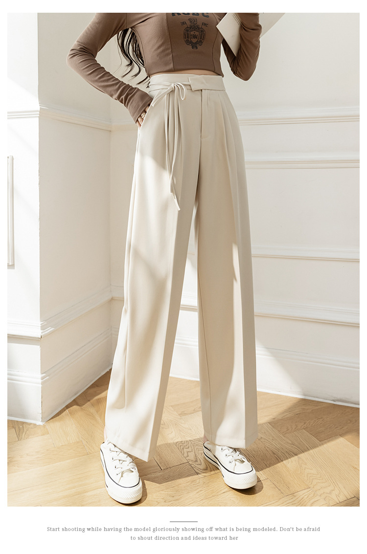 实拍高腰系带西装阔腿裤女2023春夏新款垂感宽松直筒休闲拖地长裤