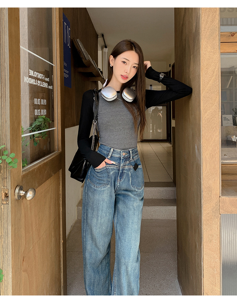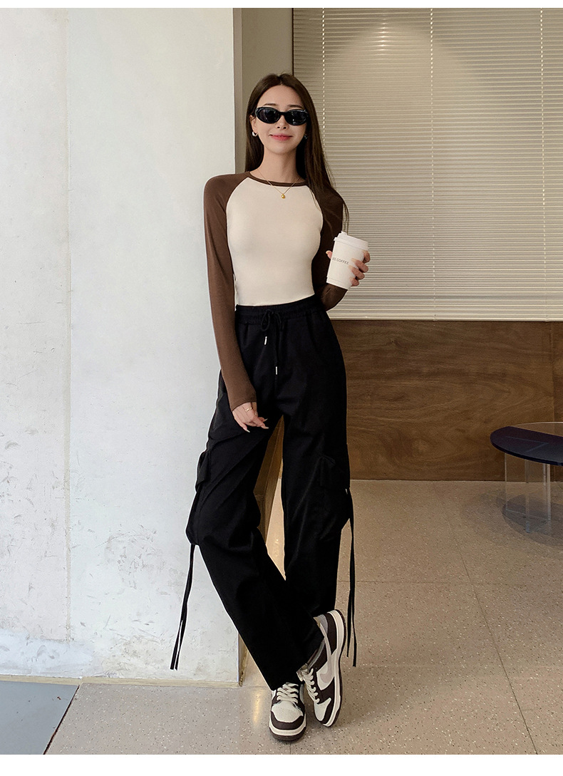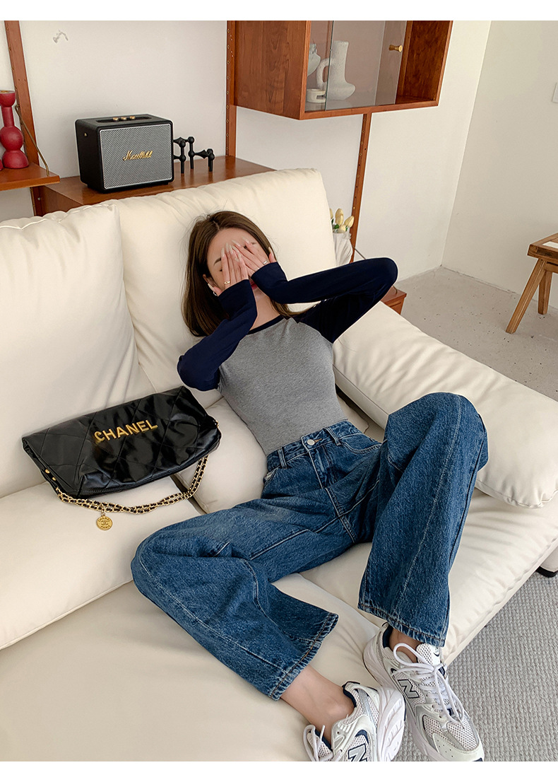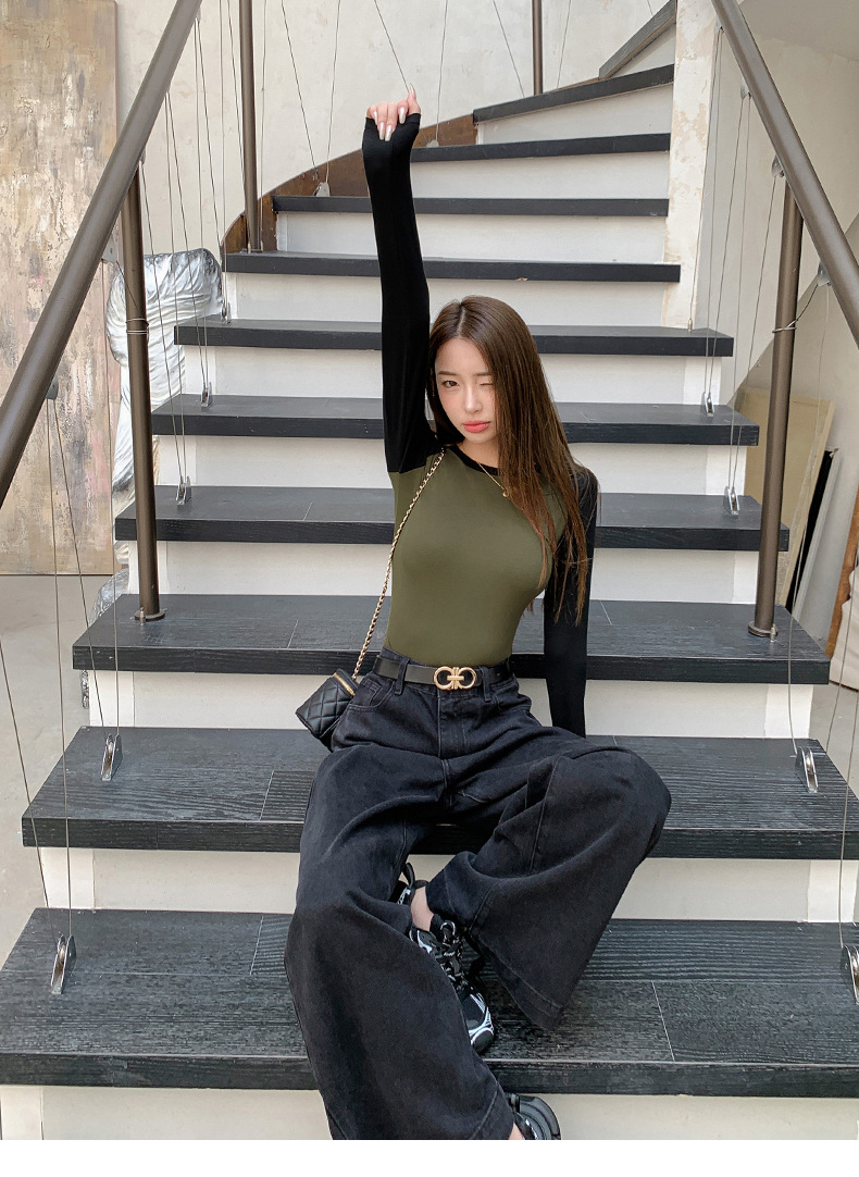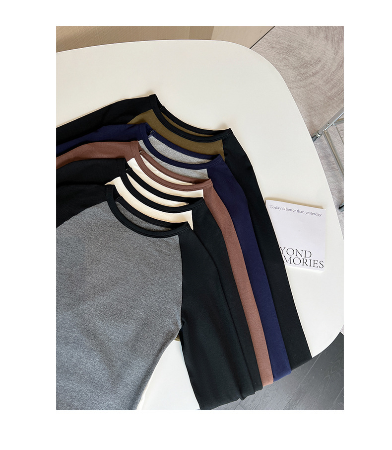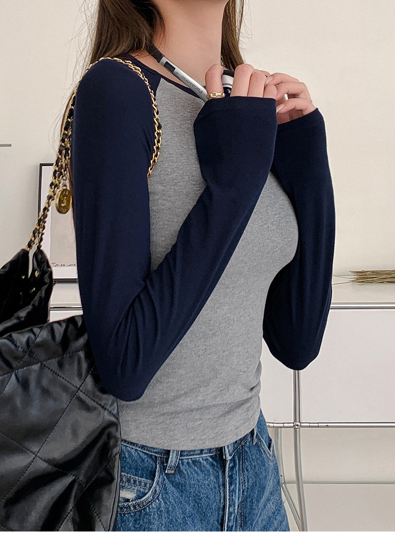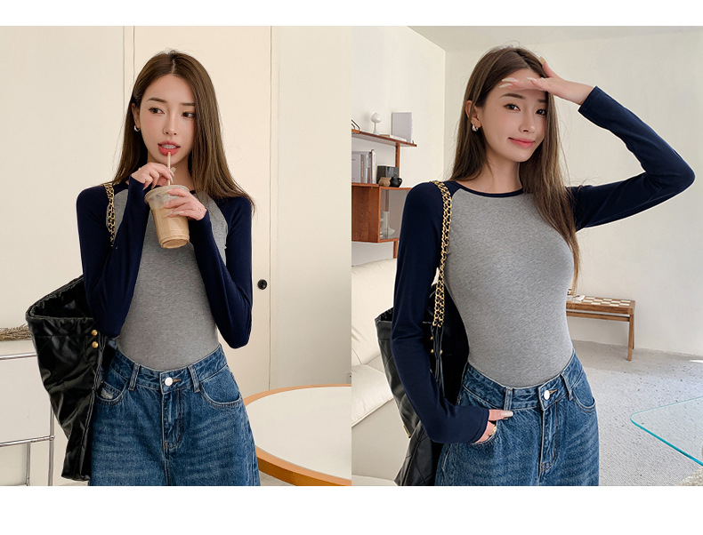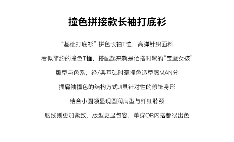莫代尔打底衫女早秋长袖T恤女撞色修身内搭秋冬新款撞色修身上衣