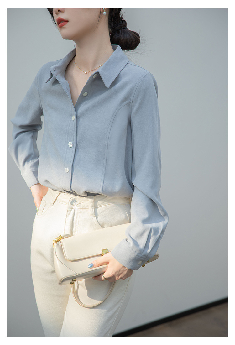 加厚磨毛衬衫女春秋2023年新款长袖正肩叠穿衬衣秋冬内搭打底上衣