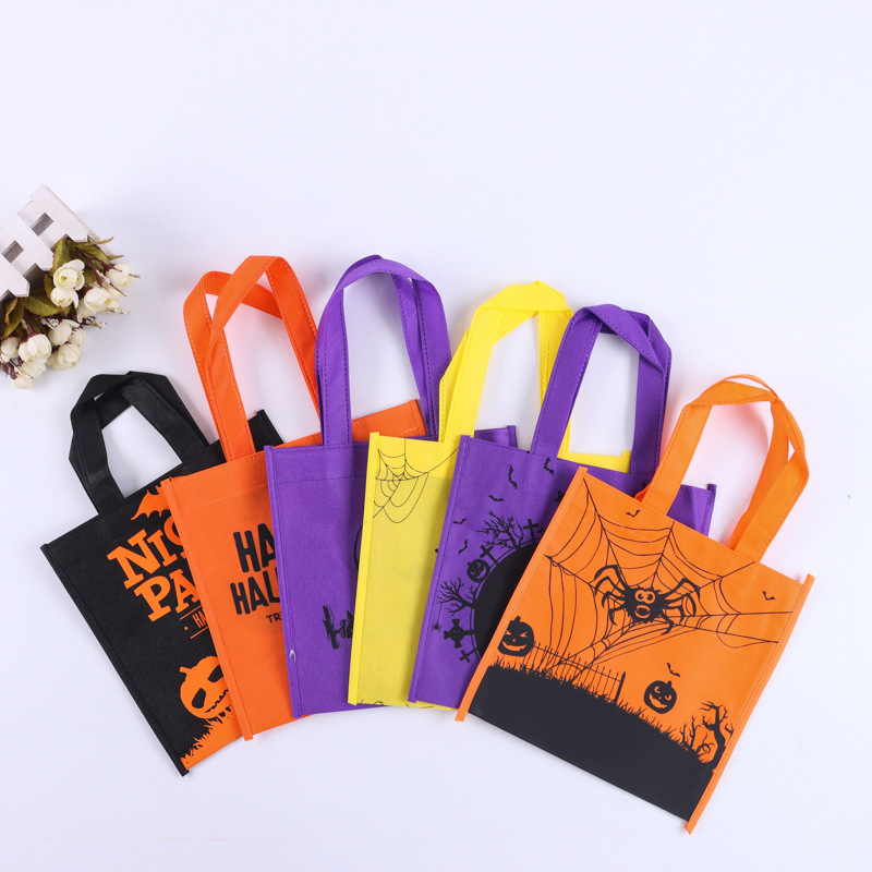 现货万圣节糖果无纺布袋 淋膜彩印南瓜袋 鬼节印花礼品手提袋批发