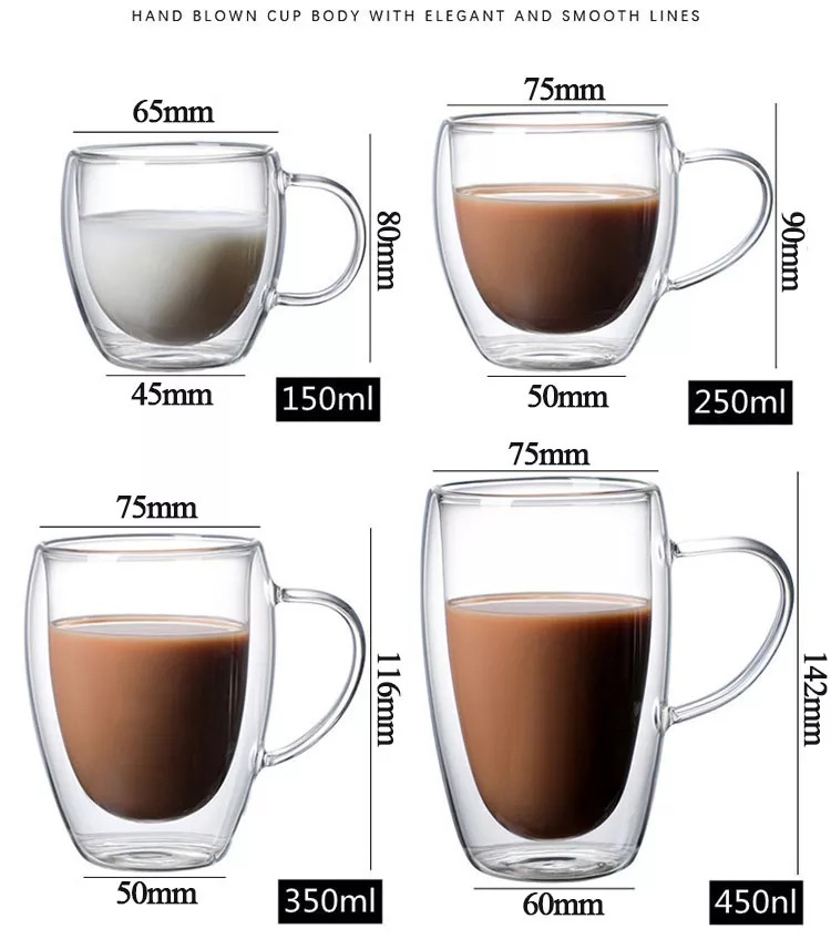 玻璃杯耐热带把手双层玻璃杯高硼硅可加印logo创意办公杯玻璃咖