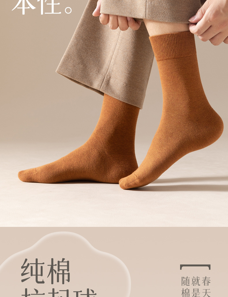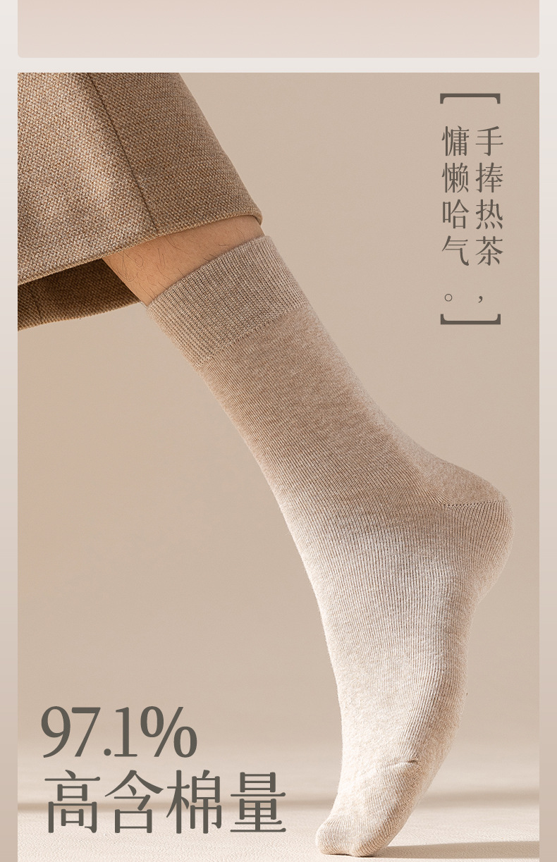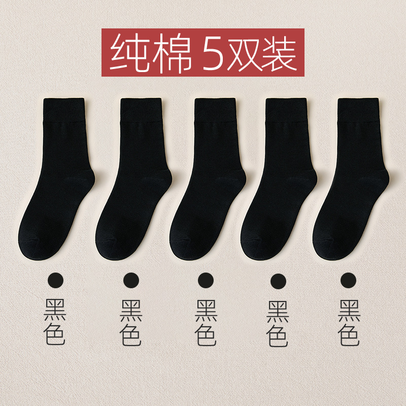 袜子男士棉袜秋冬纯棉长袜保暖中筒袜吸汗长绒棉黑色运动袜子秋季