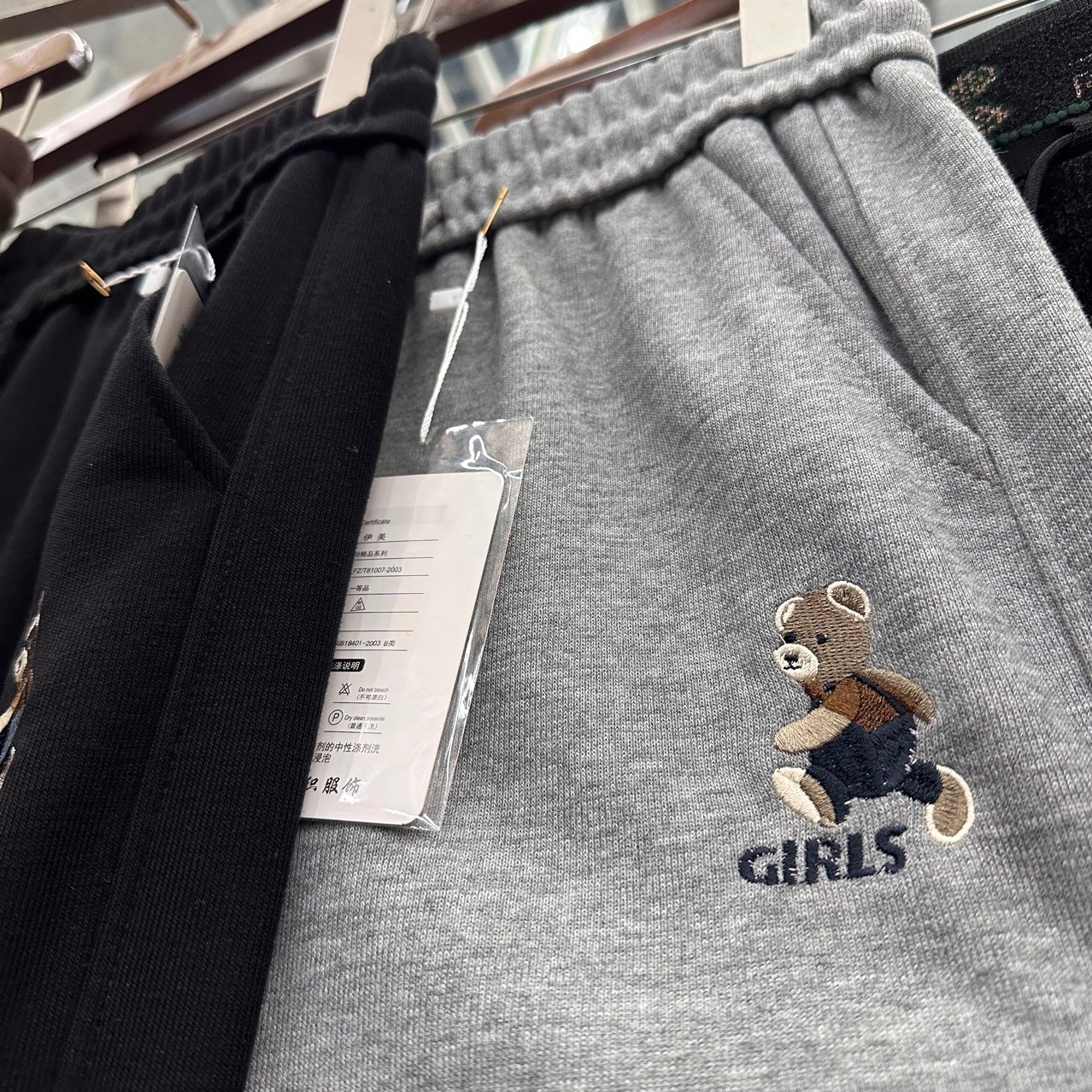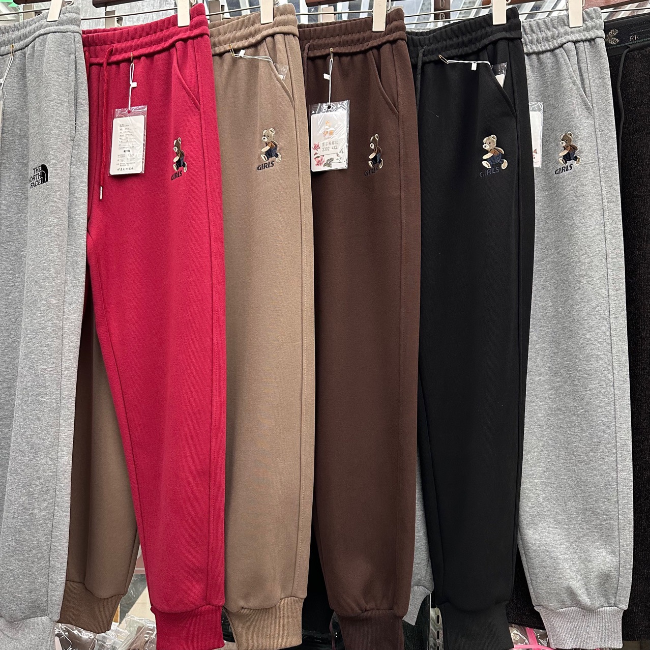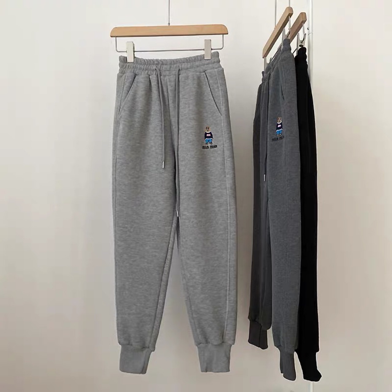 2023春秋新款加绒束脚卫裤女欧货潮牌小熊刺绣休闲宽松抽绳运动裤