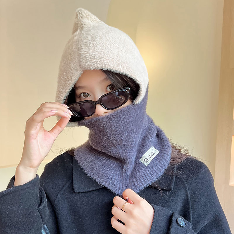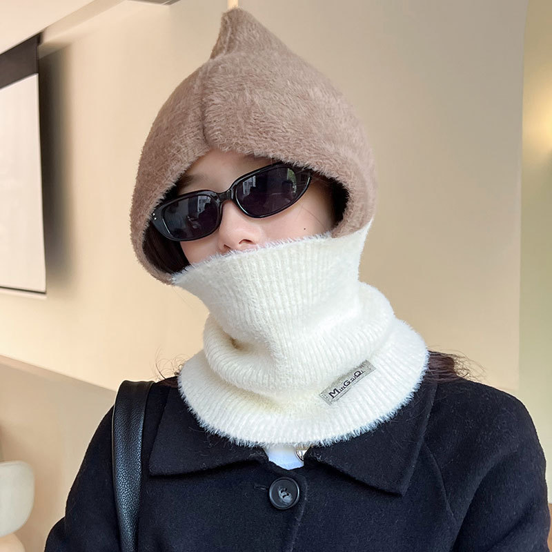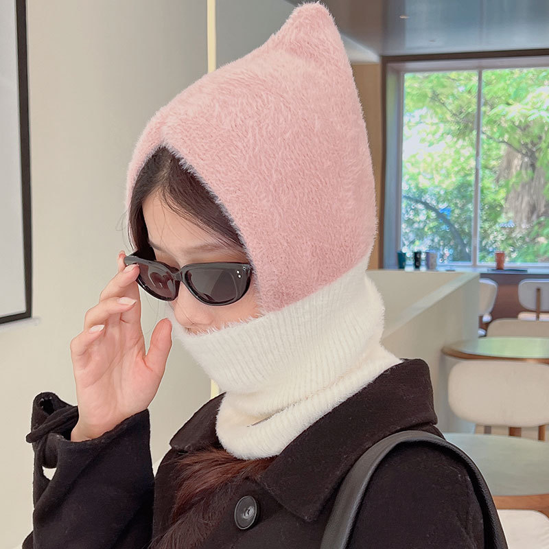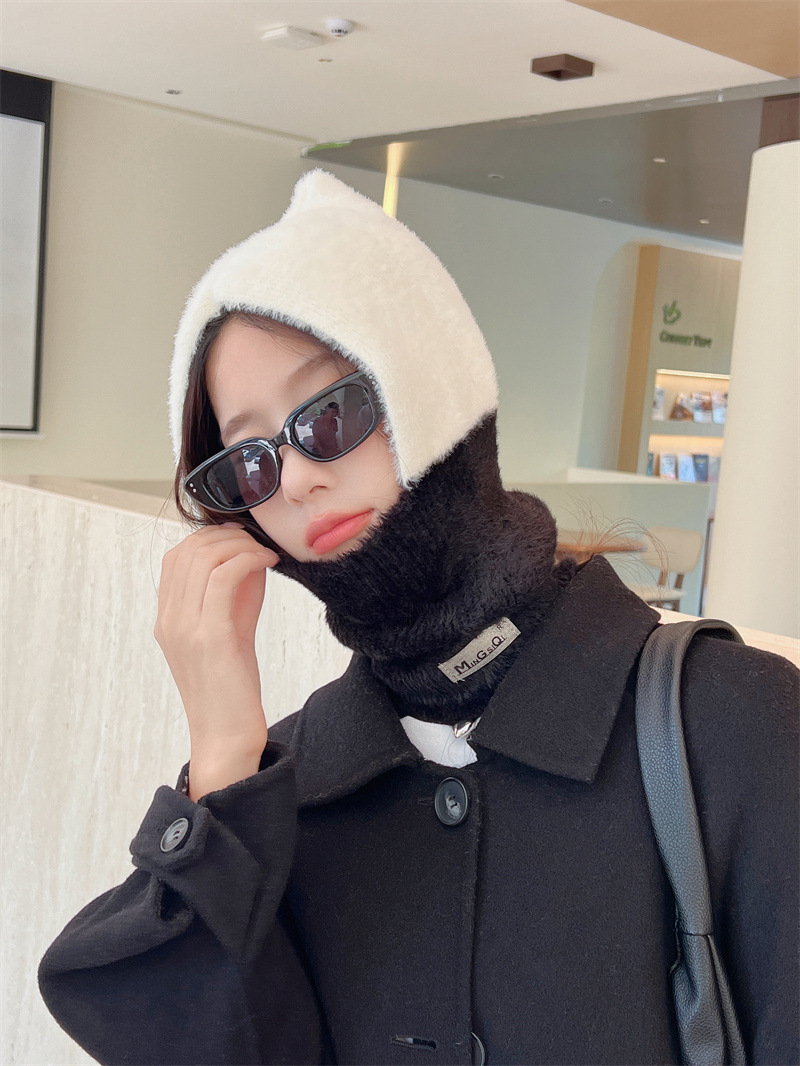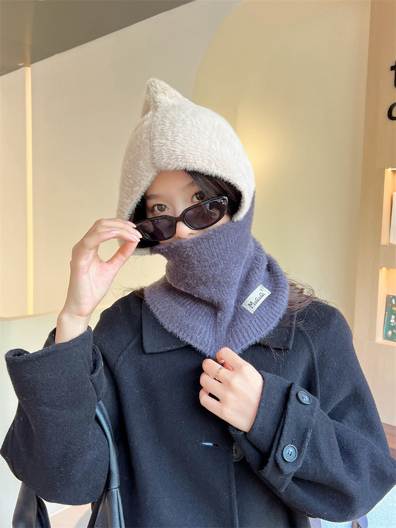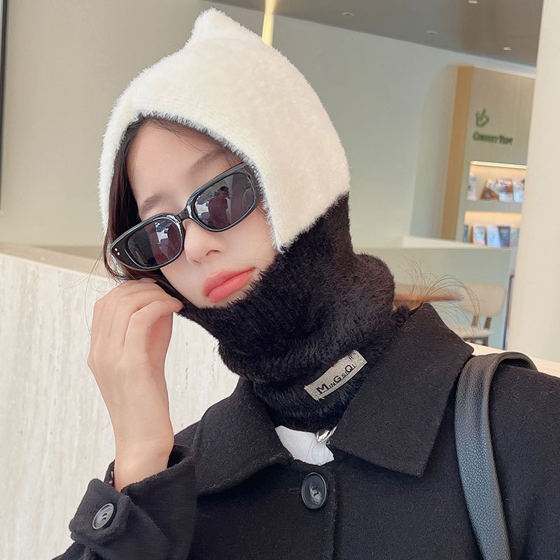 网红保暖围脖套护耳帽子女士秋冬季显脸小防寒一体针织毛线雷锋帽
