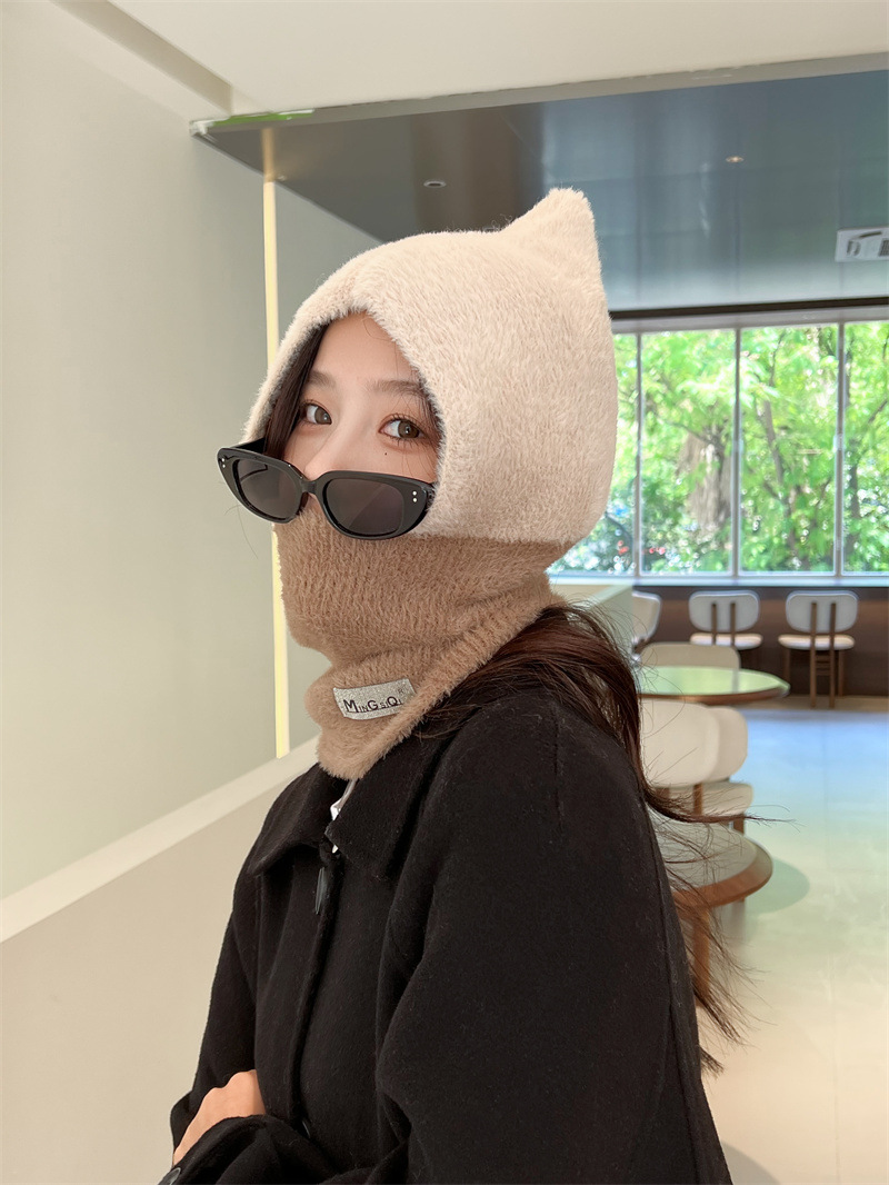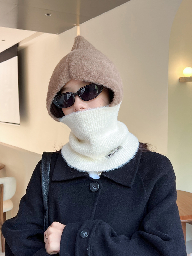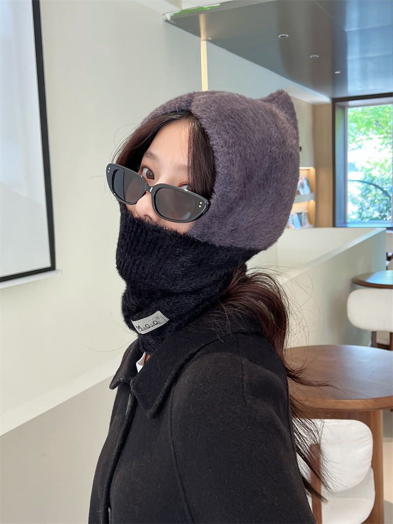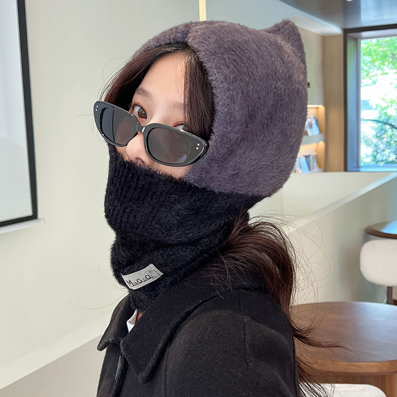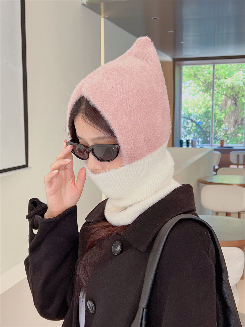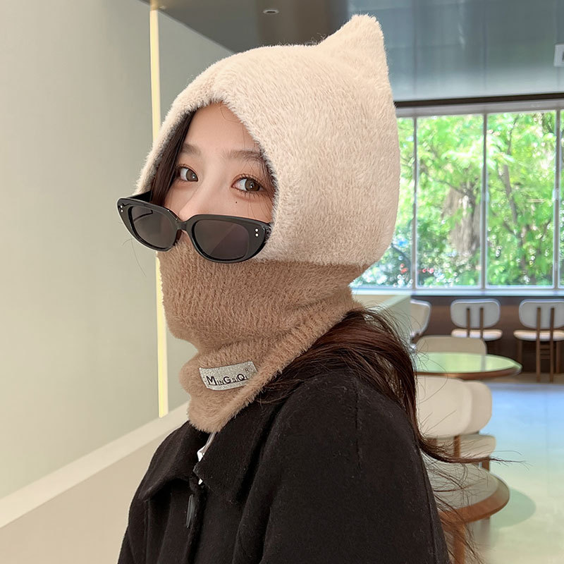 网红保暖围脖套护耳帽子女士秋冬季显脸小防寒一体针织毛线雷锋帽