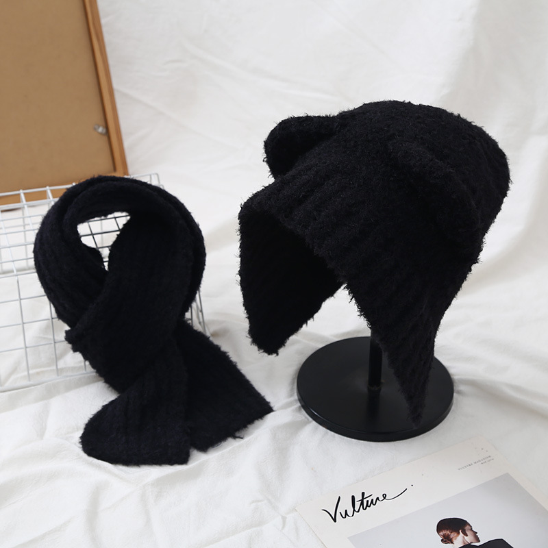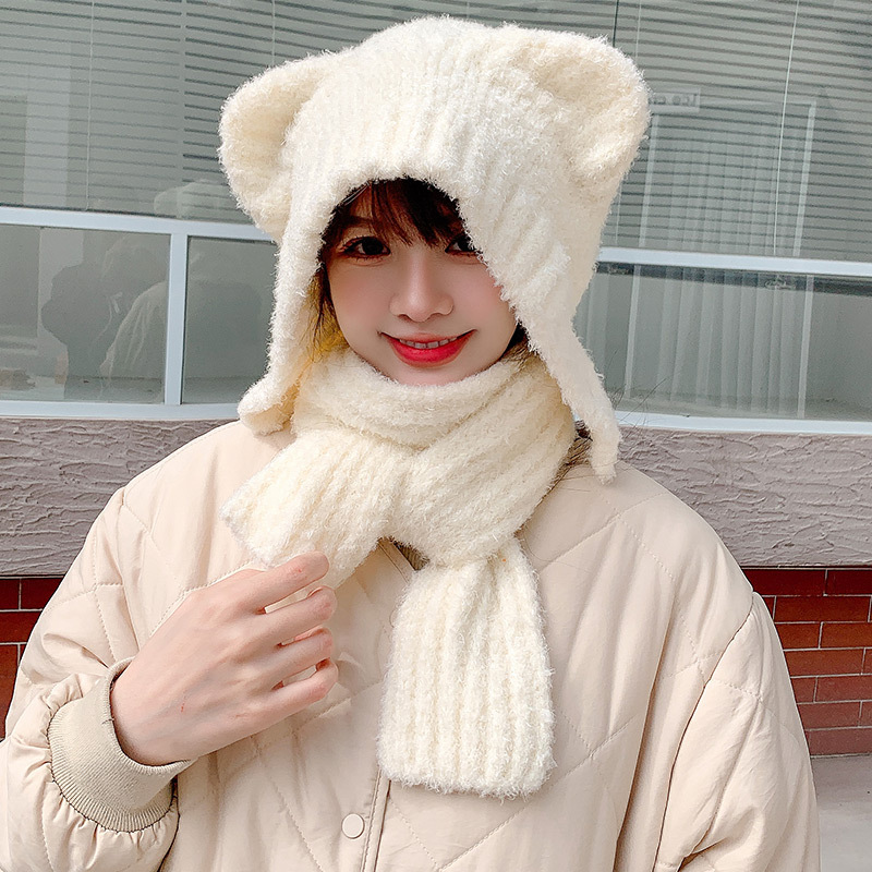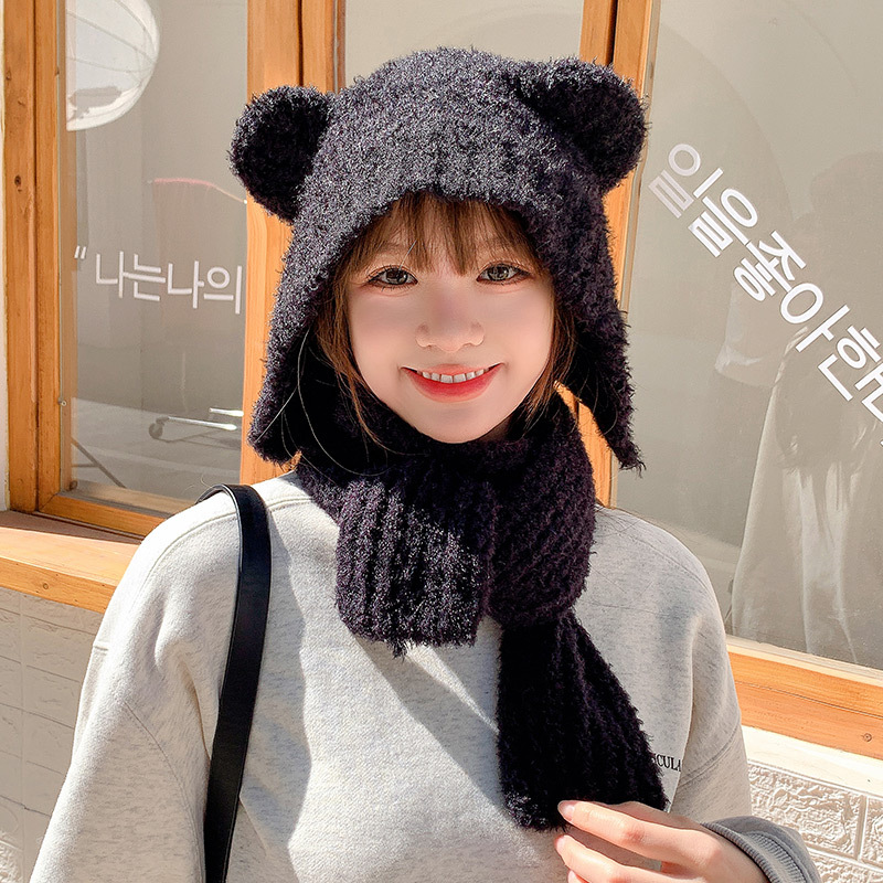 ins针织韩版潮小熊护耳帽子女士 秋冬网红百搭保暖围巾直播毛线帽