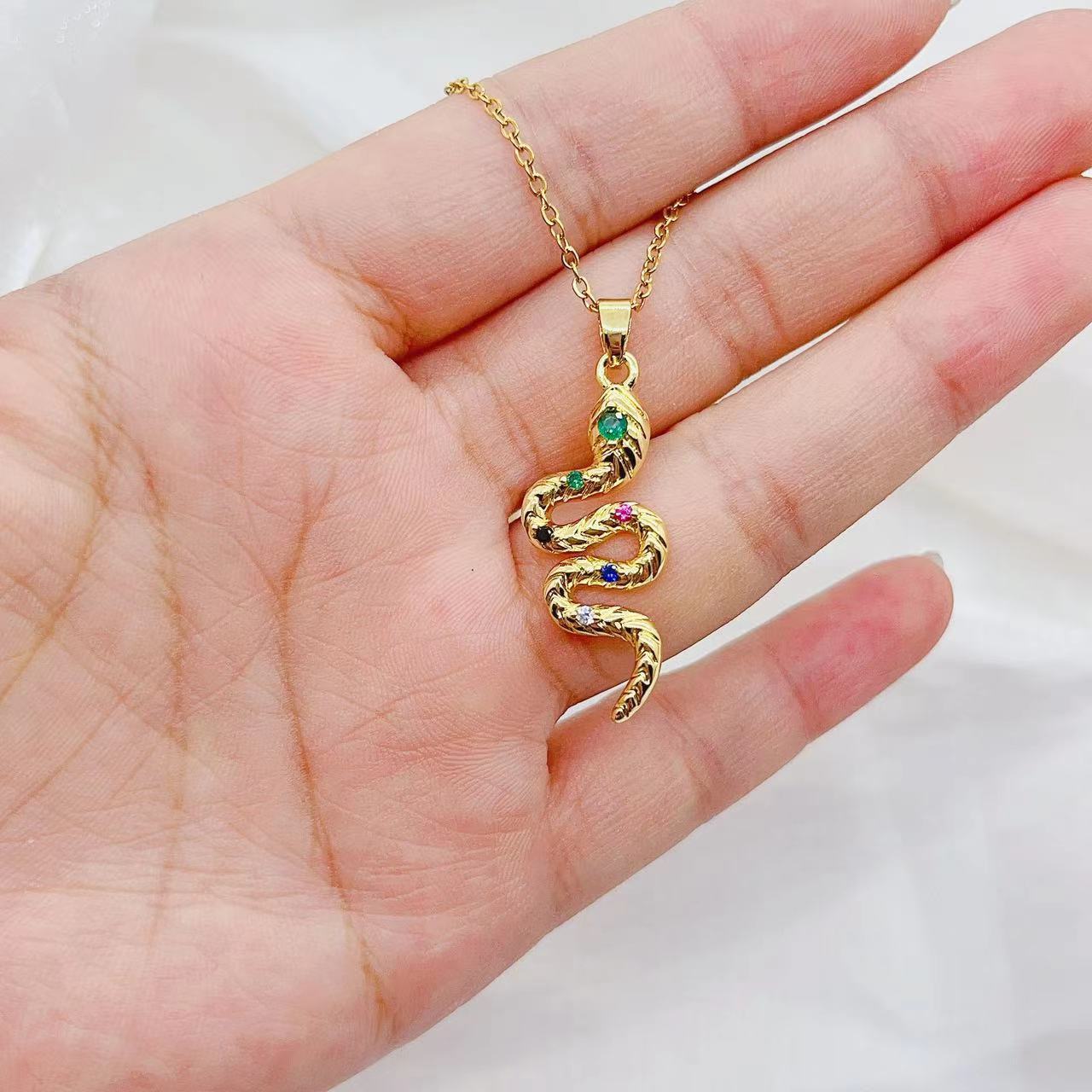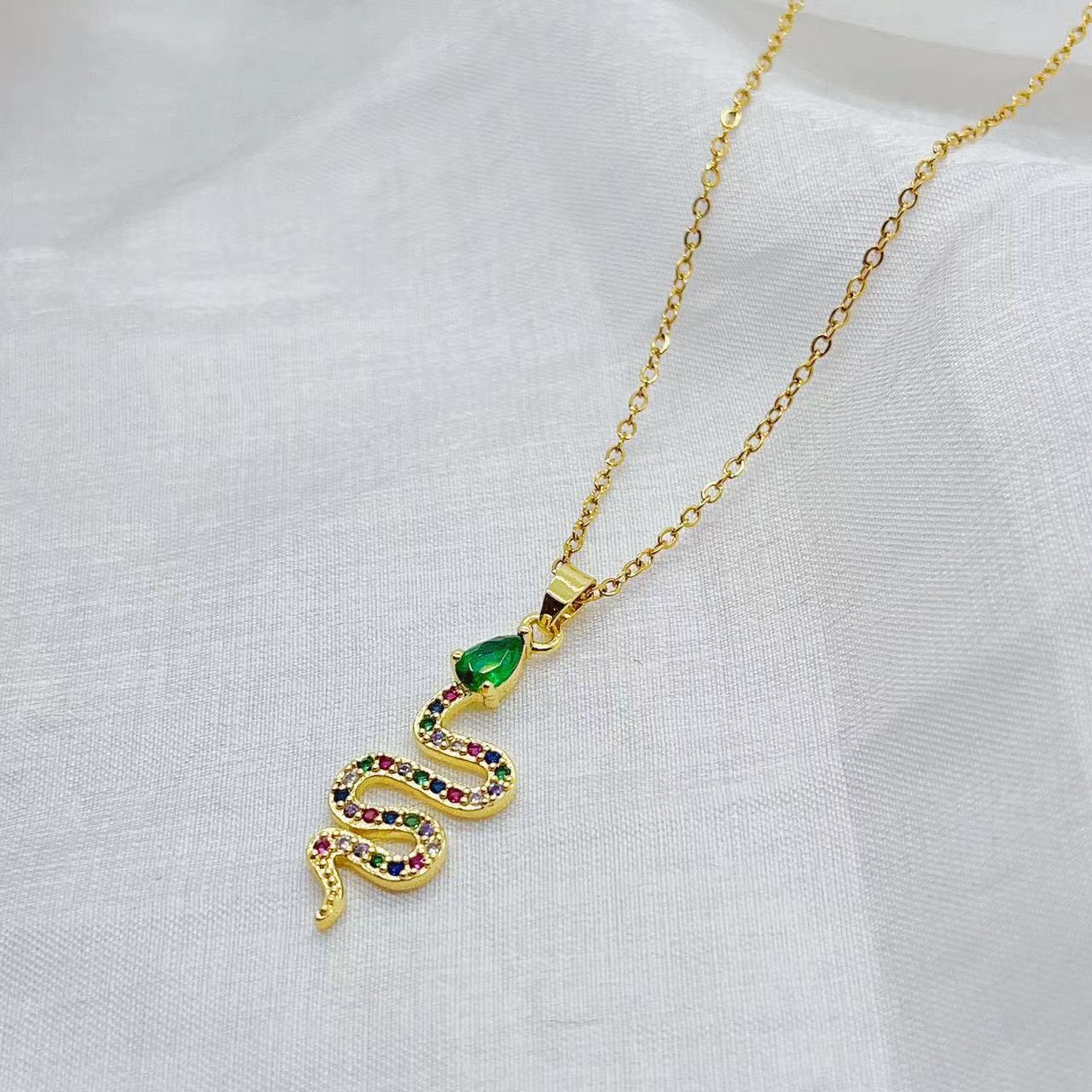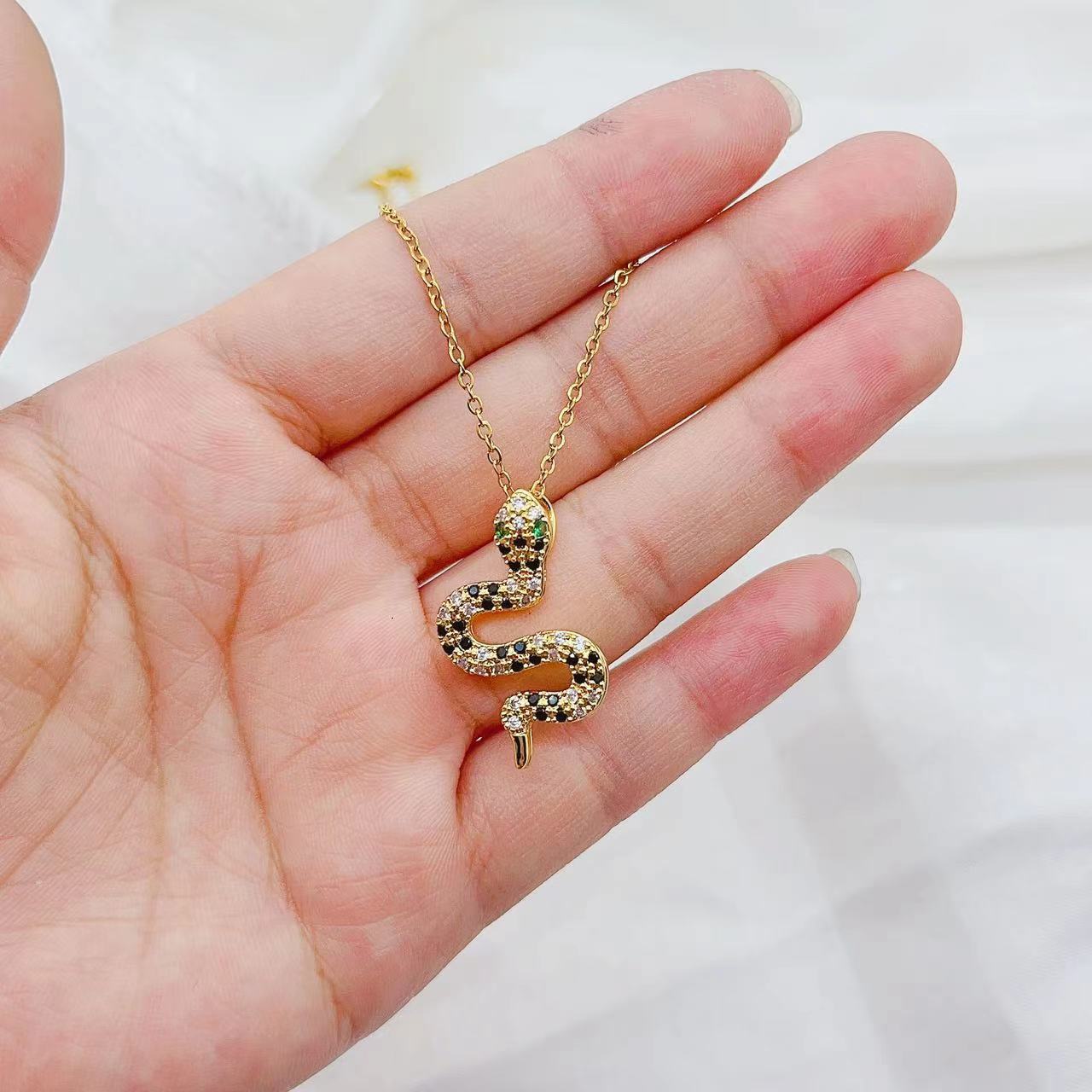欧美时尚个性冷淡风蛇项链 多款可选铜镀18K微镶锆石跨境新品专供