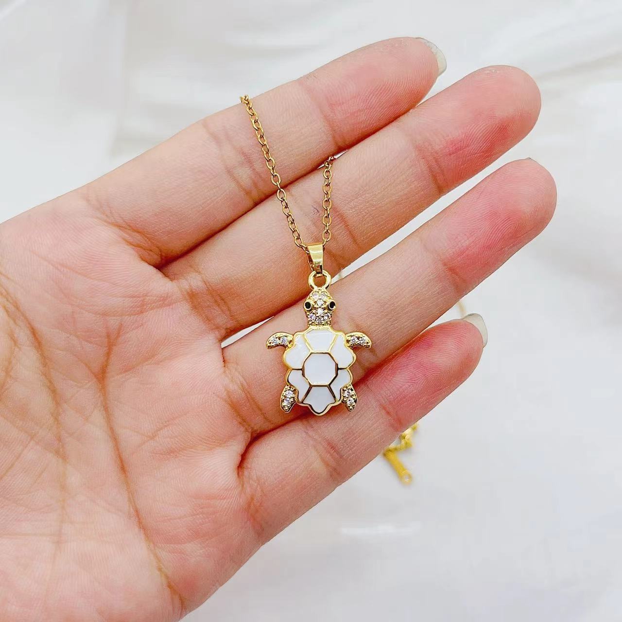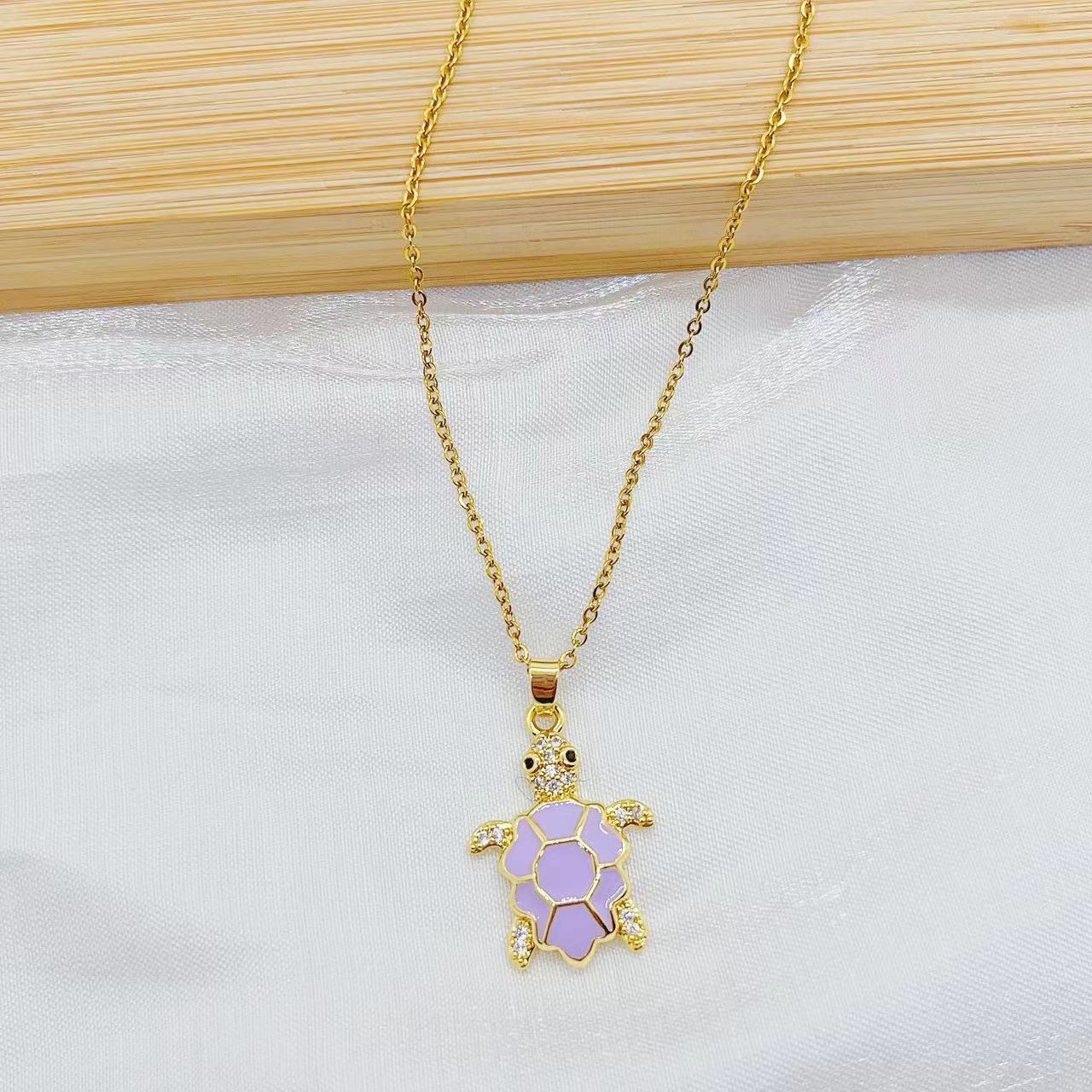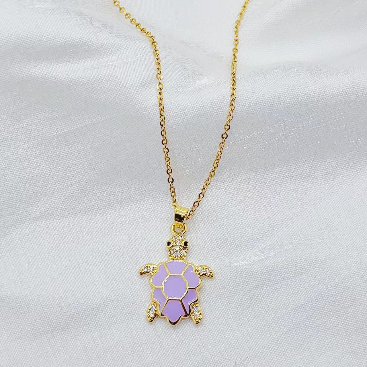 Europe and America Cross Border New Personalized Niche Design Cute Three-Dimensional Turtle Necklace Colorful Oil Necklace Series Necklace Wholesale
