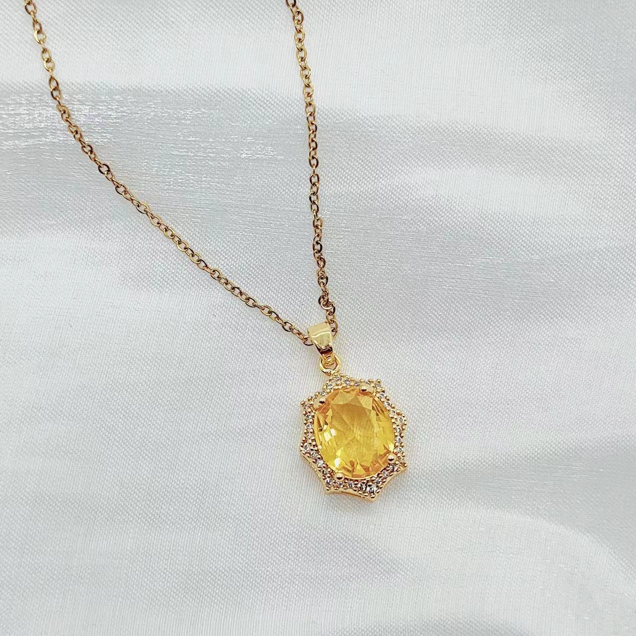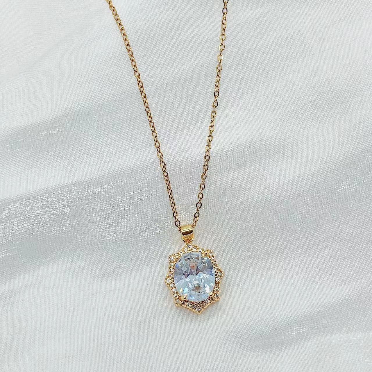 大气时尚百搭蛋形项链多色可选气质锁骨链铜镀18K欧美跨境专供款