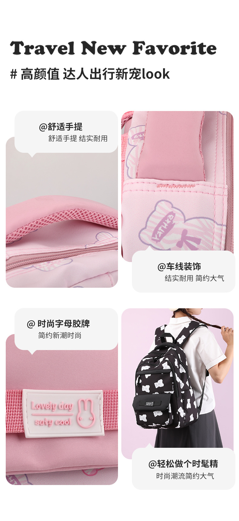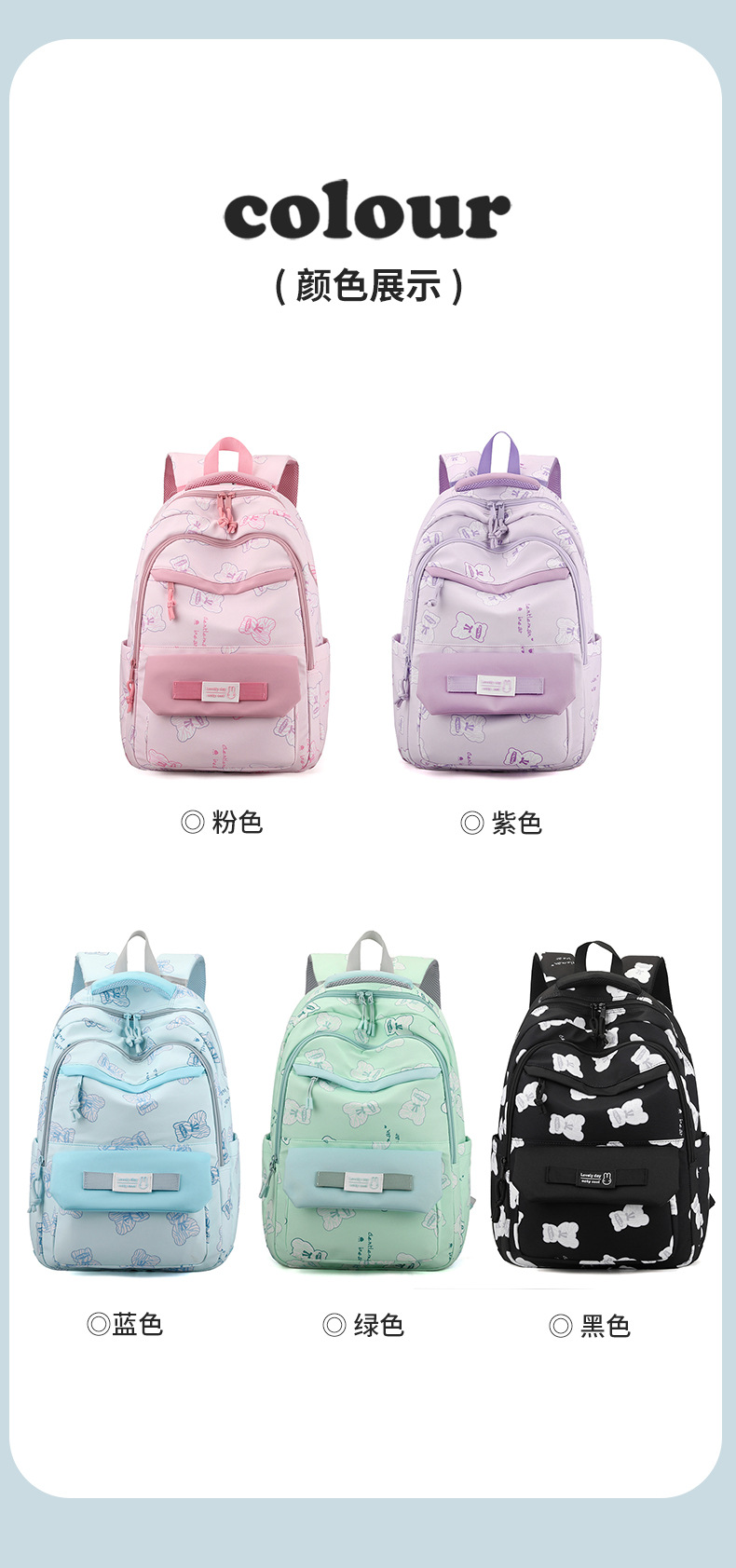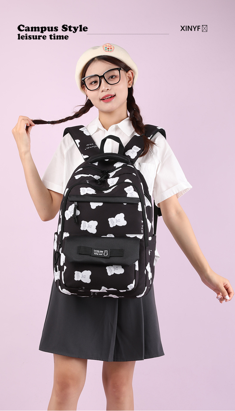 书包女双肩包3印花学院风高颜值校园学生背包