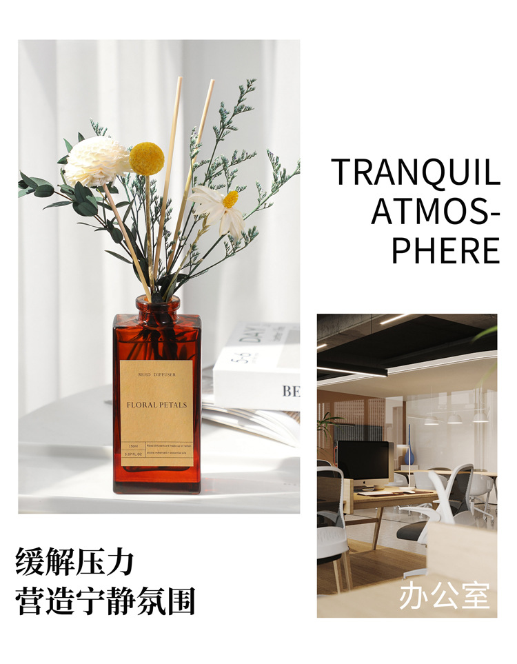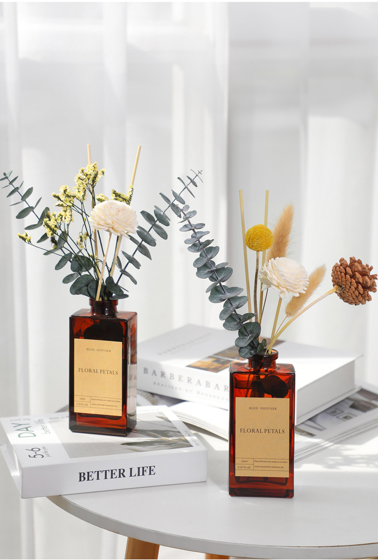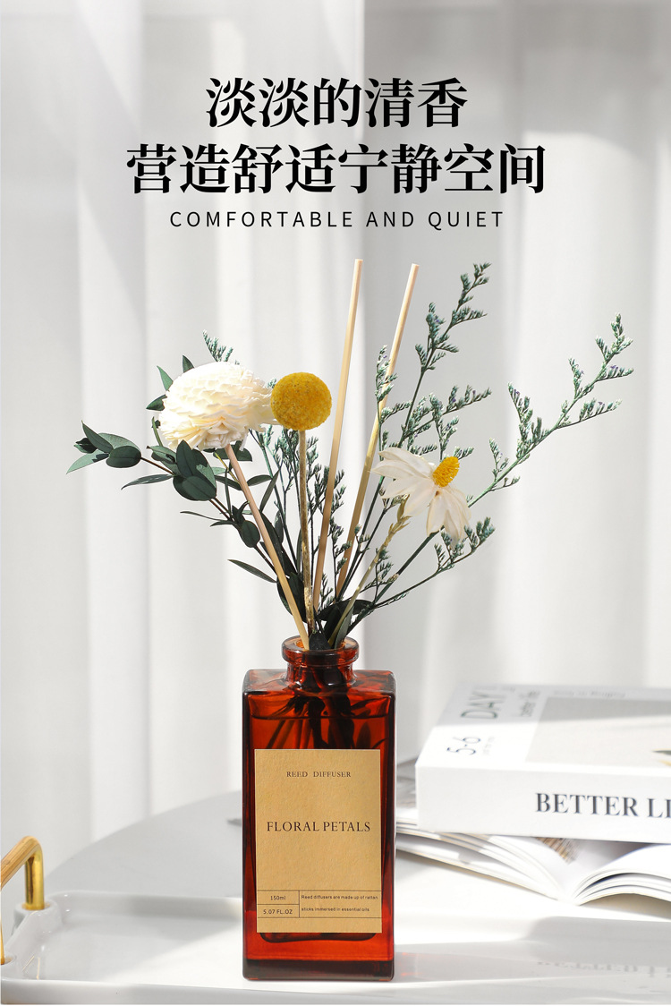 复古棕瓶干花无火香薰精油家用藤条香氛摆件卧室内空气清新除味