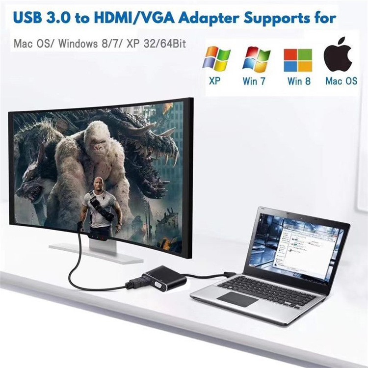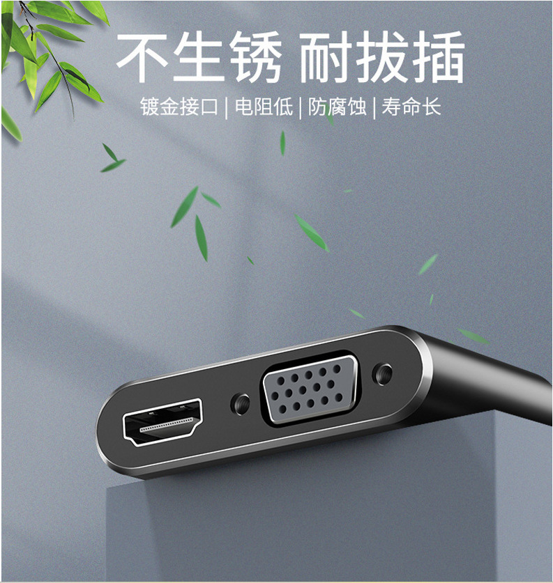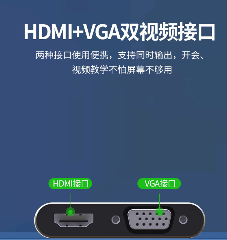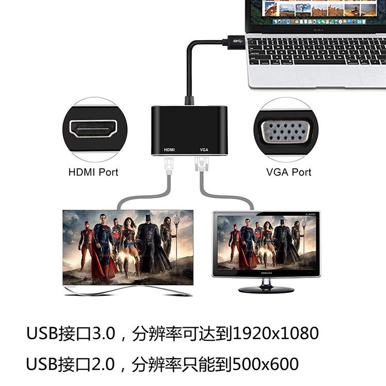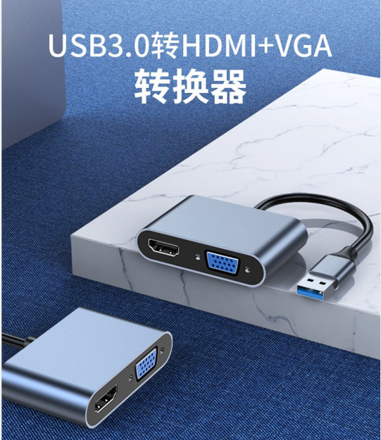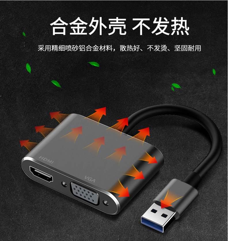 跨境USB3.0转HDMI+VGA转换器 Type-C口高清二合一USB转HDMI转接器