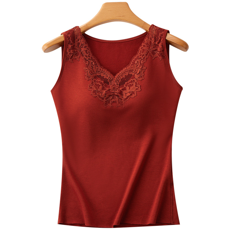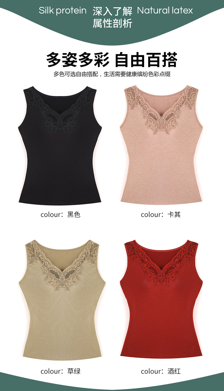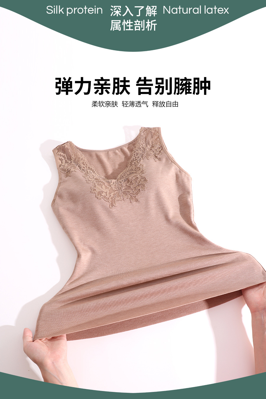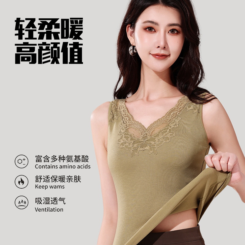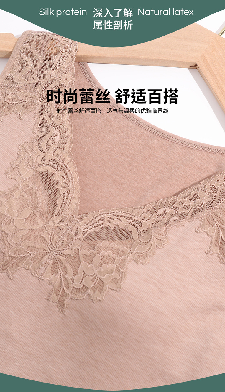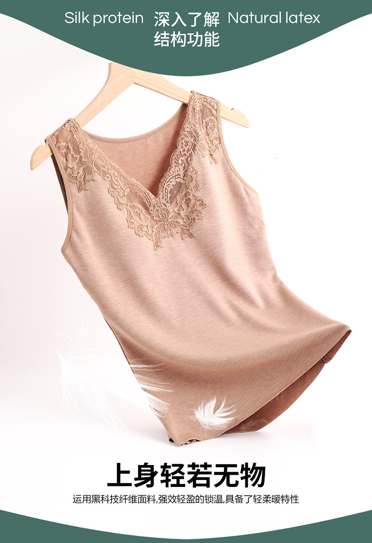 秋冬蕾丝保暖背心固定杯无痕乳胶外穿背心腈纶发热外穿免穿文胸