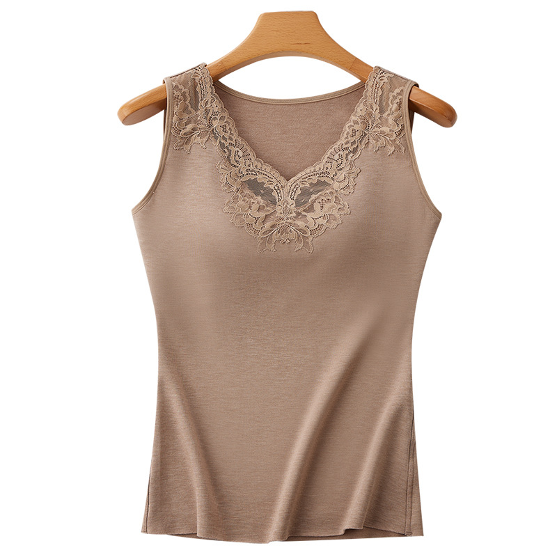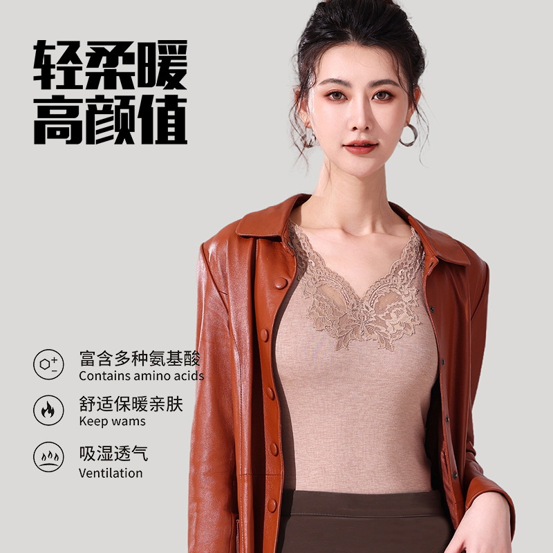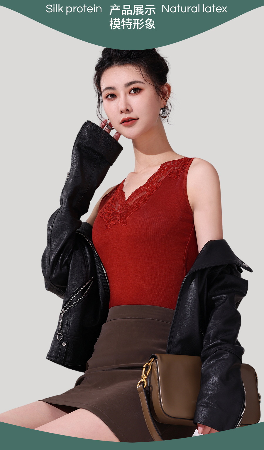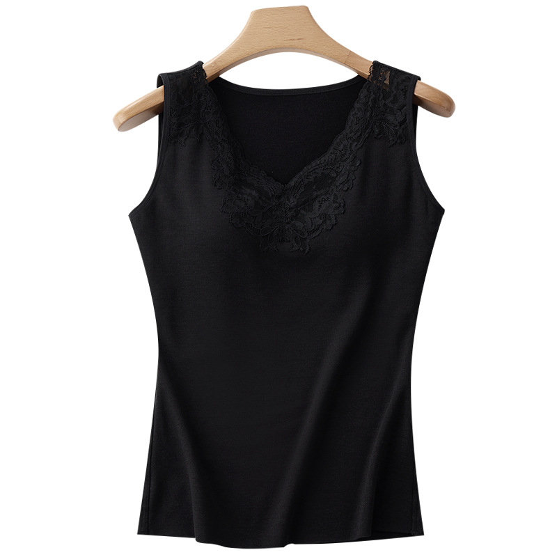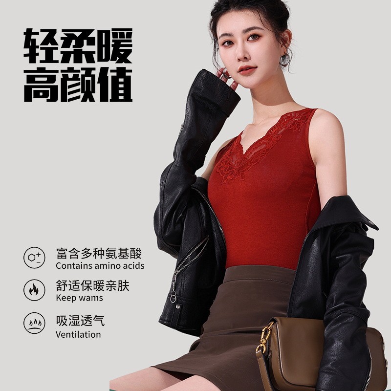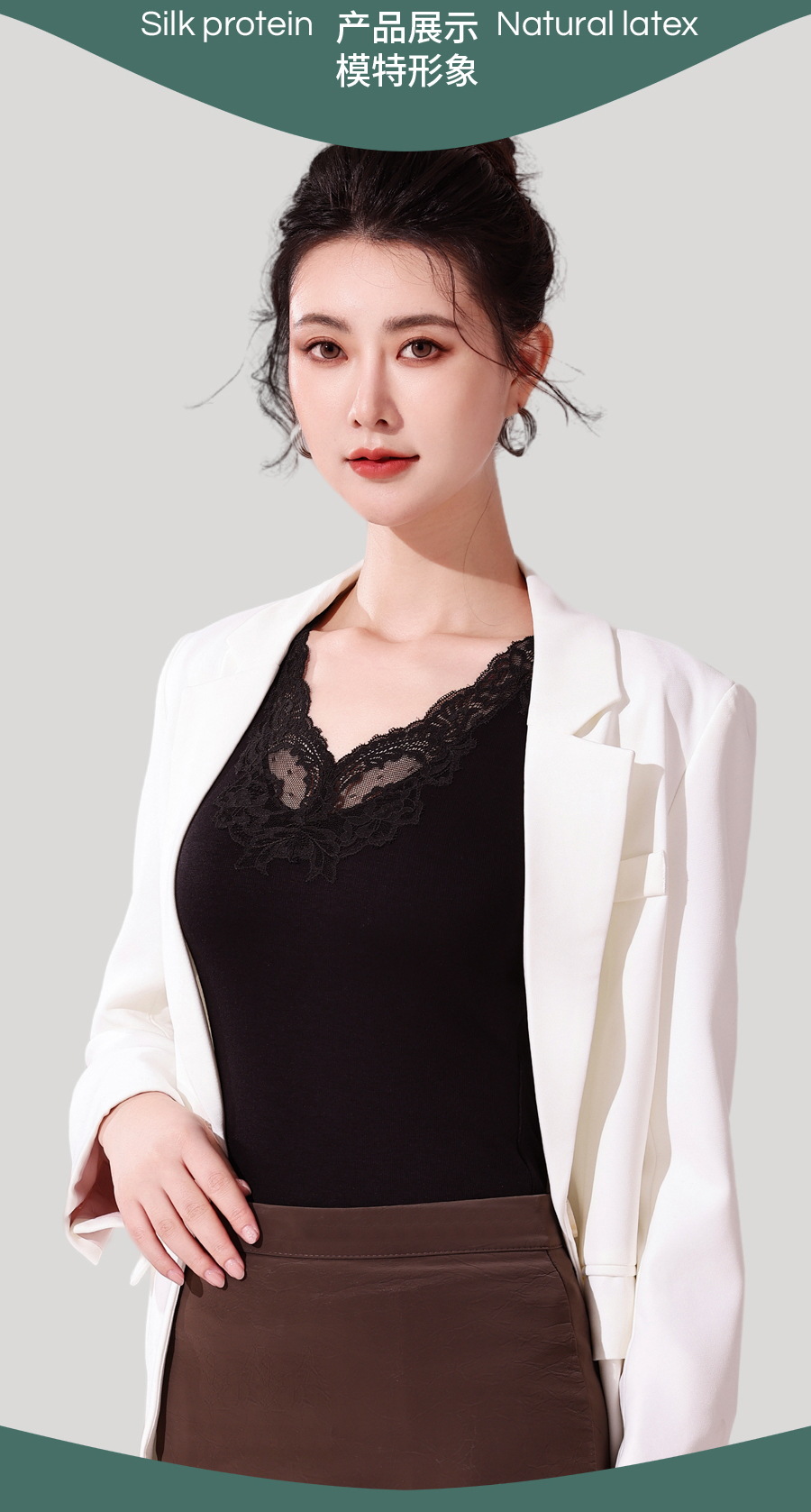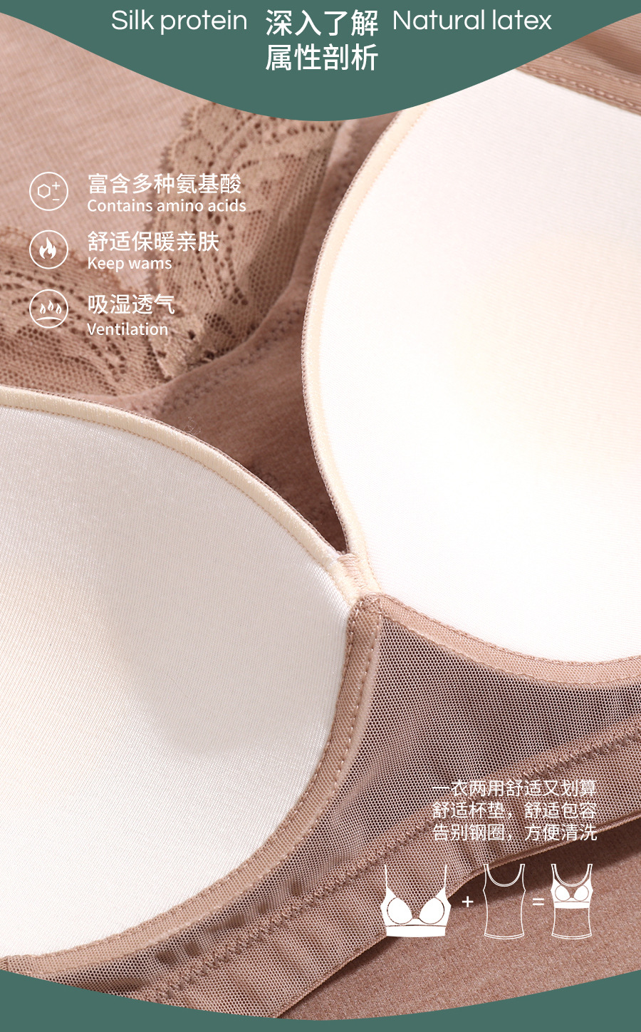 秋冬蕾丝保暖背心固定杯无痕乳胶外穿背心腈纶发热外穿免穿文胸