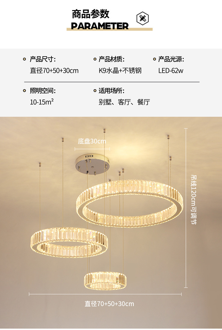 外贸专供水晶吊灯简约别墅大厅大气复式led大厅吊灯客厅吊灯