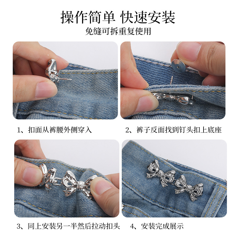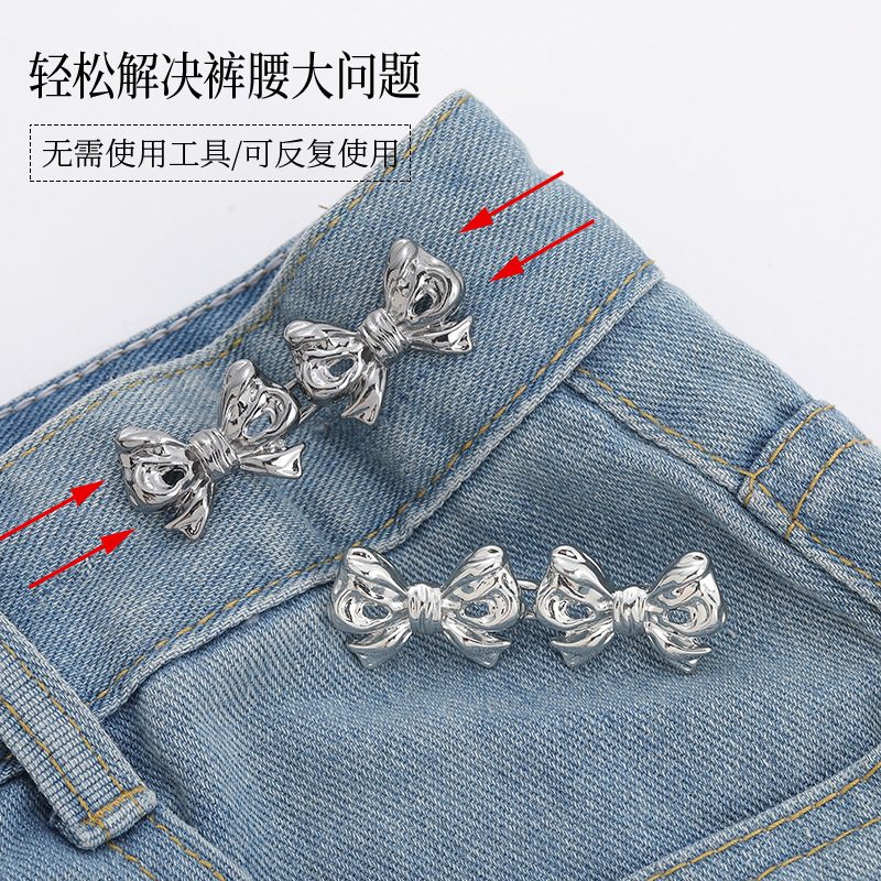 双蝴蝶结收腰扣对扣可拆卸免钉免缝收腰纽扣子腰围大改小收腰神器