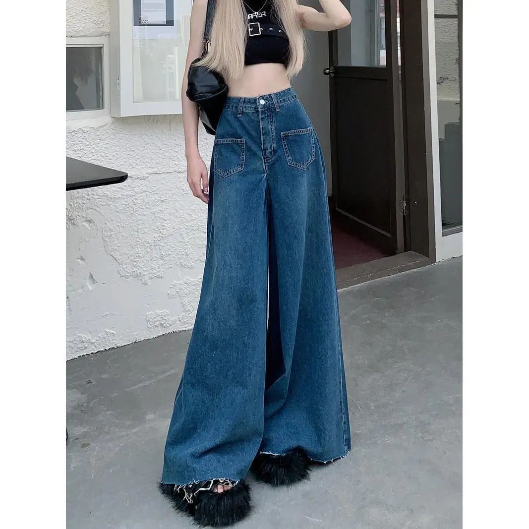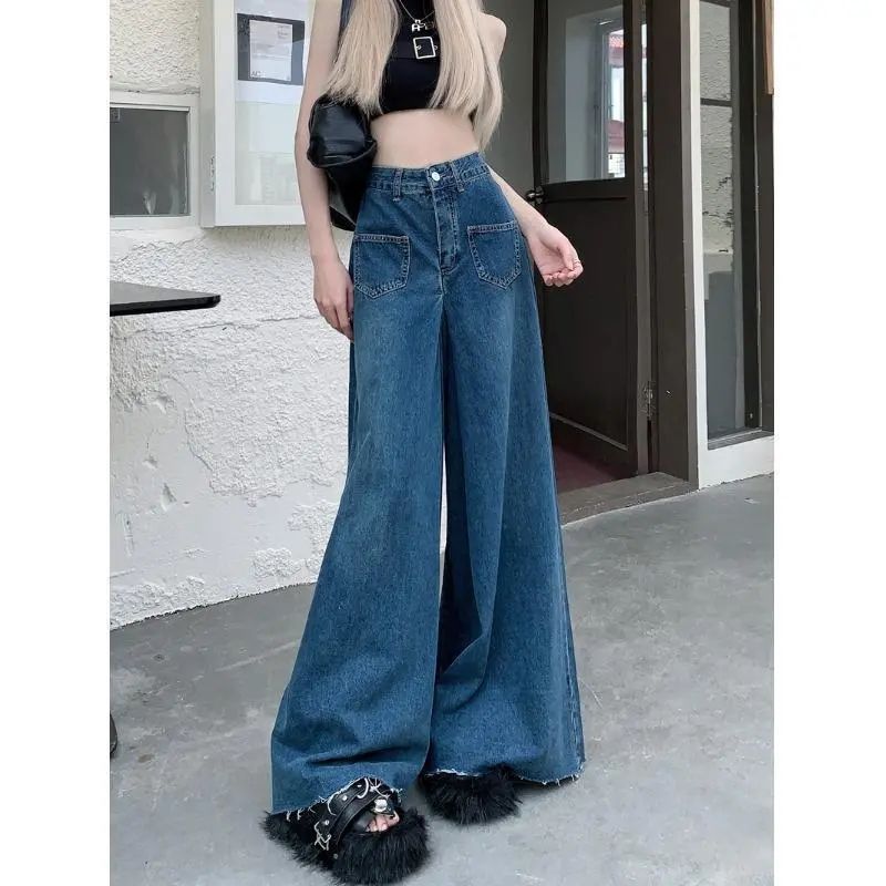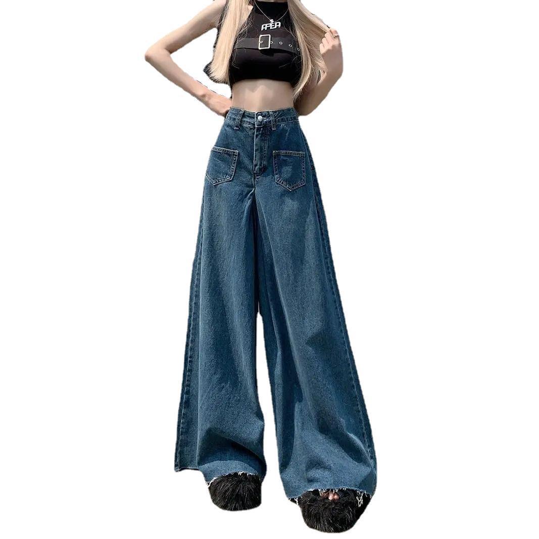 高街复古大裤脚牛仔裤女春秋新款磨边设计感宽松阔腿长裤子ins潮