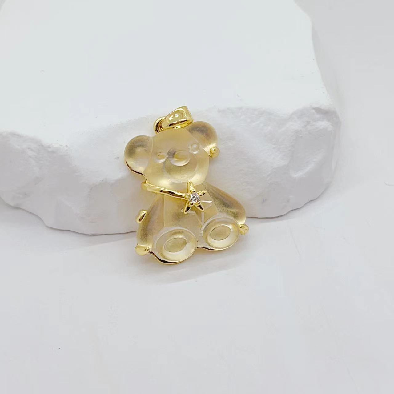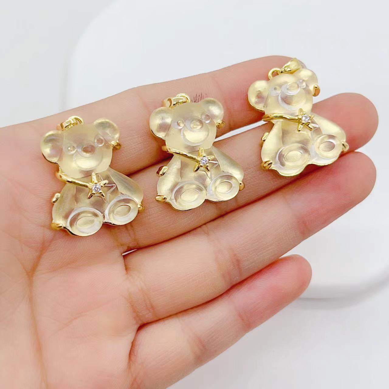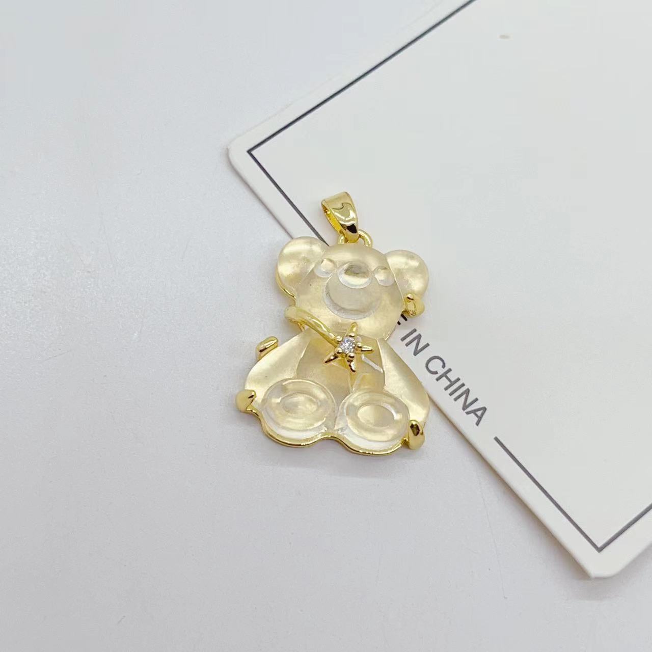 小众设计款可爱时尚热销白色小熊铜镀18K可DYI跨境电商专供配饰女