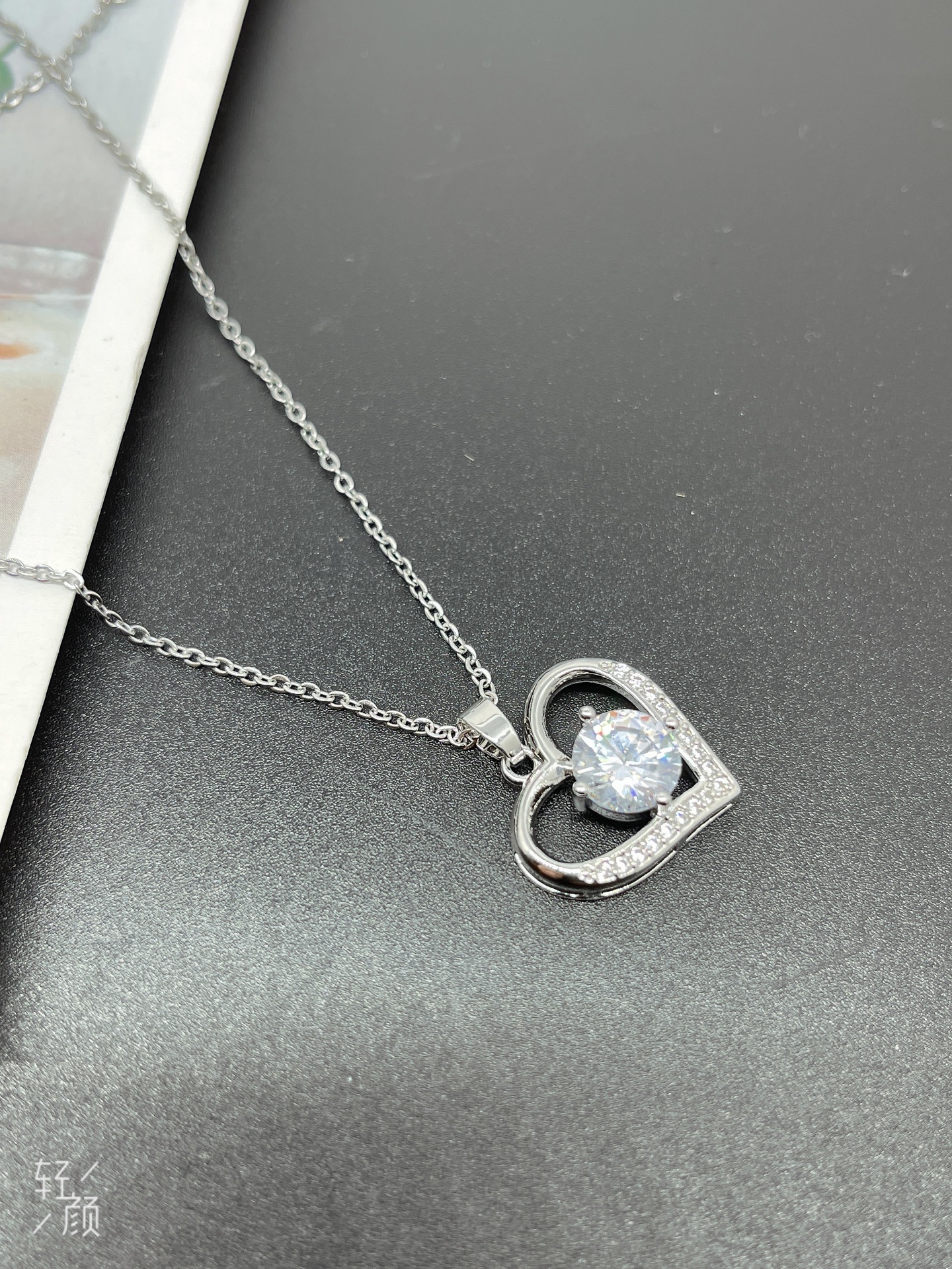 抖音网红热卖款韩版铜镶锆石时尚气质桃心项链锁骨白金吊坠配件