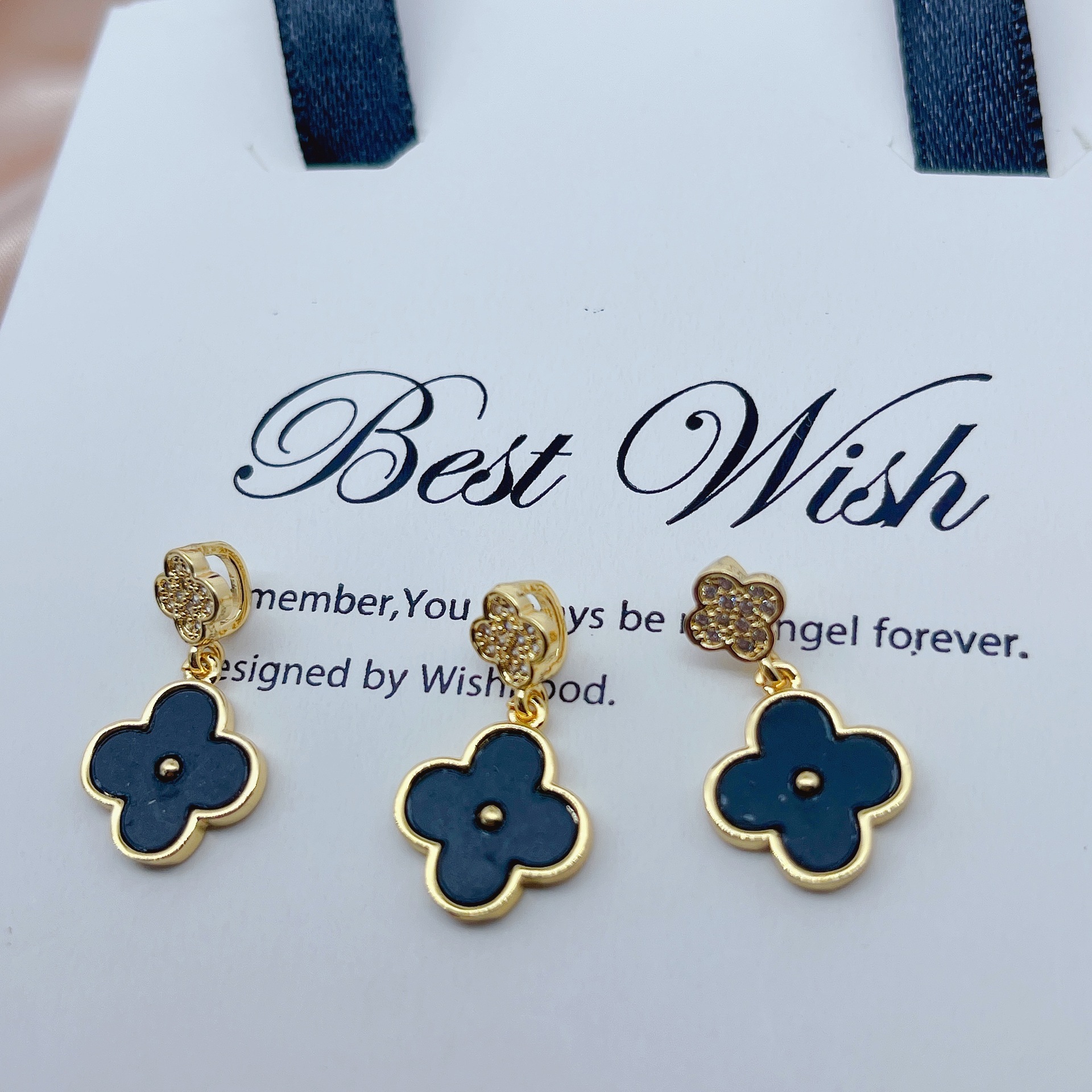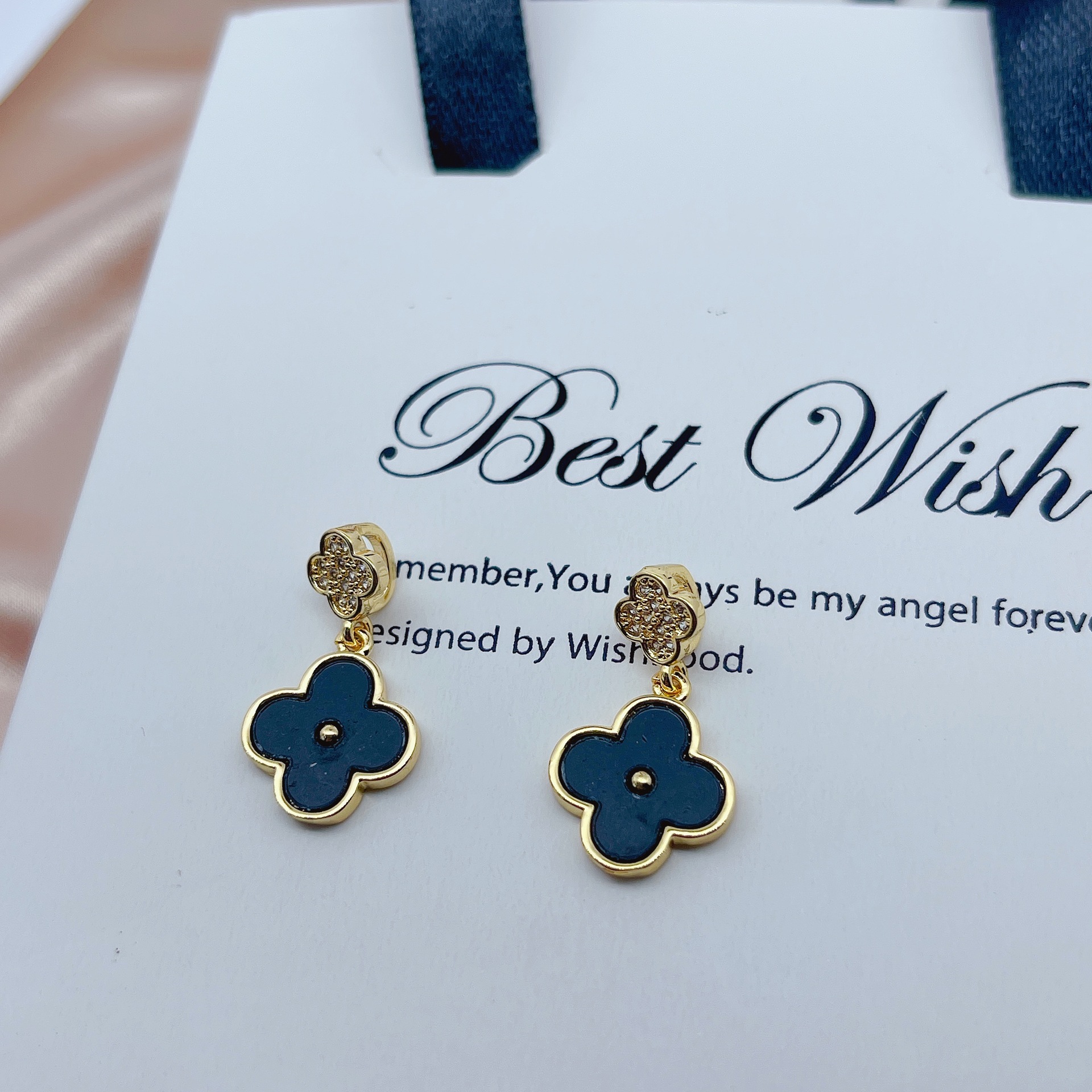 2022年新款微镶仿贝壳黑色四叶草简约轻奢冷淡风锁骨链吊坠配件