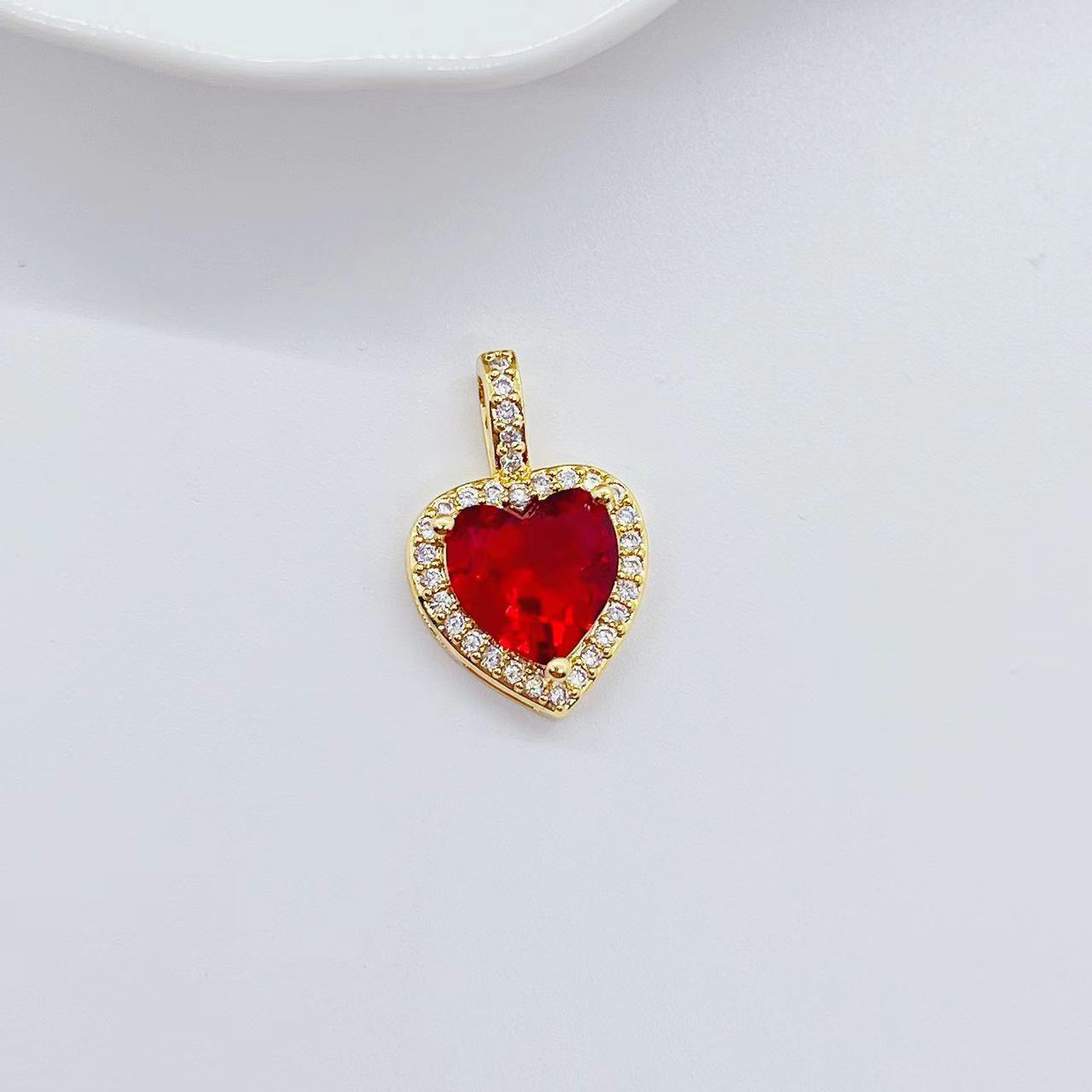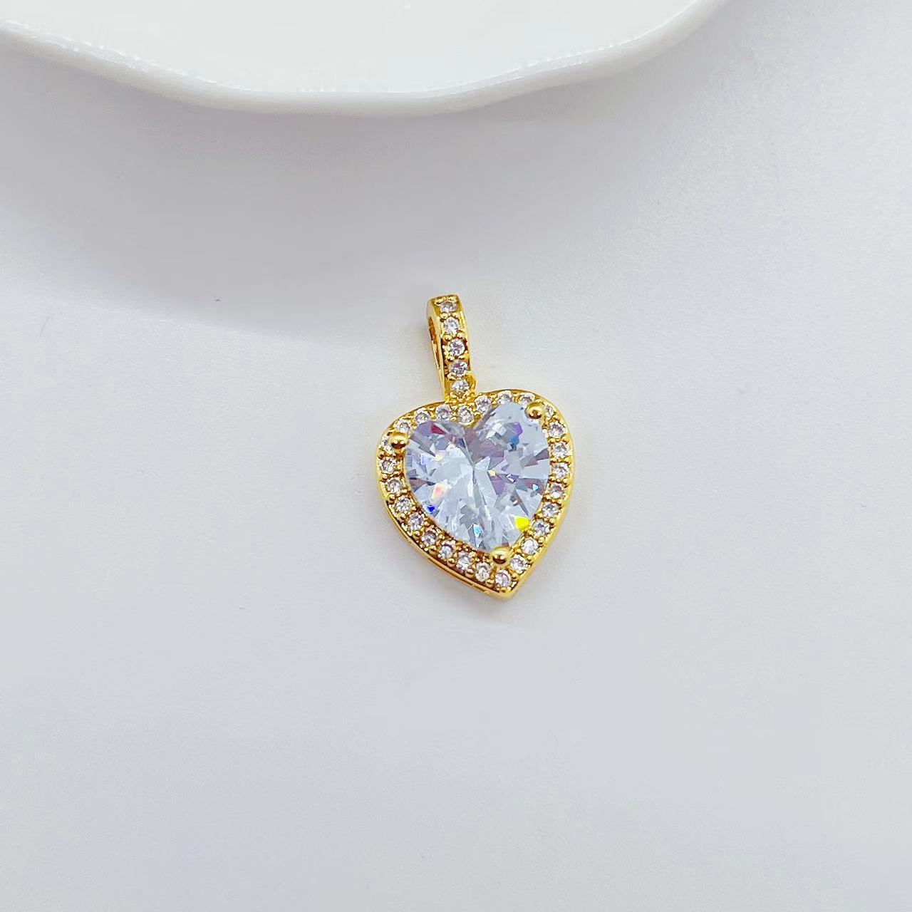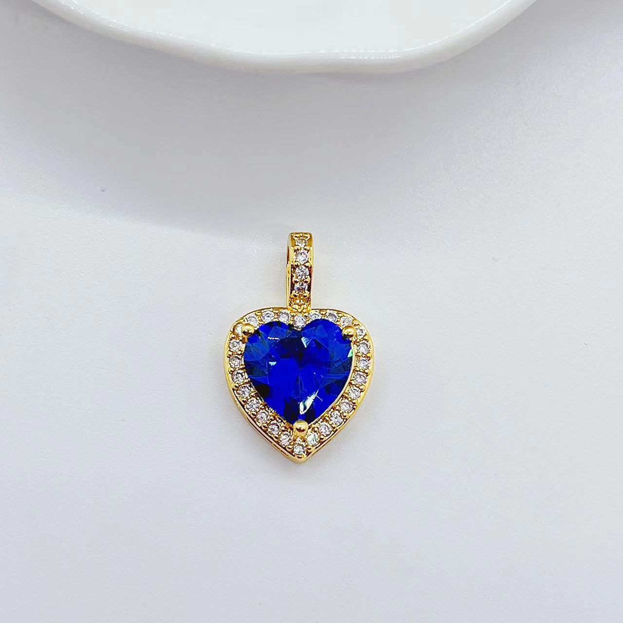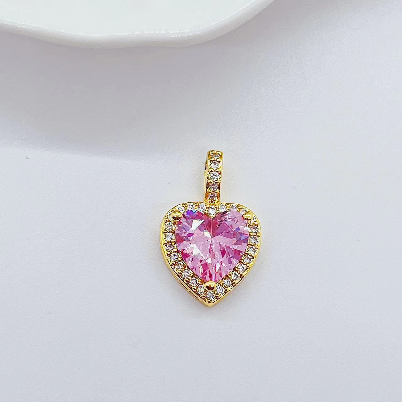 欧美跨境新品桃心彩色锆石铜镀真金项链轻奢时尚个性吊坠DIY挂件