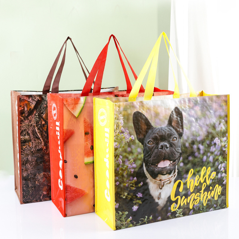 手提编织袋现货广告覆膜购物袋彩印淋膜包装防水塑料编织手提袋厂